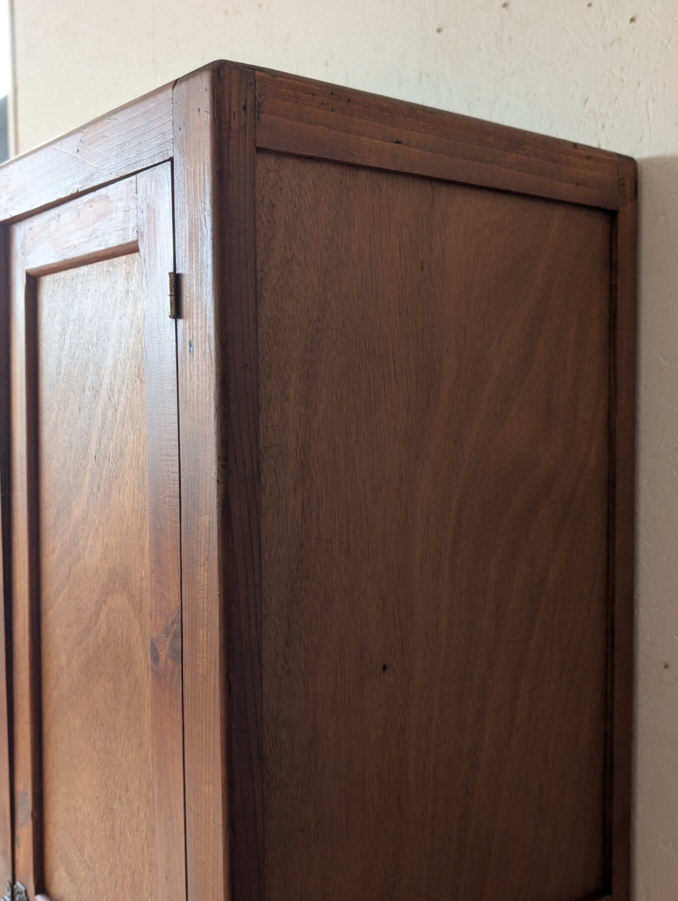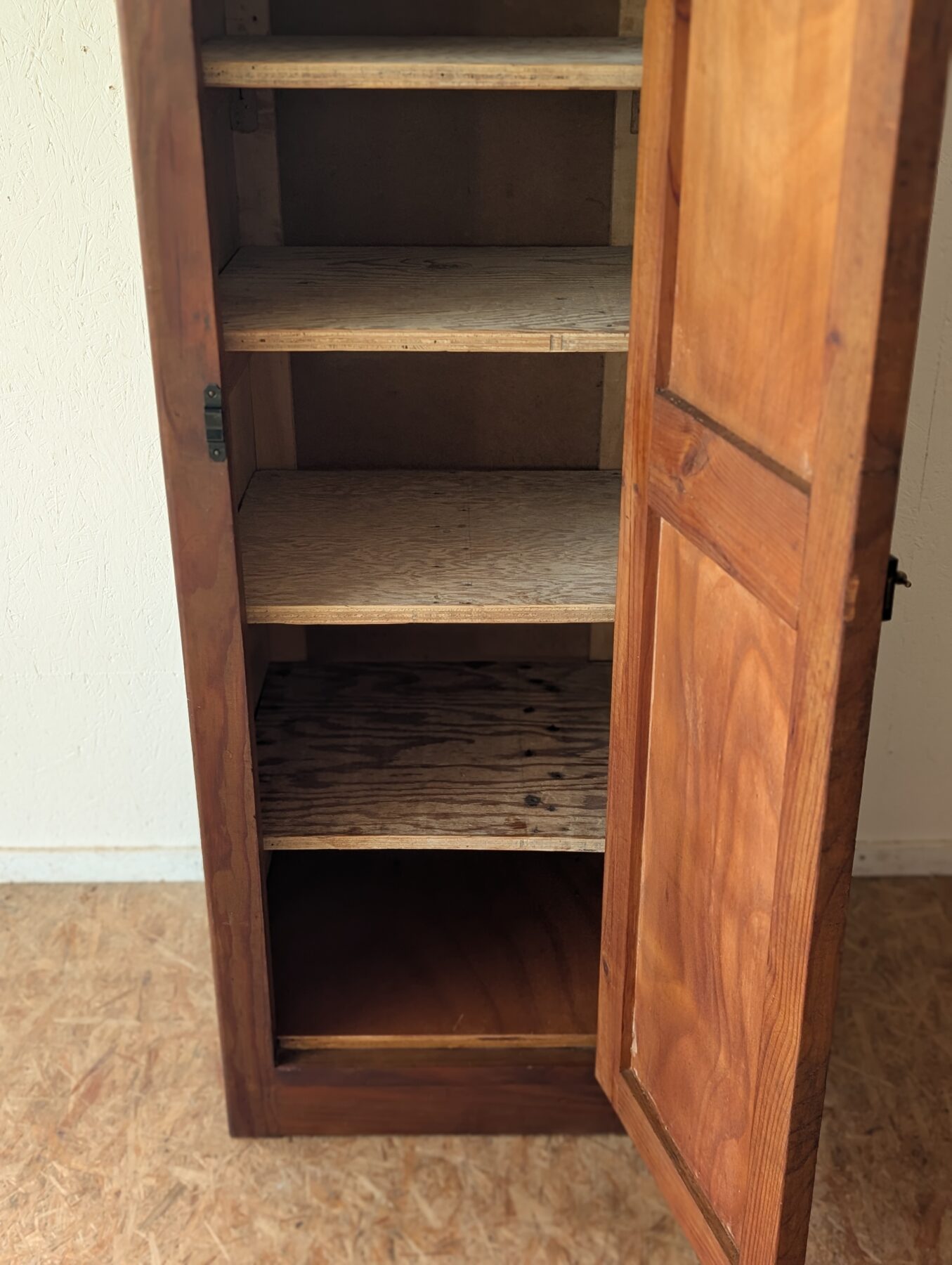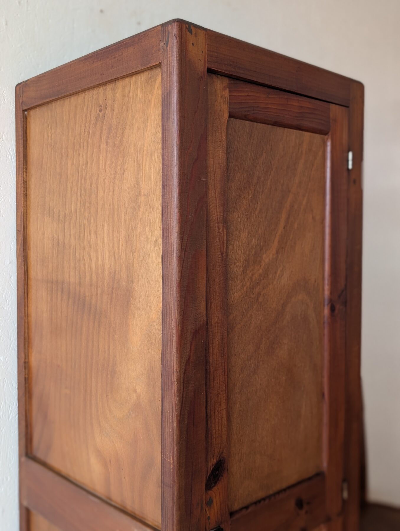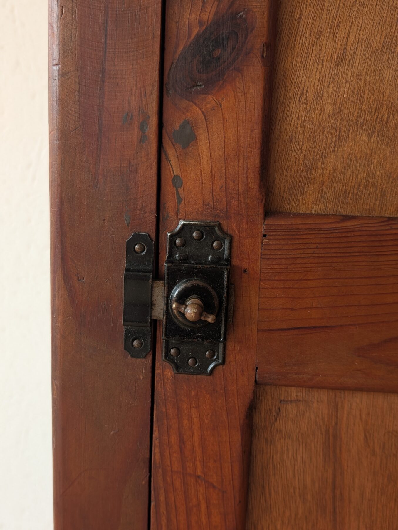 Armoire / vestiaire / garde manger en pin des années 40/50 avec sa patine et son verrou d’origine qui lui apportent charme et authenticité.