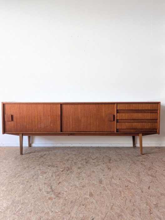 Enfilade danoise teck des années 60/70 comprenant 2 portes coulissantes et 3 tiroirs.