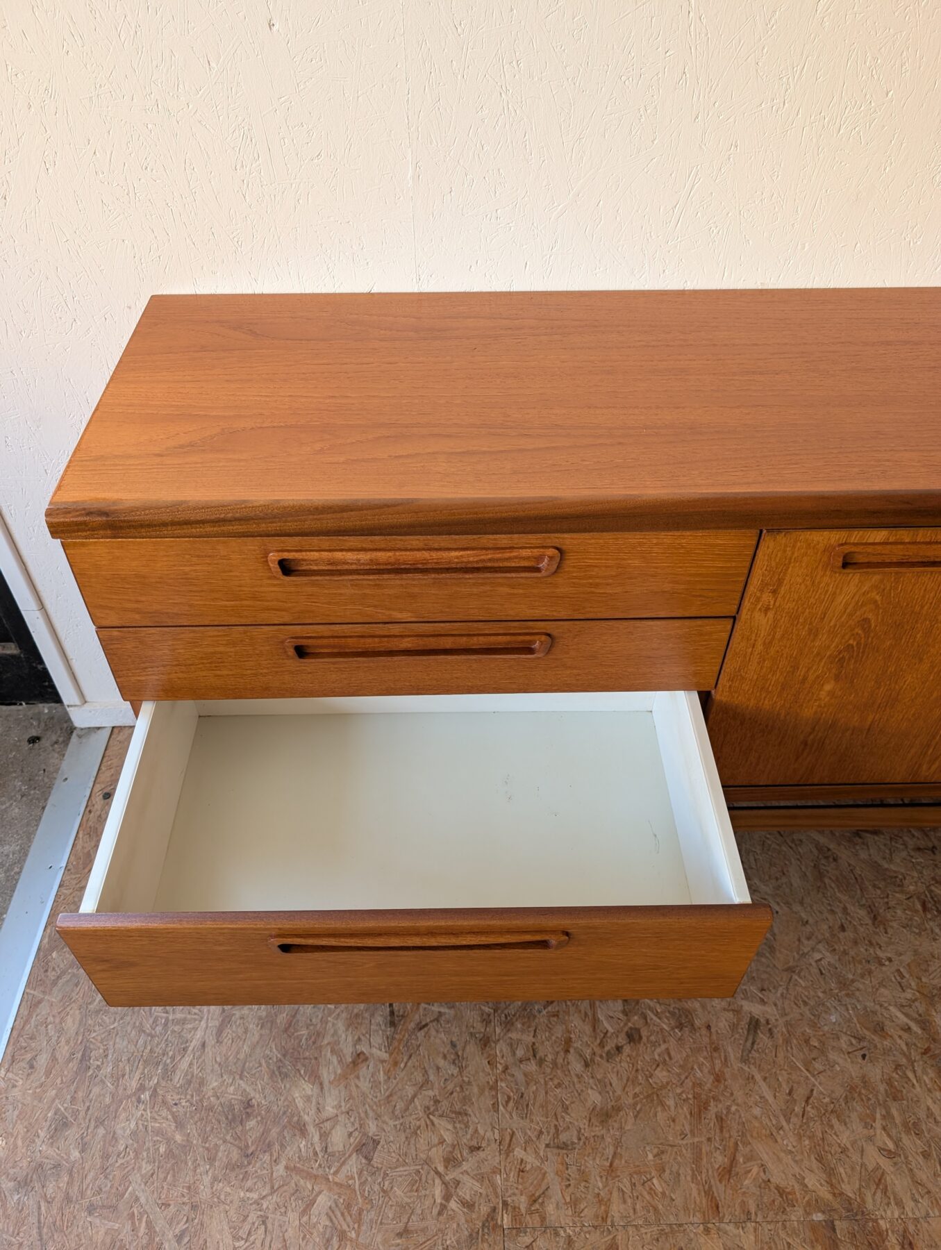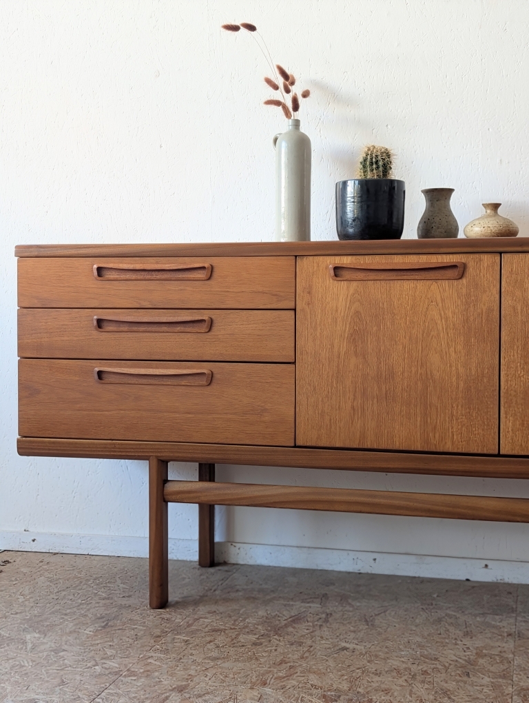 Enfilade anglaise teck Meredew des années 60/70 comprenant 3 tiroirs et 3 portes.
