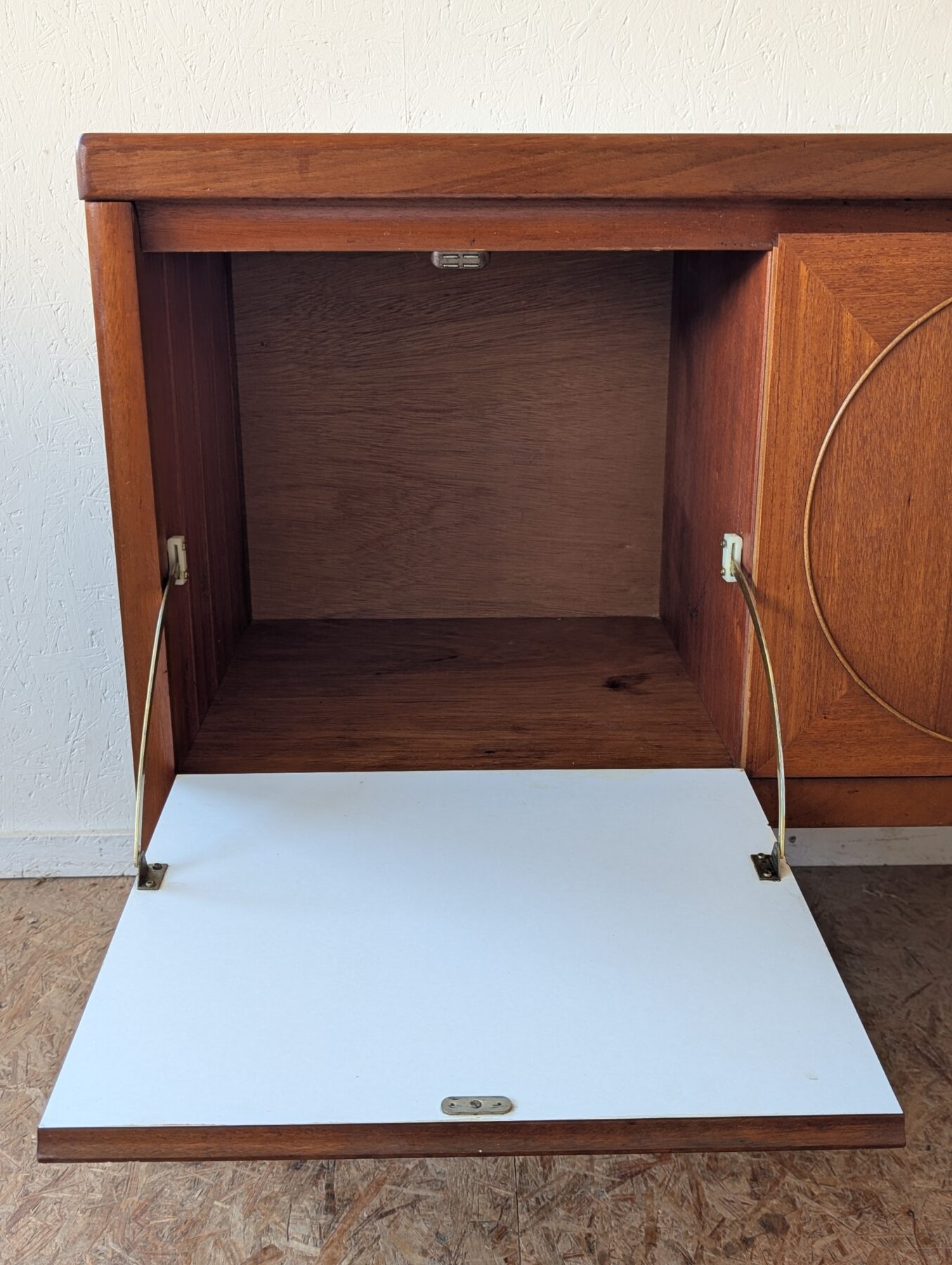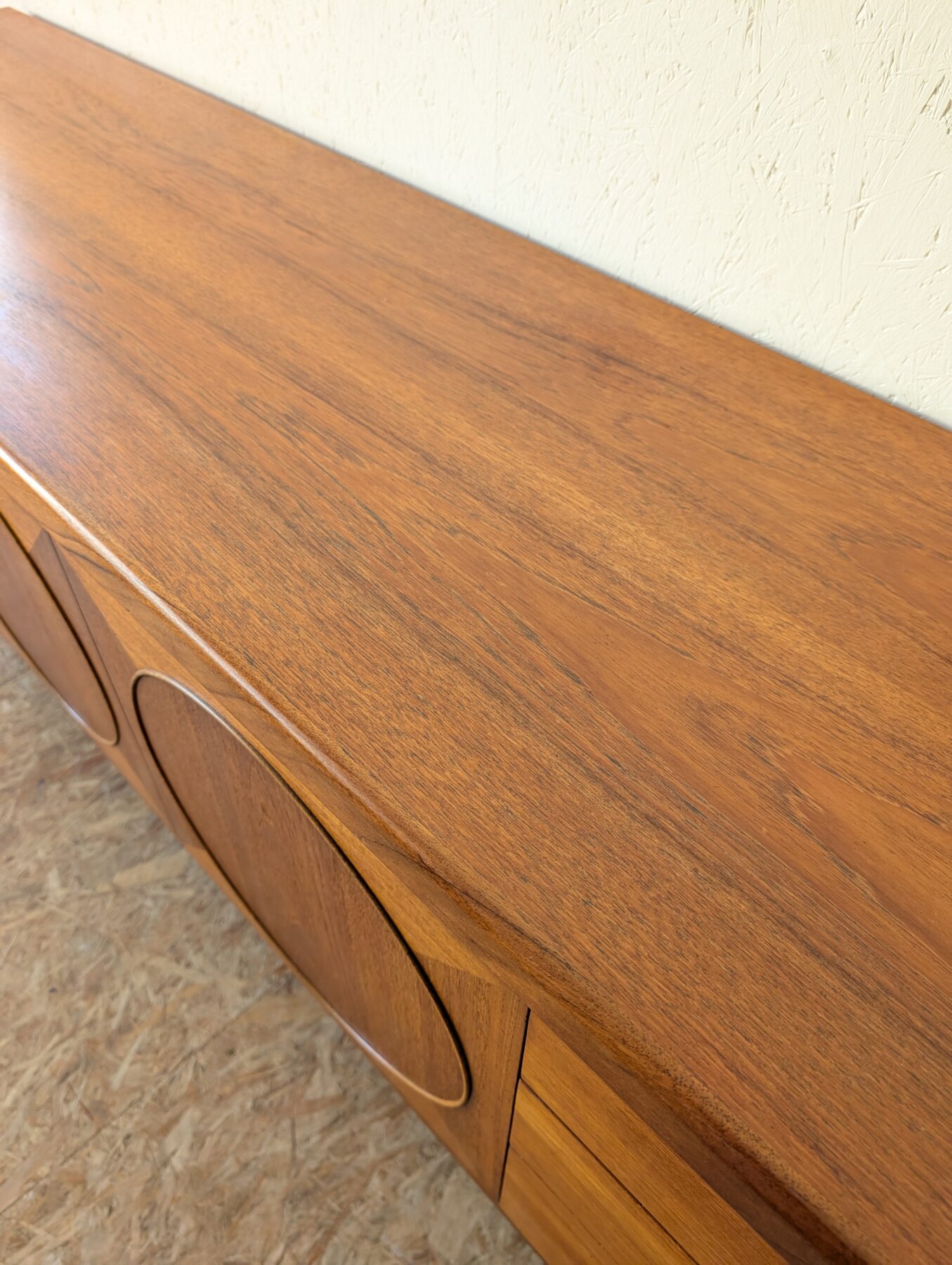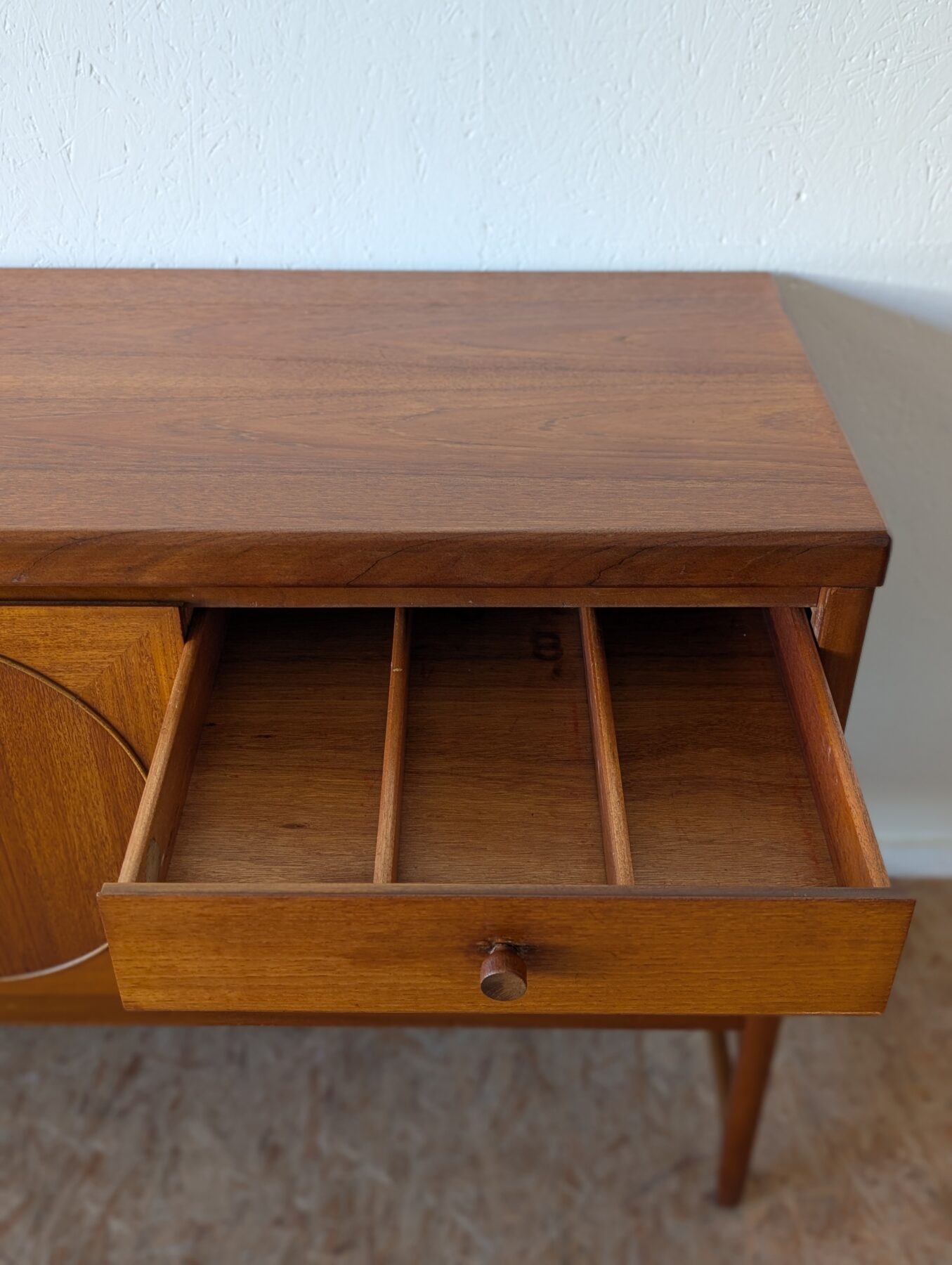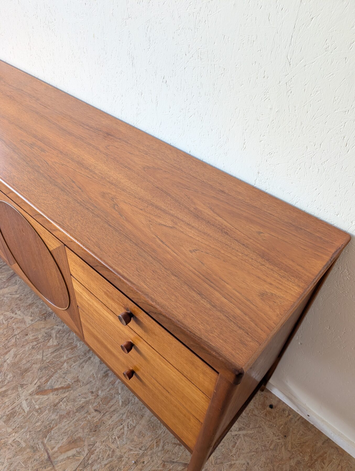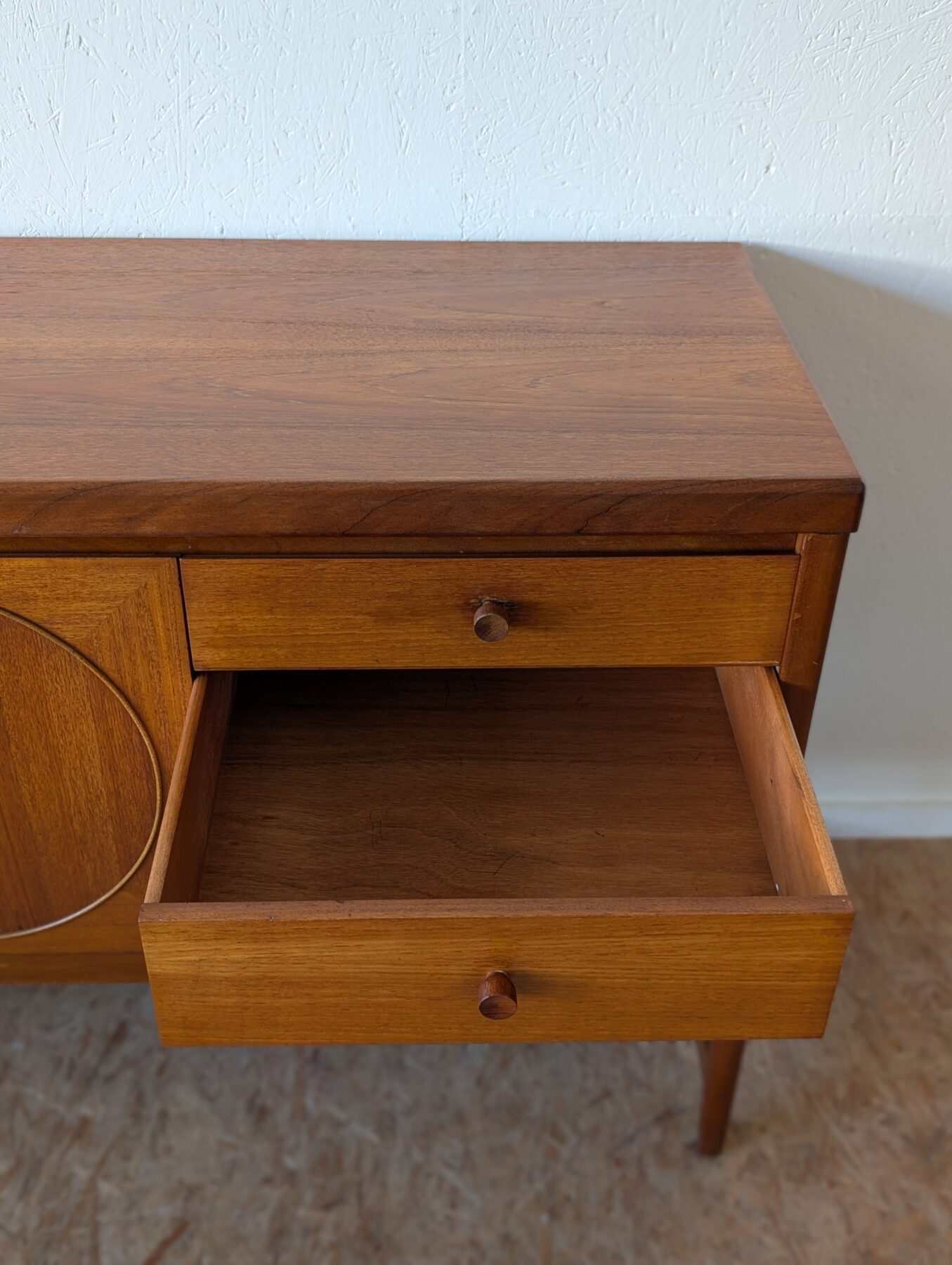 Enfilade teck Nathan « Circle » des années 60/70 comprenant 3 portes et 3 tiroirs.
