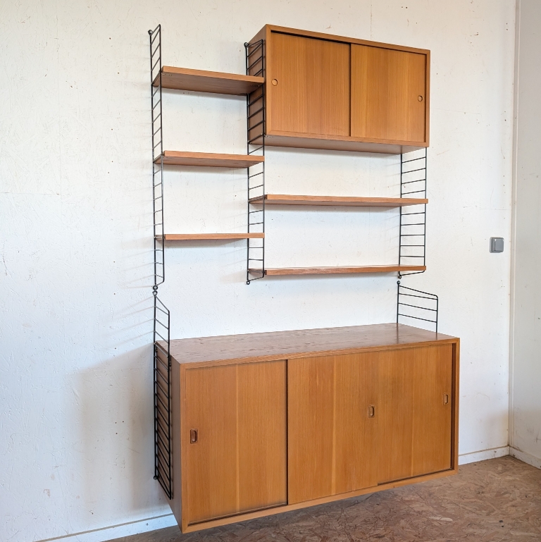 Ensemble mural modulable suédois en teck blond par Nisse Strinning pour String Design AB datant des années 60.