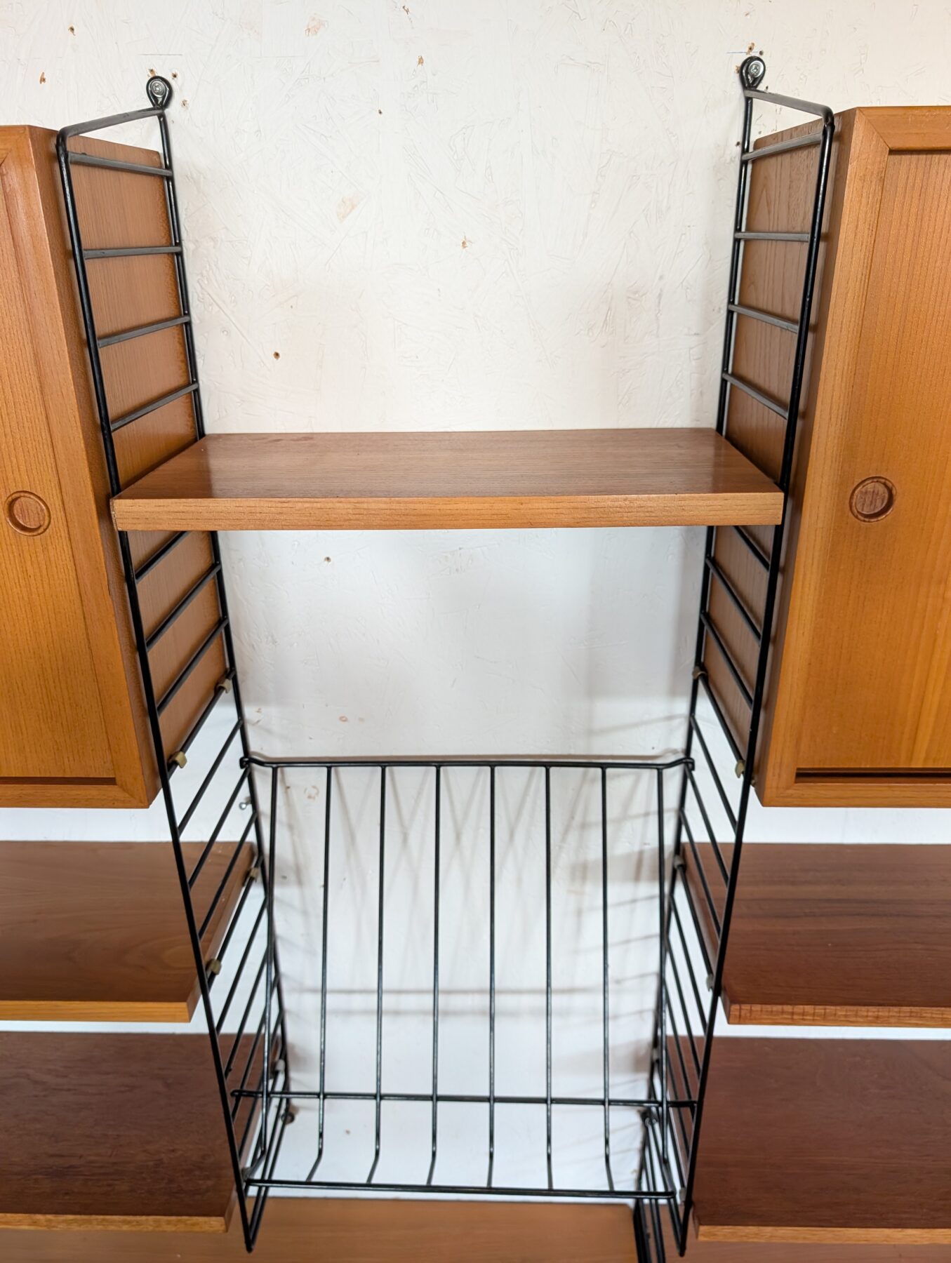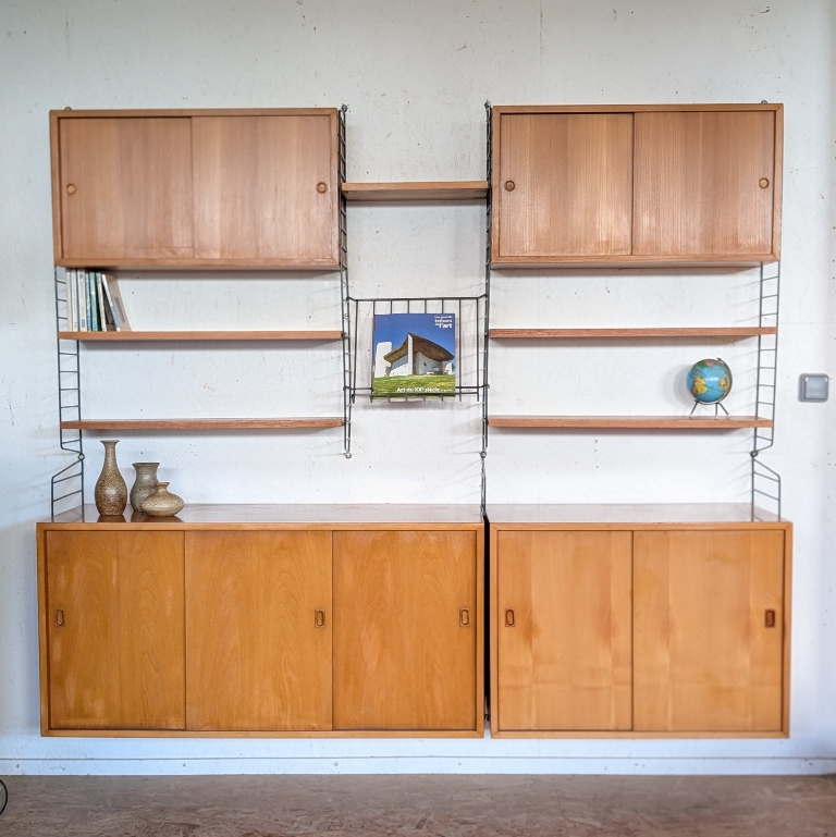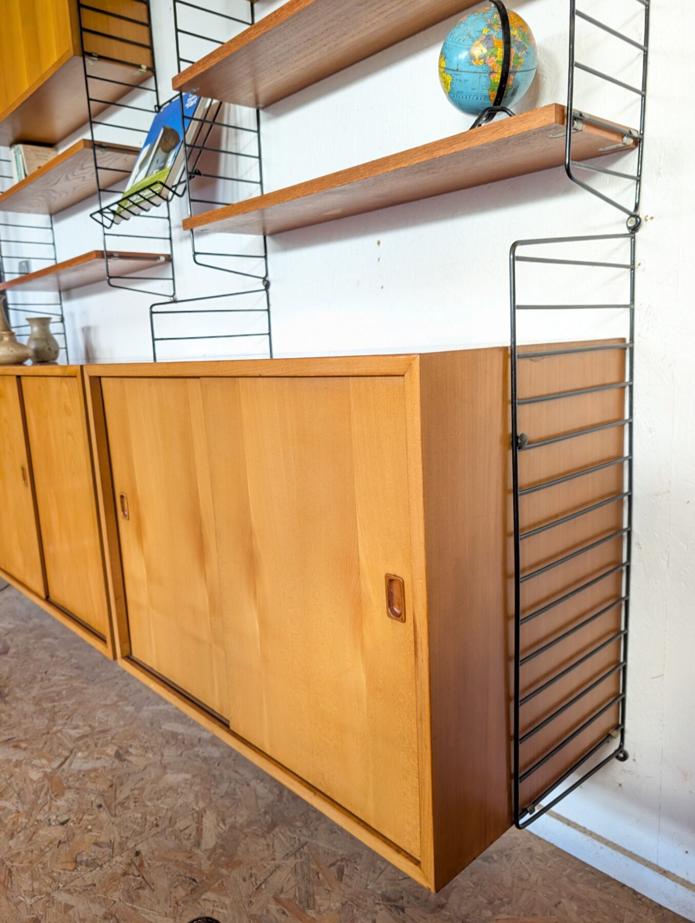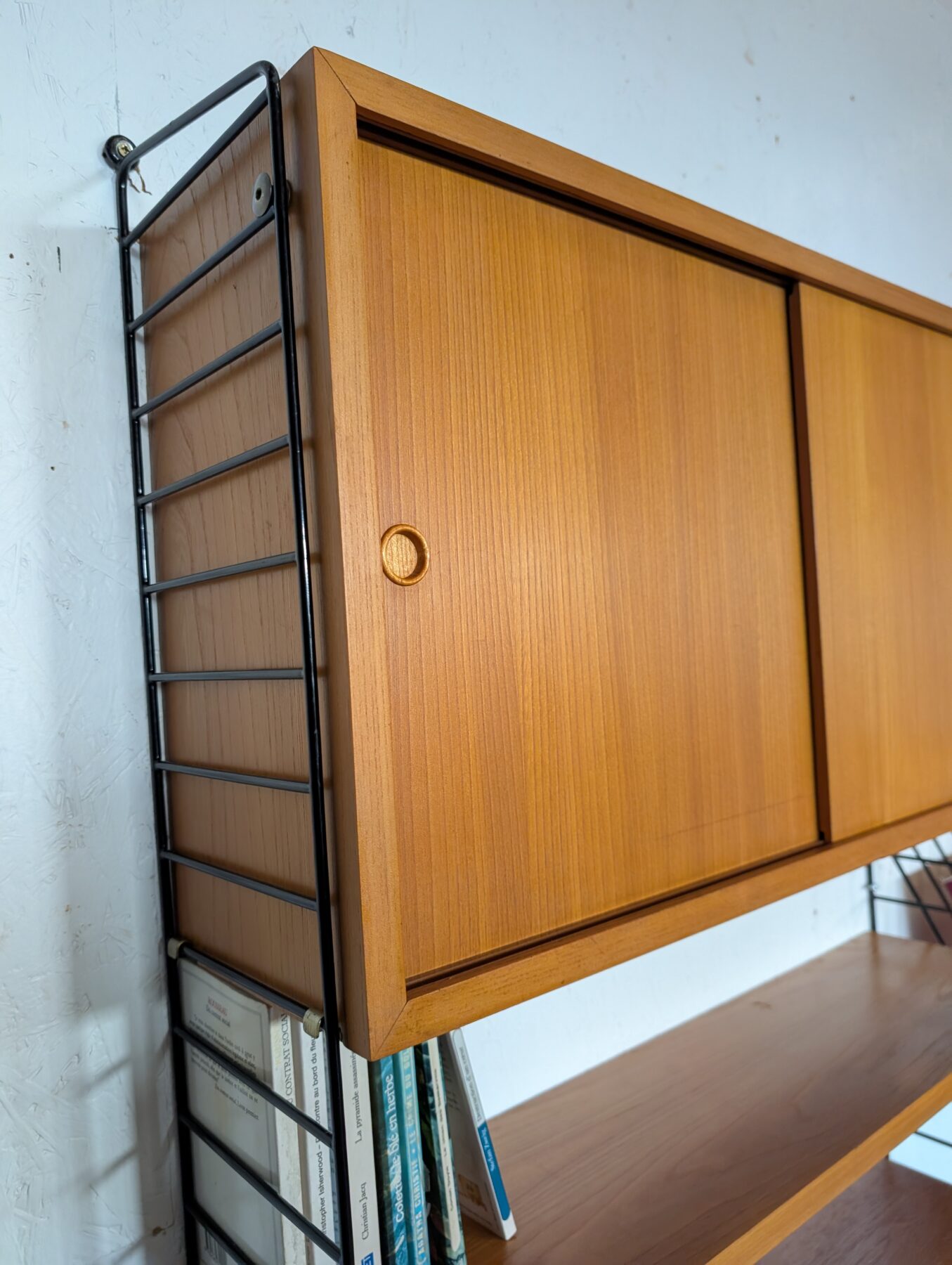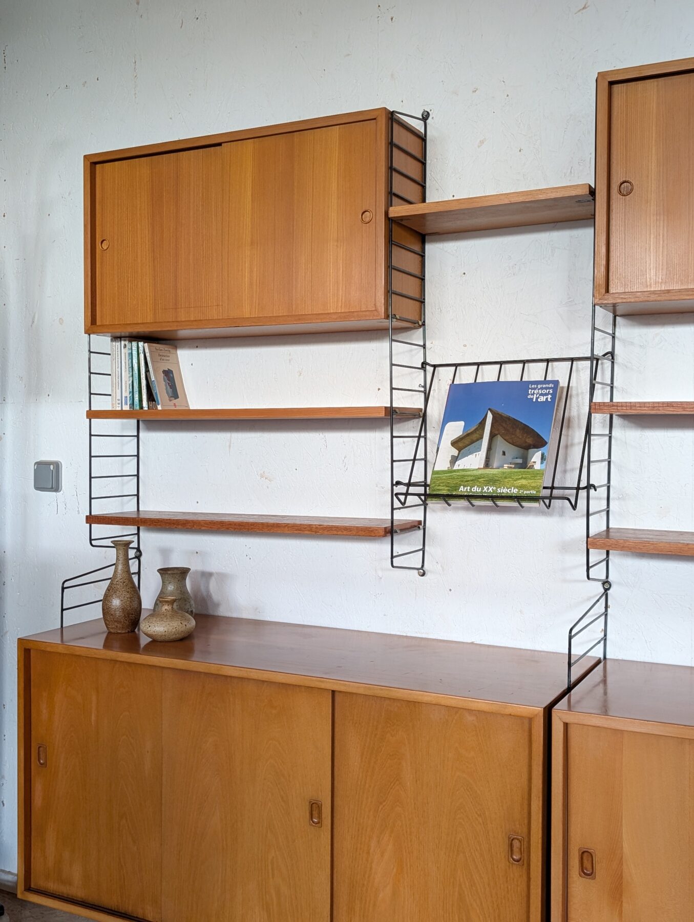 Ensemble mural modulable suédois en teck blond par Nisse Strinning pour String Design AB datant des années 60.