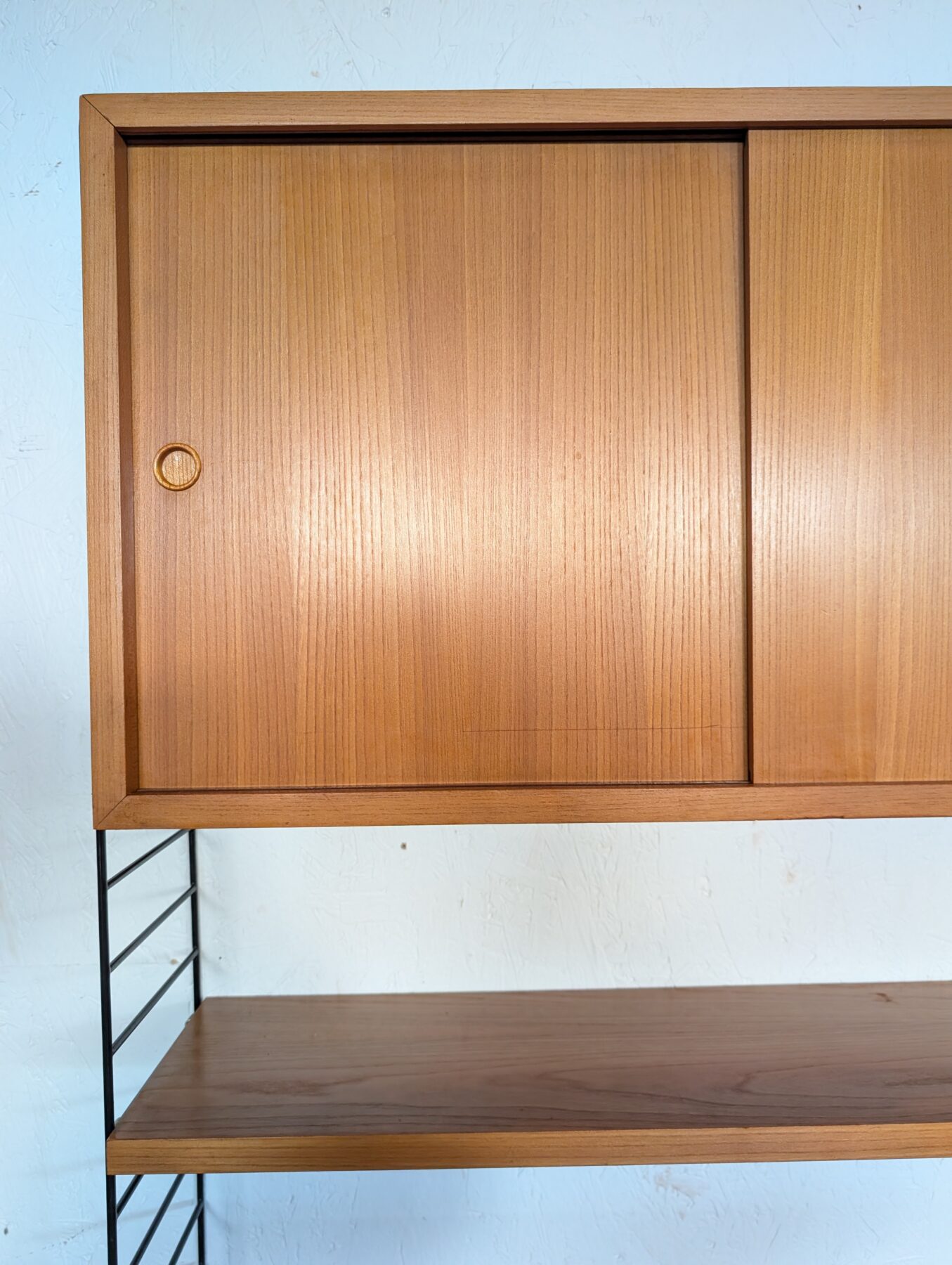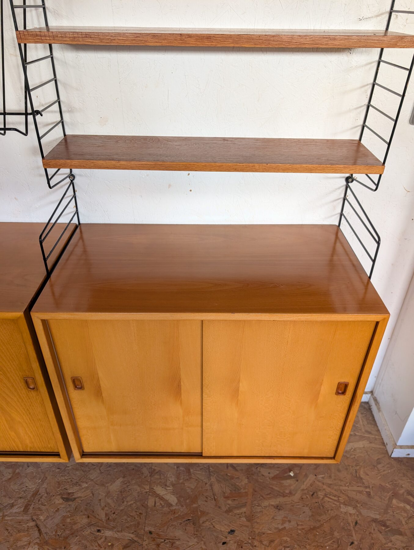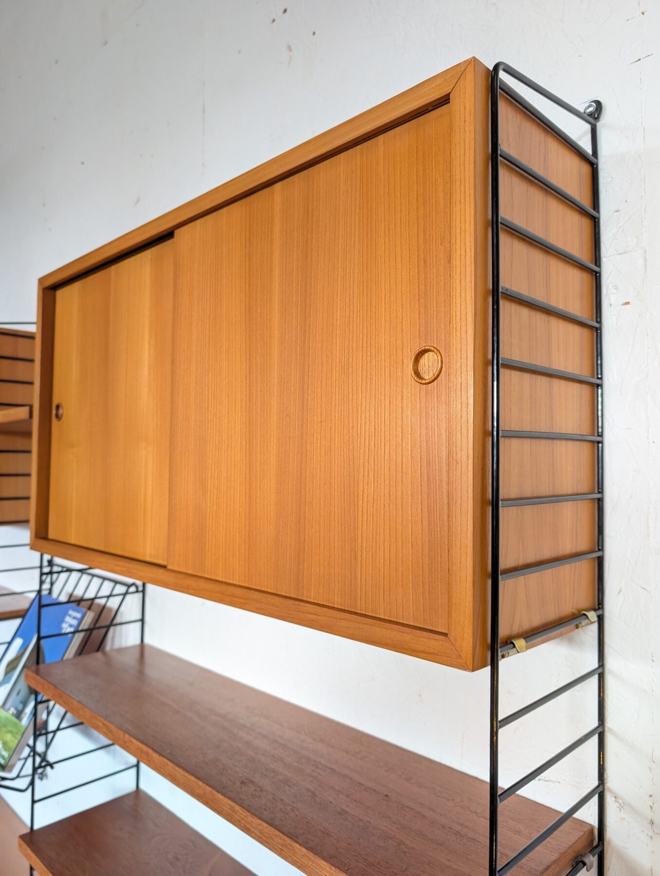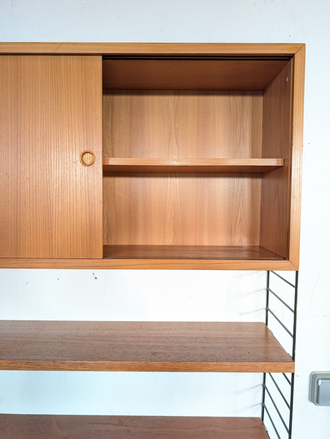 Ensemble mural modulable suédois en teck blond par Nisse Strinning pour String Design AB datant des années 60.