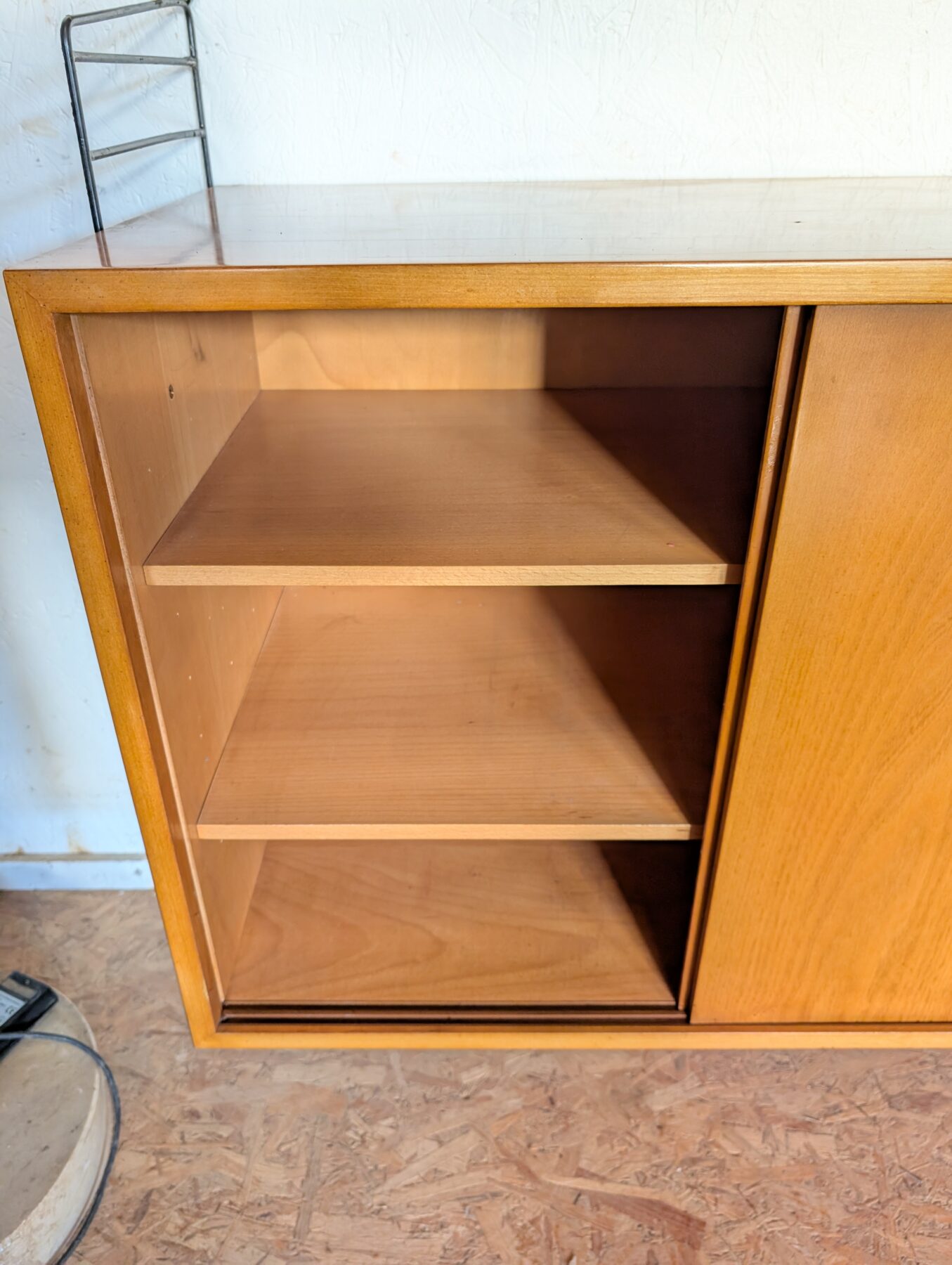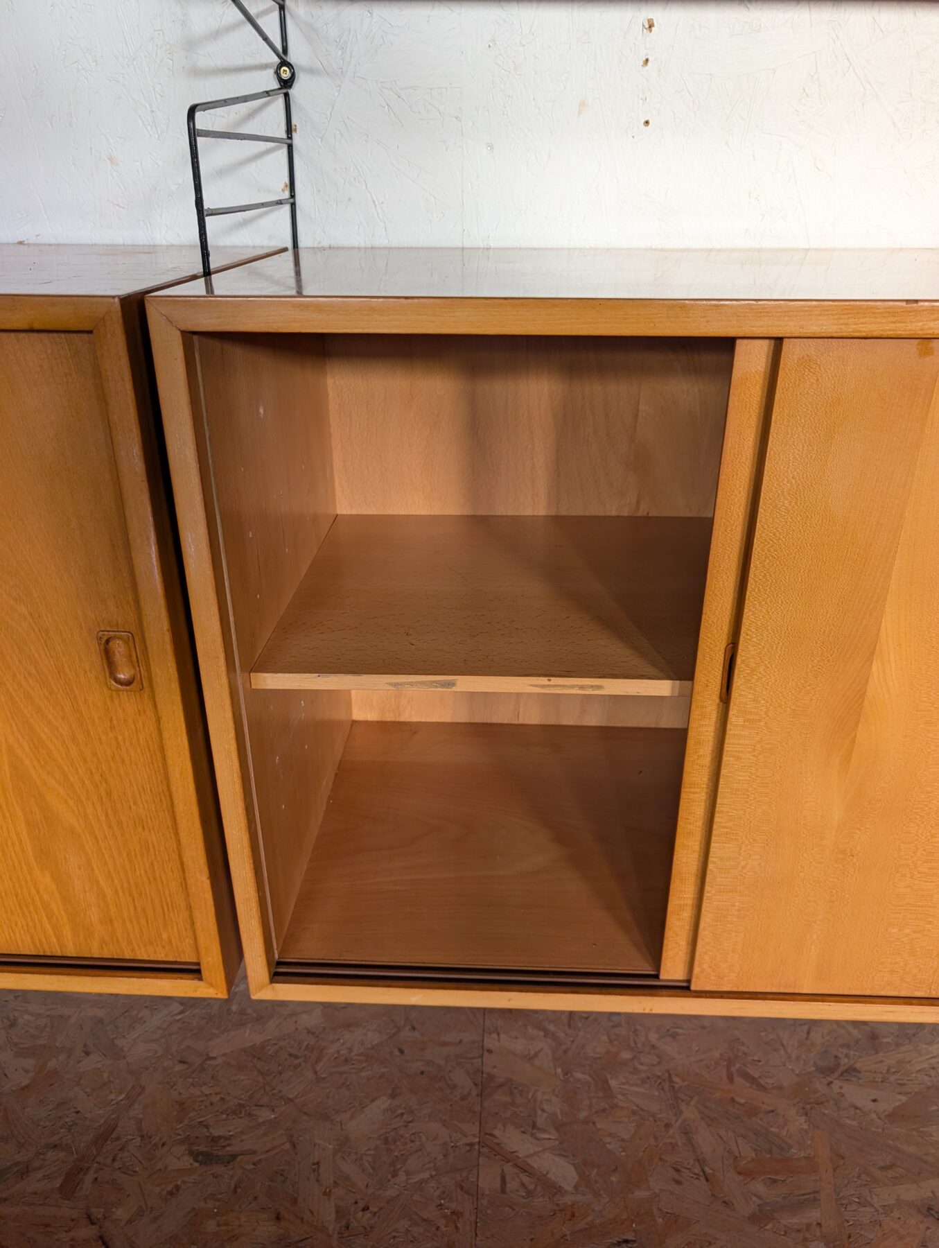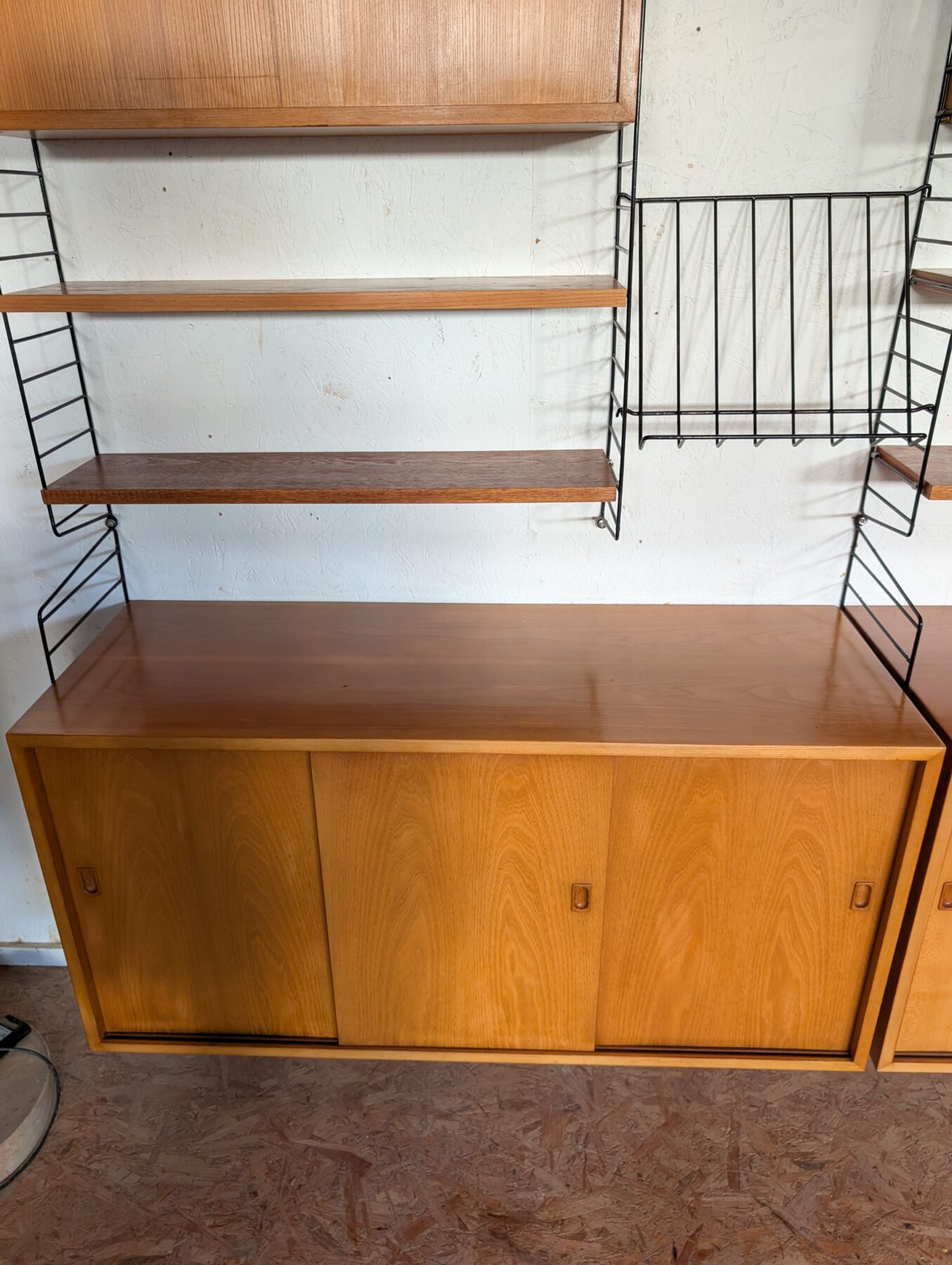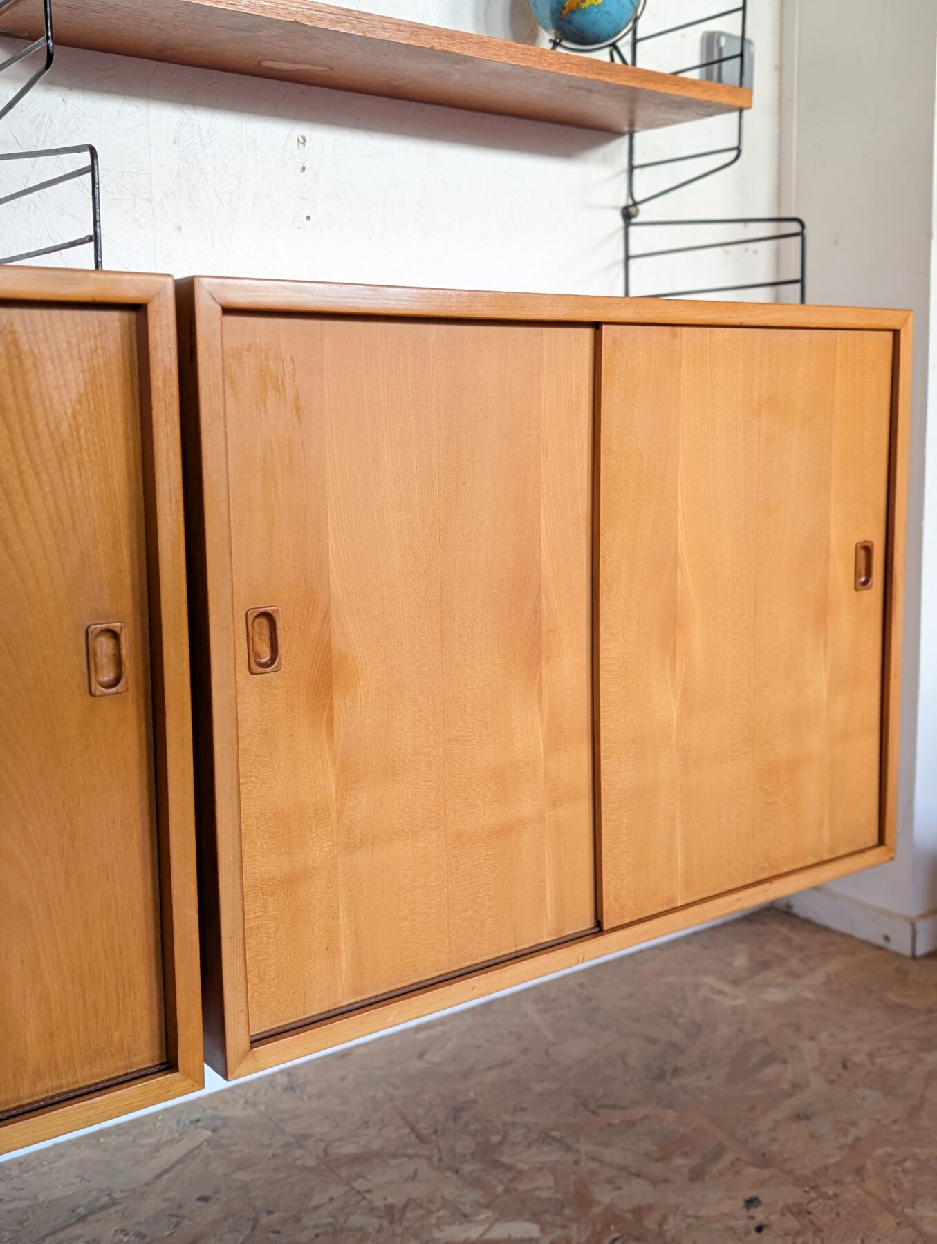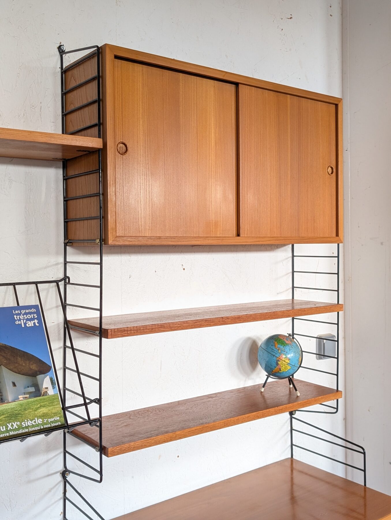 Ensemble mural modulable suédois en teck blond par Nisse Strinning pour String Design AB datant des années 60.