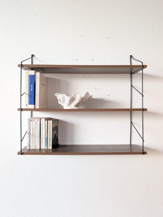 Etagère murale vintage avec 3 tablettes en mélaminé esprit bois.