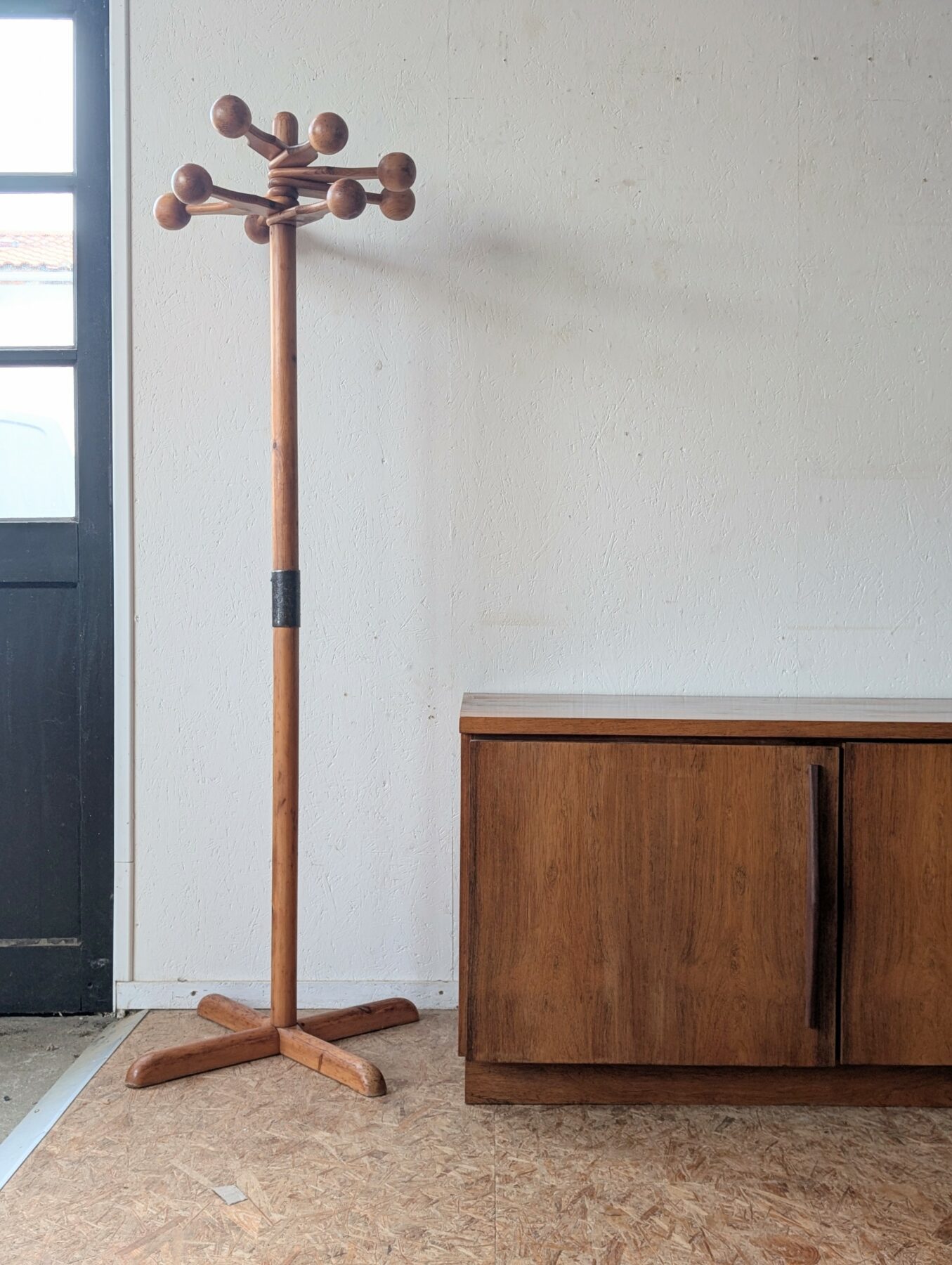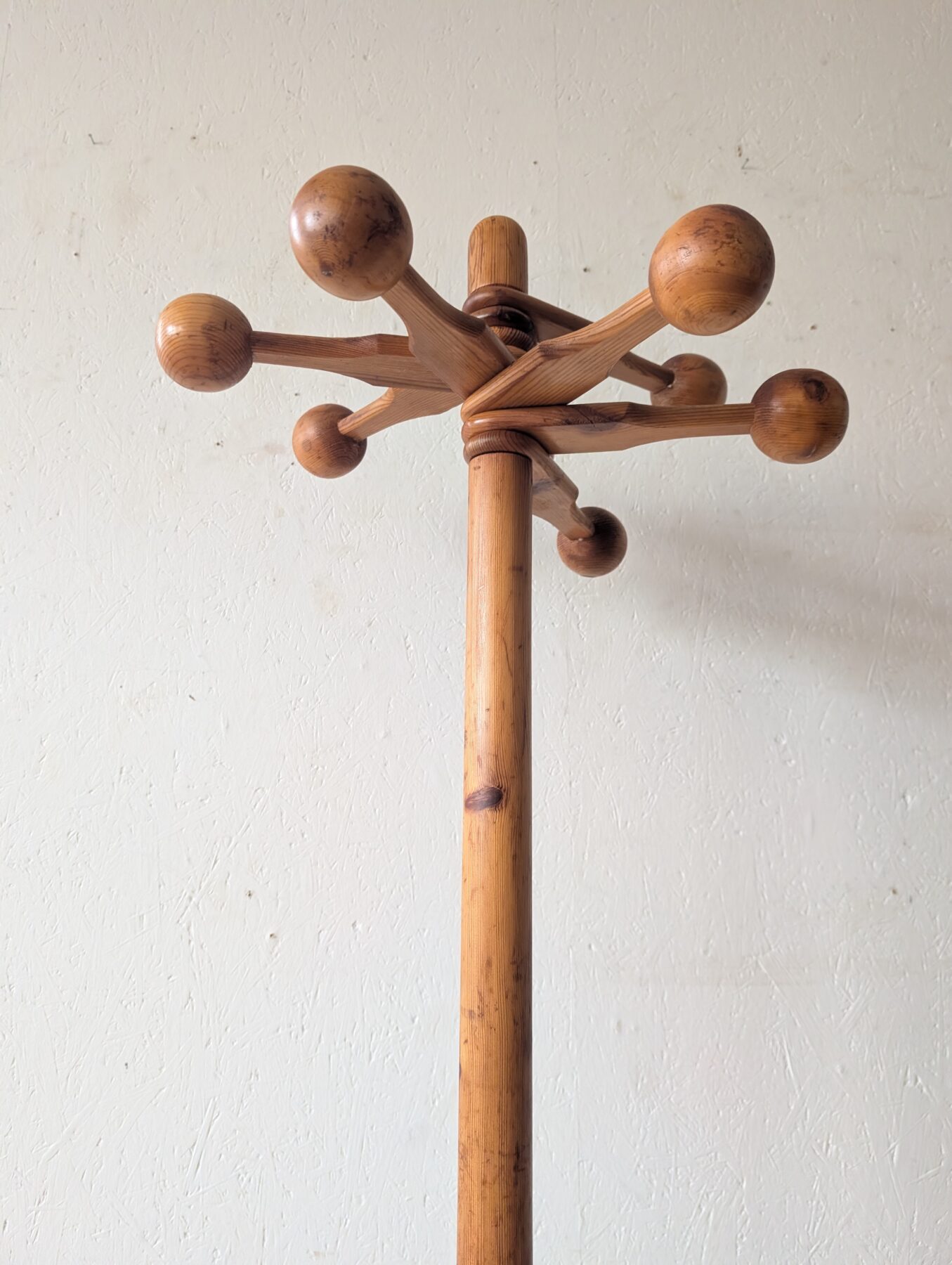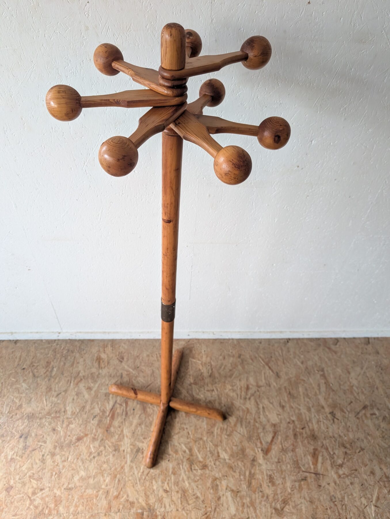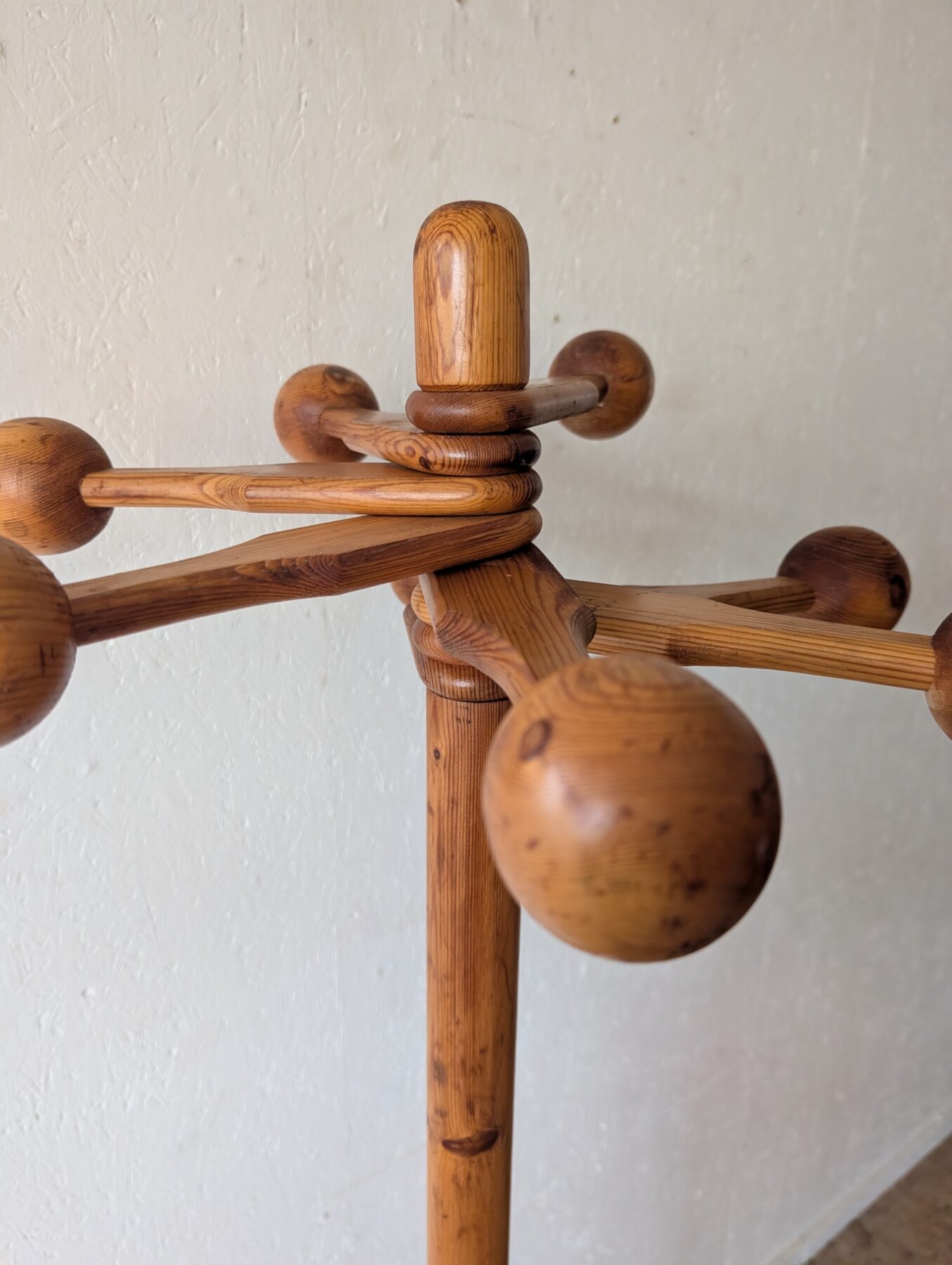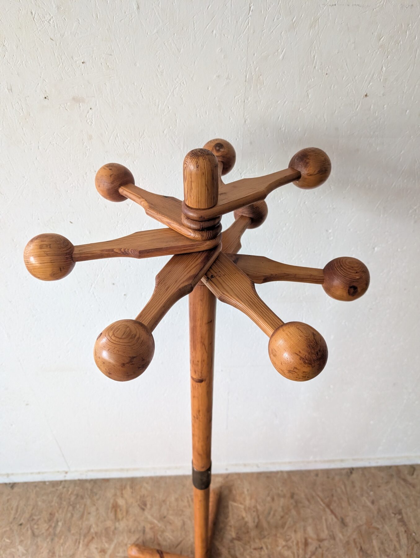 Porte-manteaux en pin massif des années 70 avec 8 patères articulées.