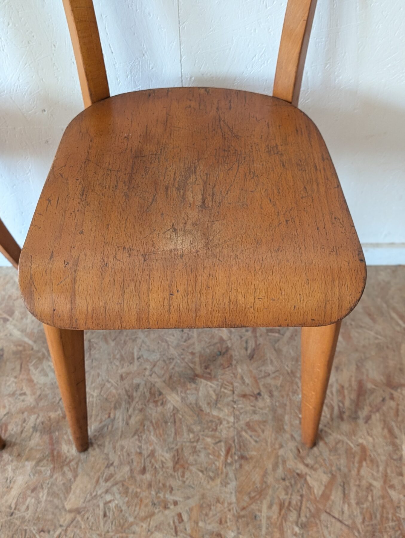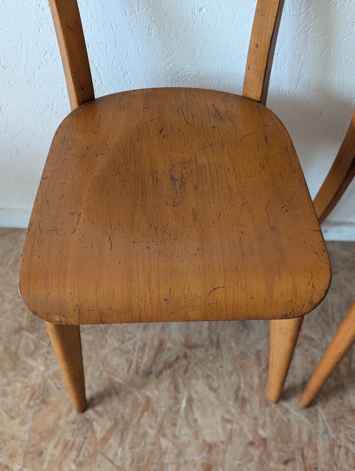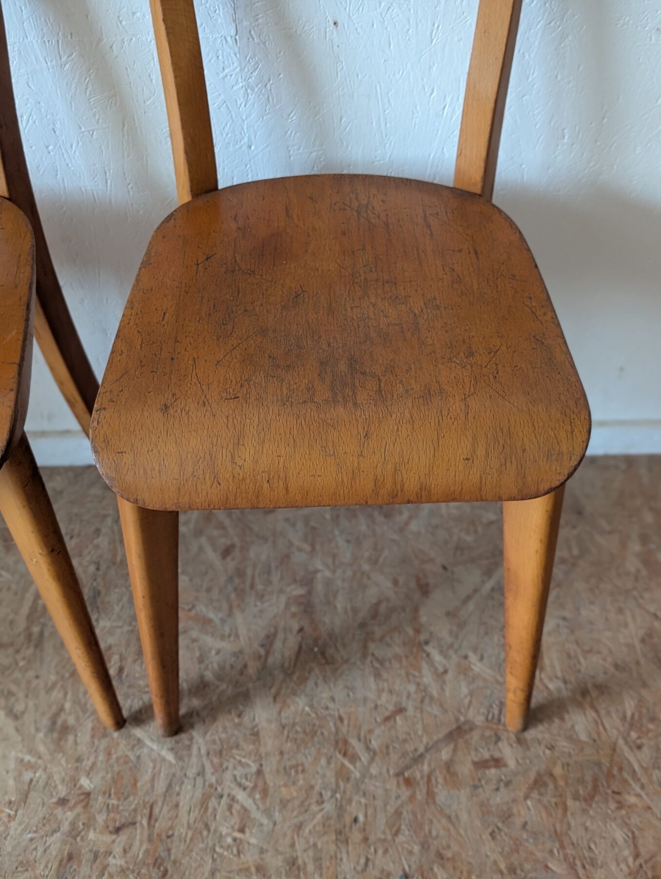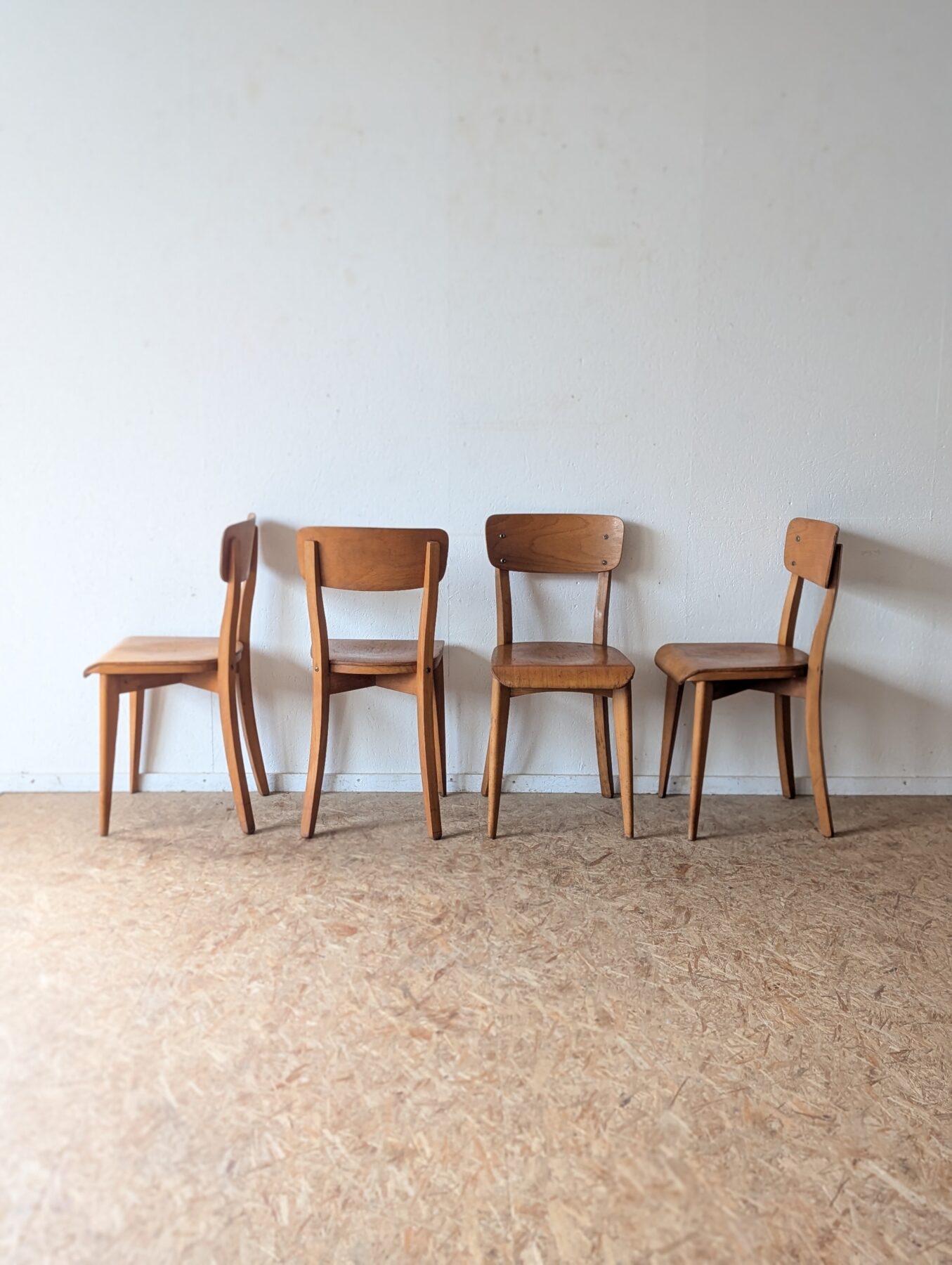 Suite de 4 chaises bistrot en hêtre des années 40/50.