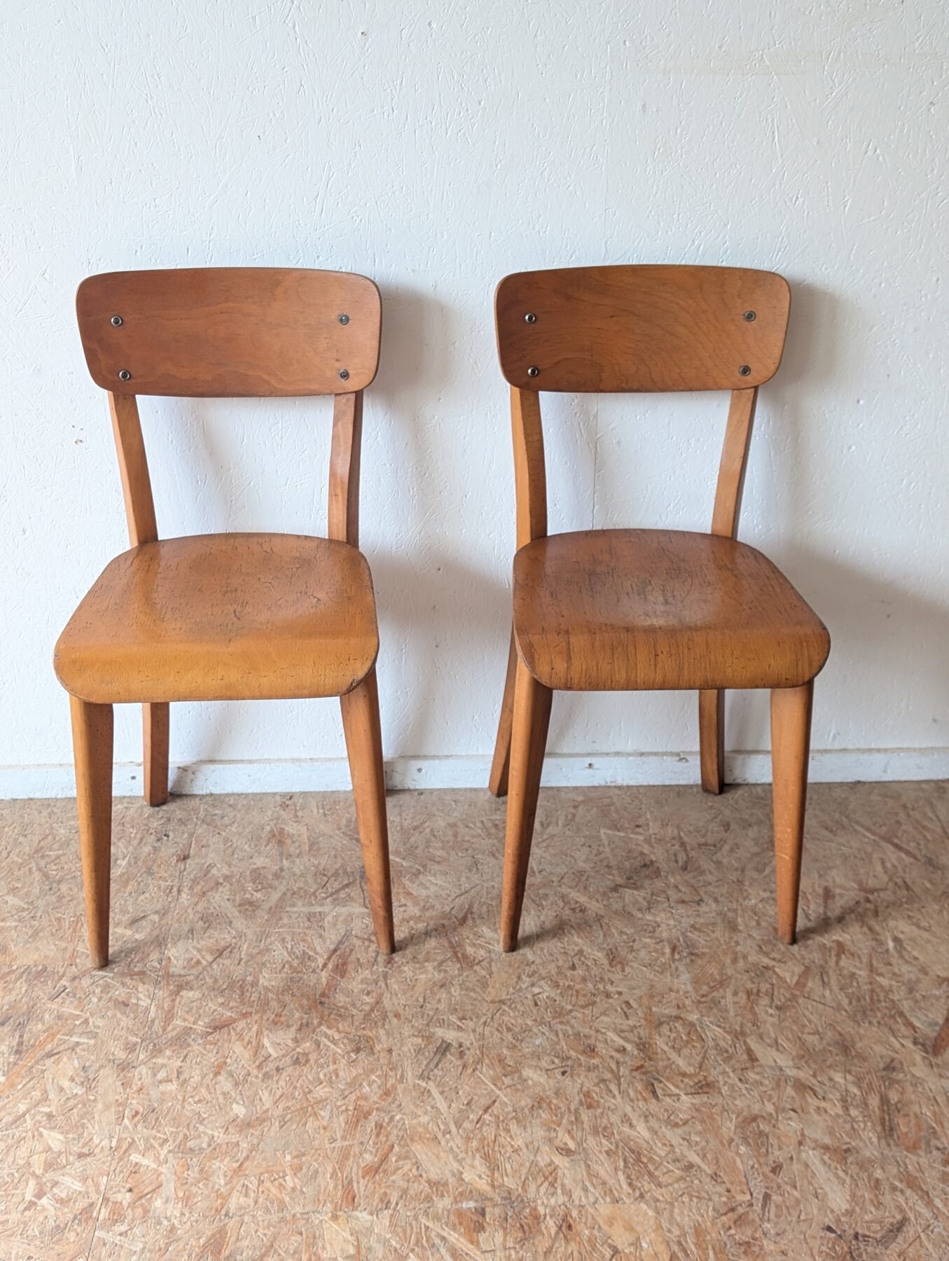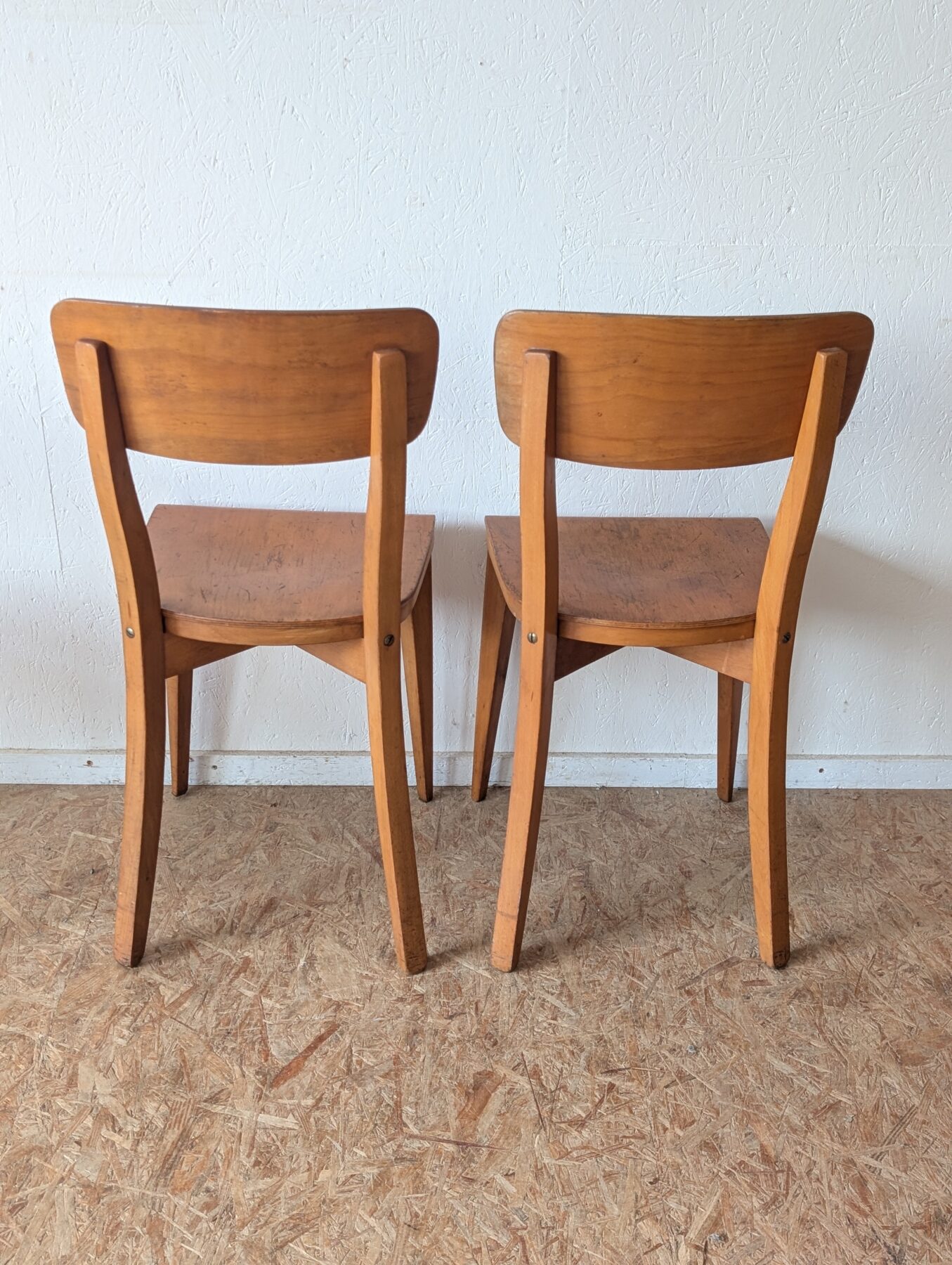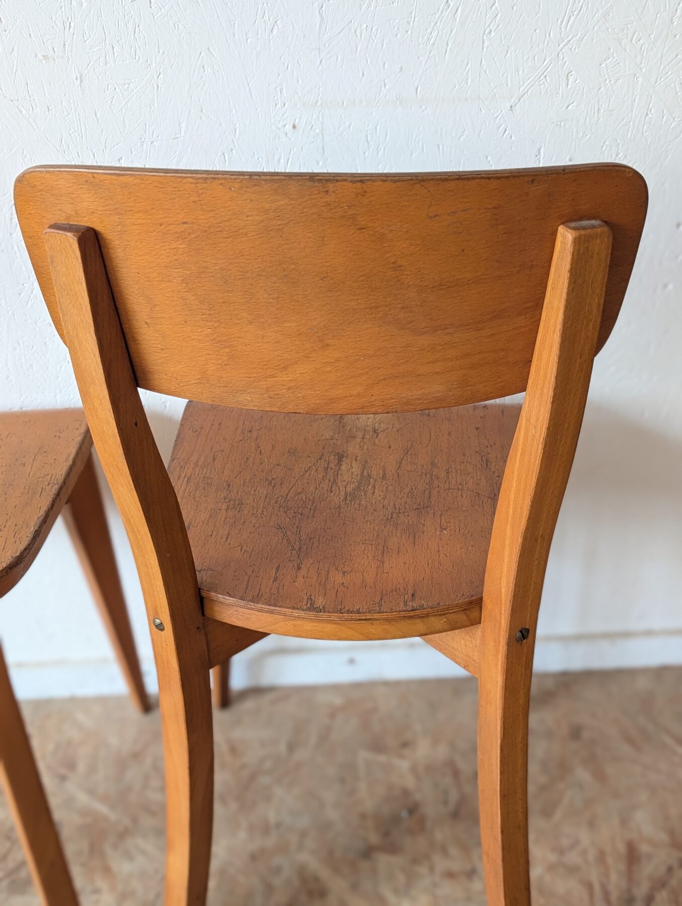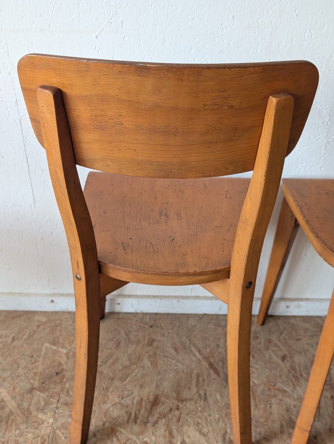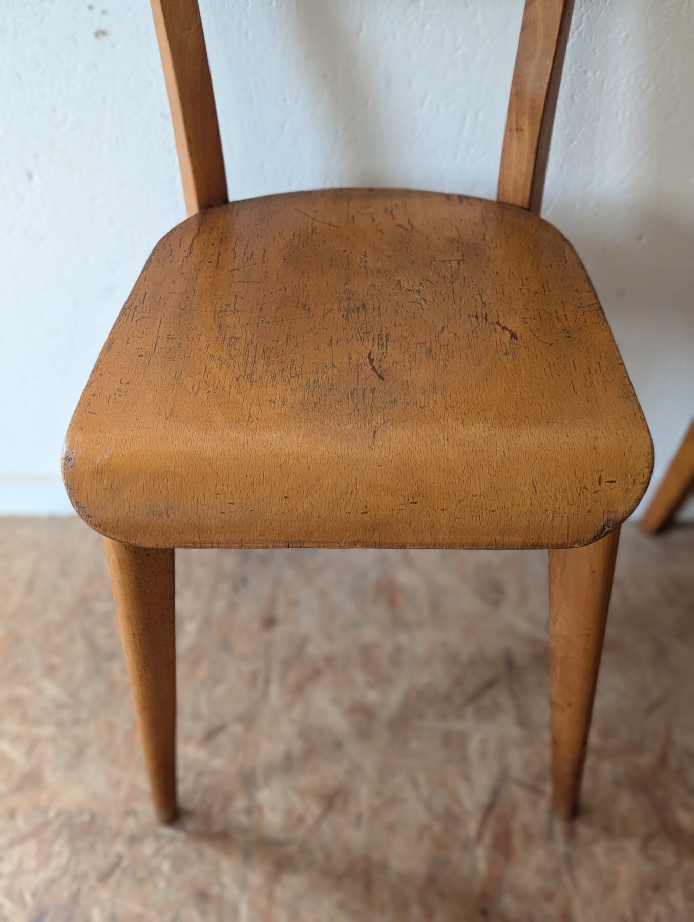 Suite de 4 chaises bistrot en hêtre des années 40/50.