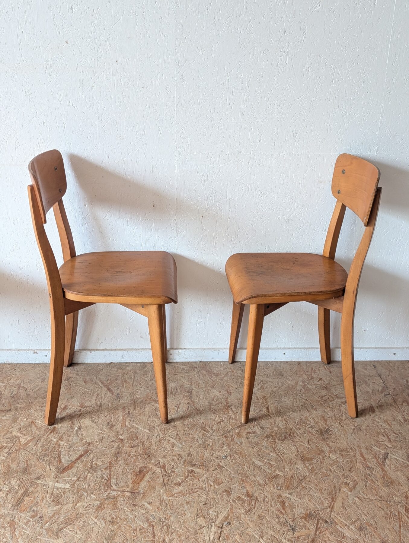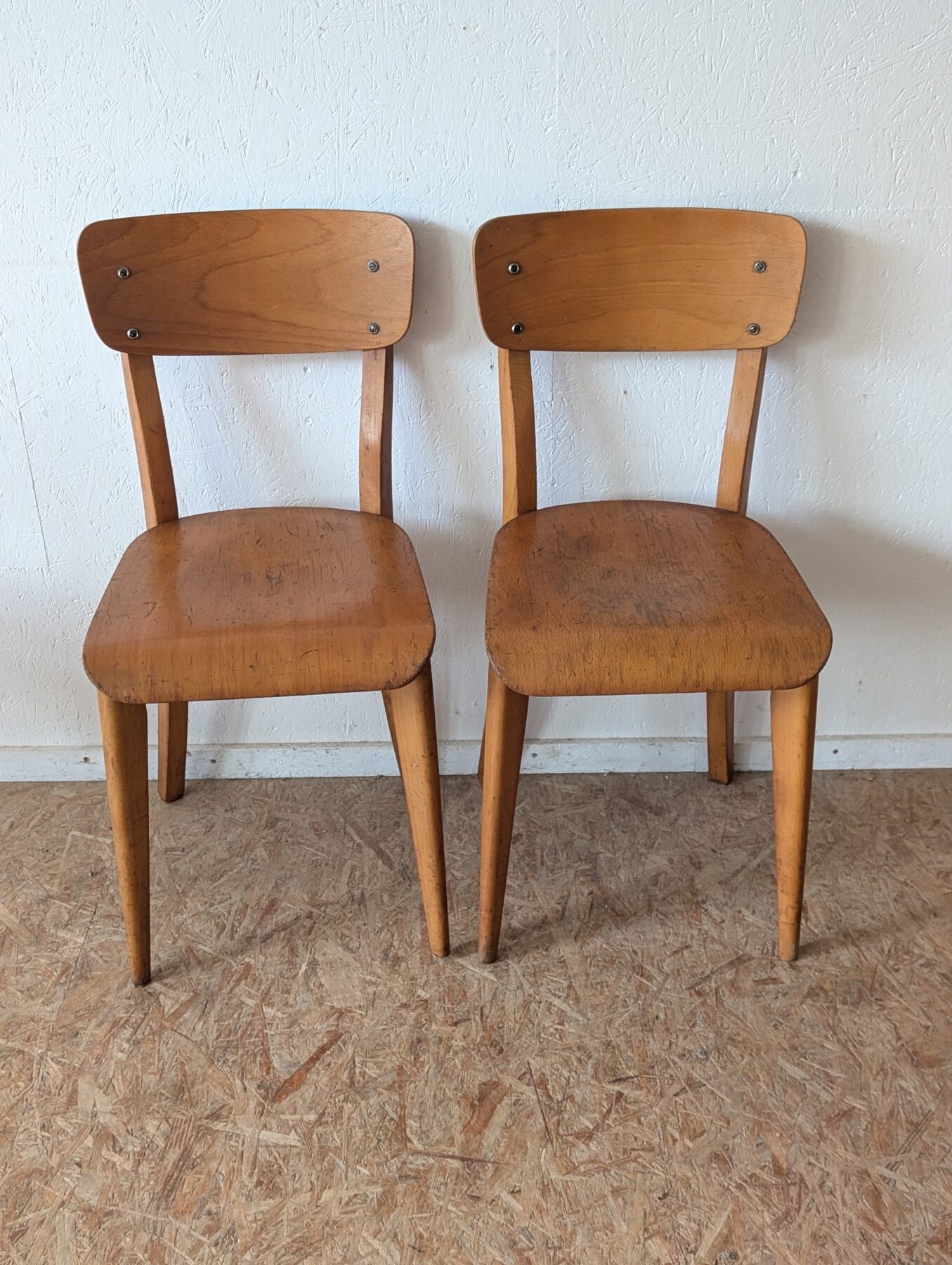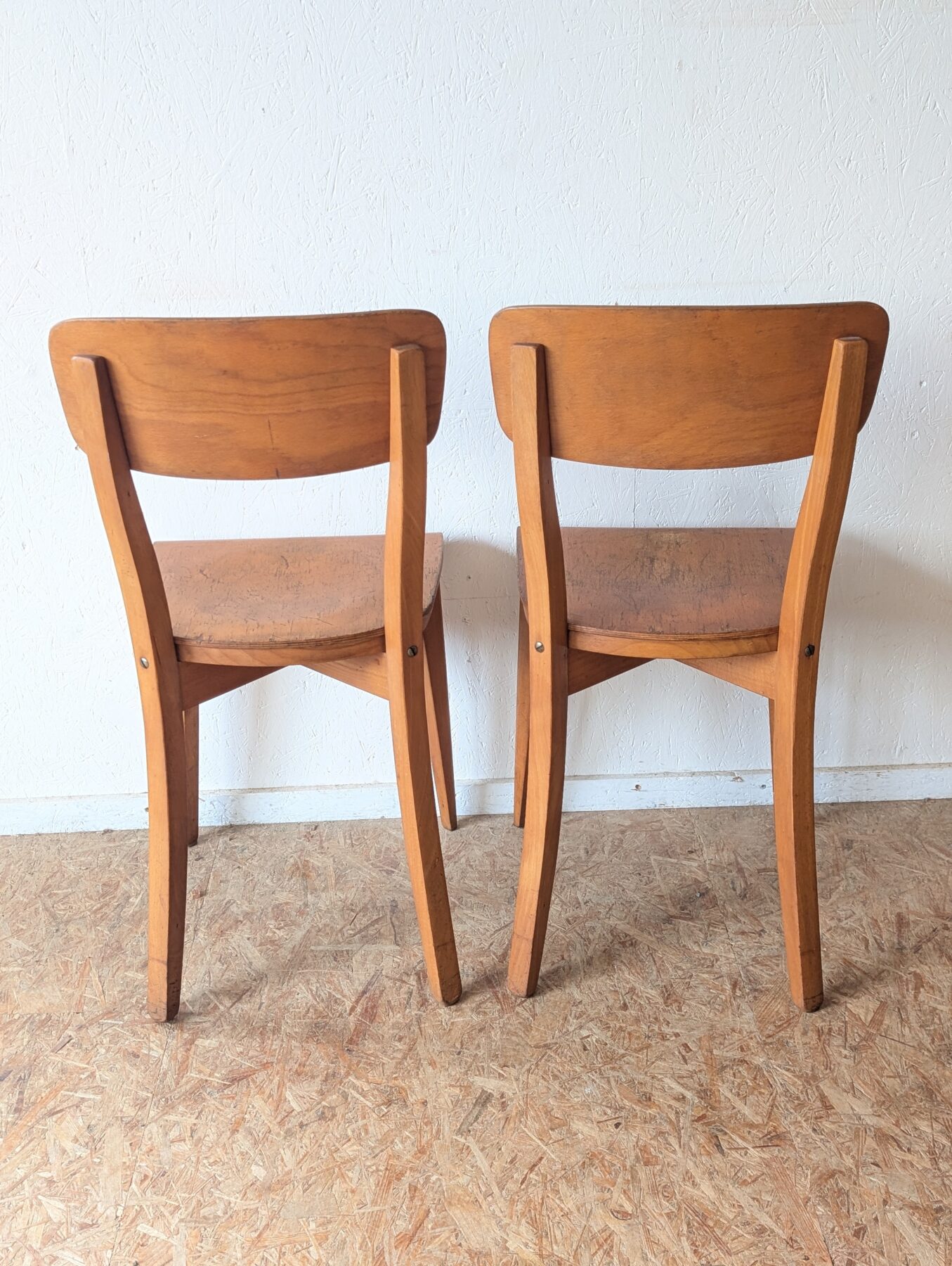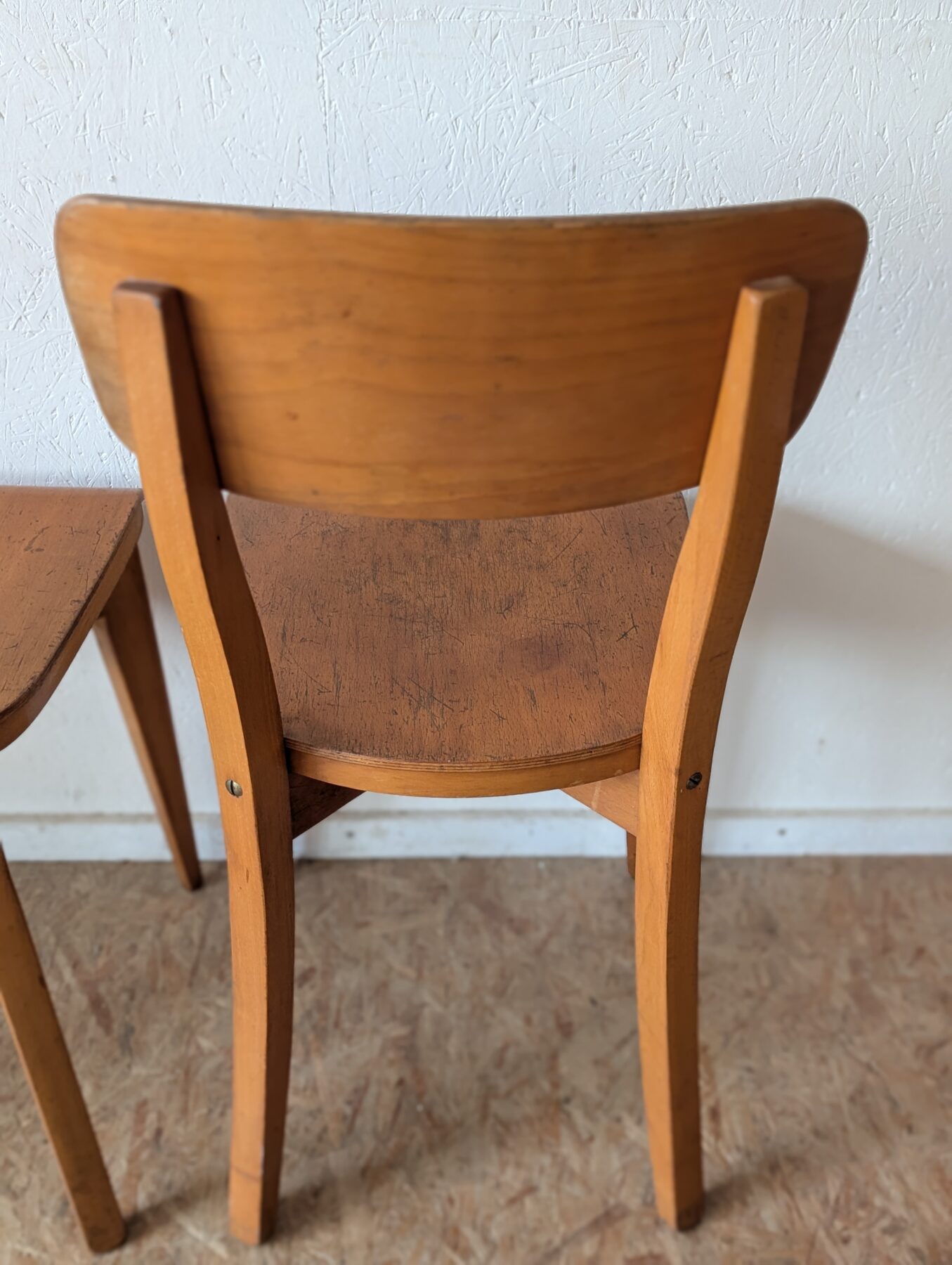 Suite de 4 chaises bistrot en hêtre des années 40/50.