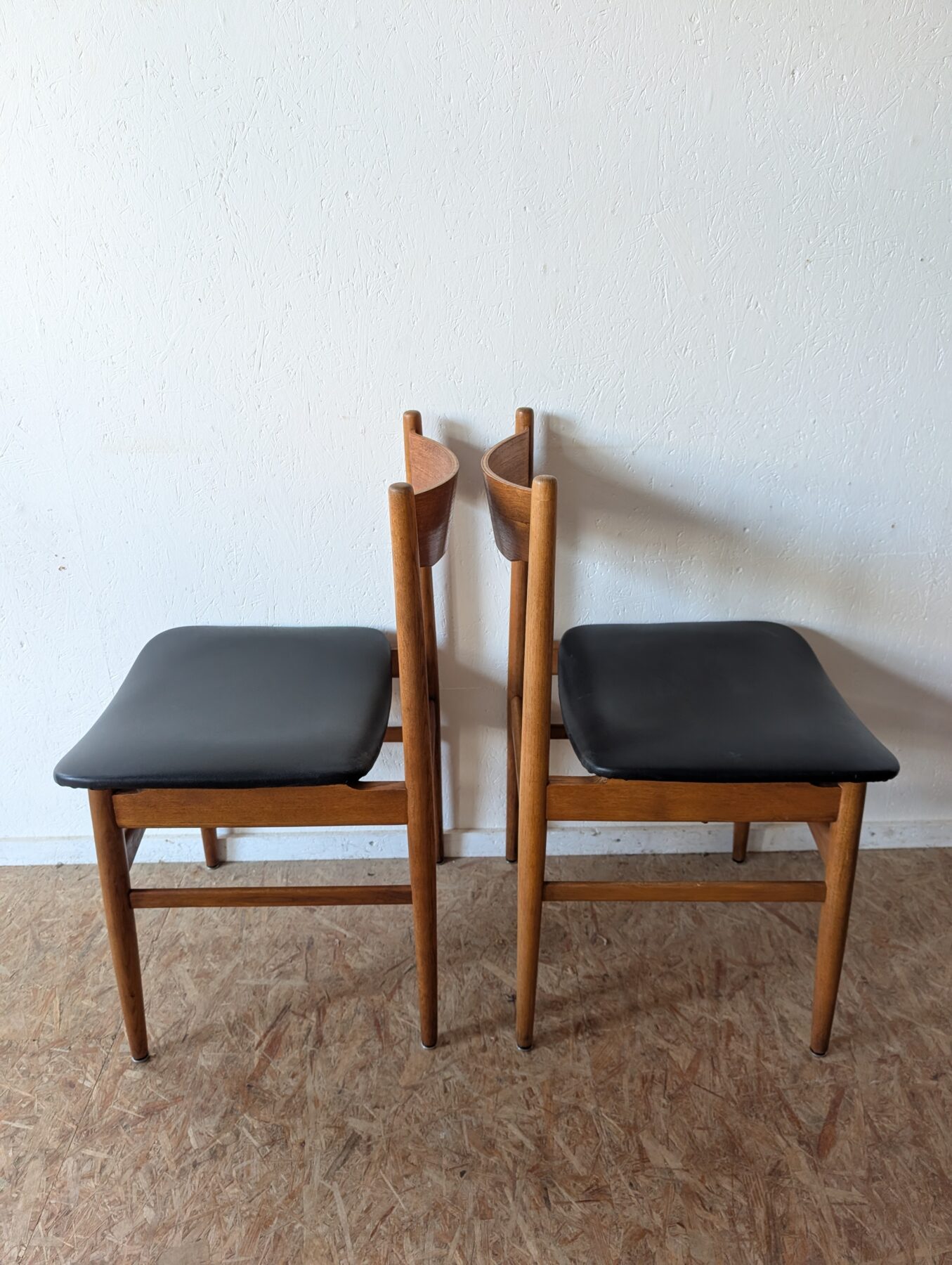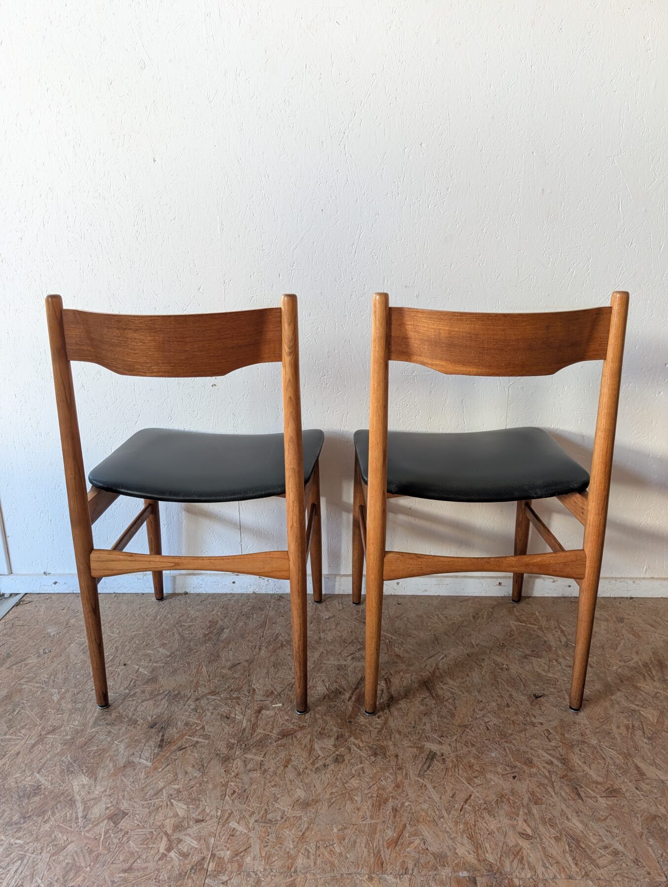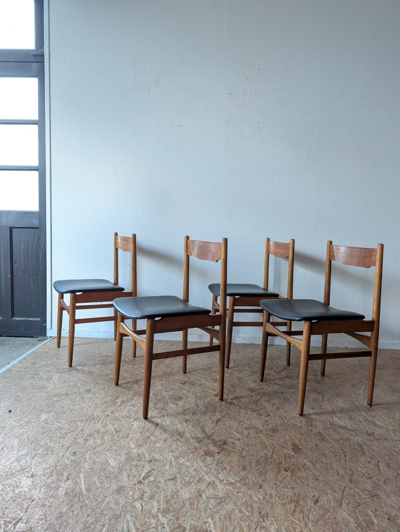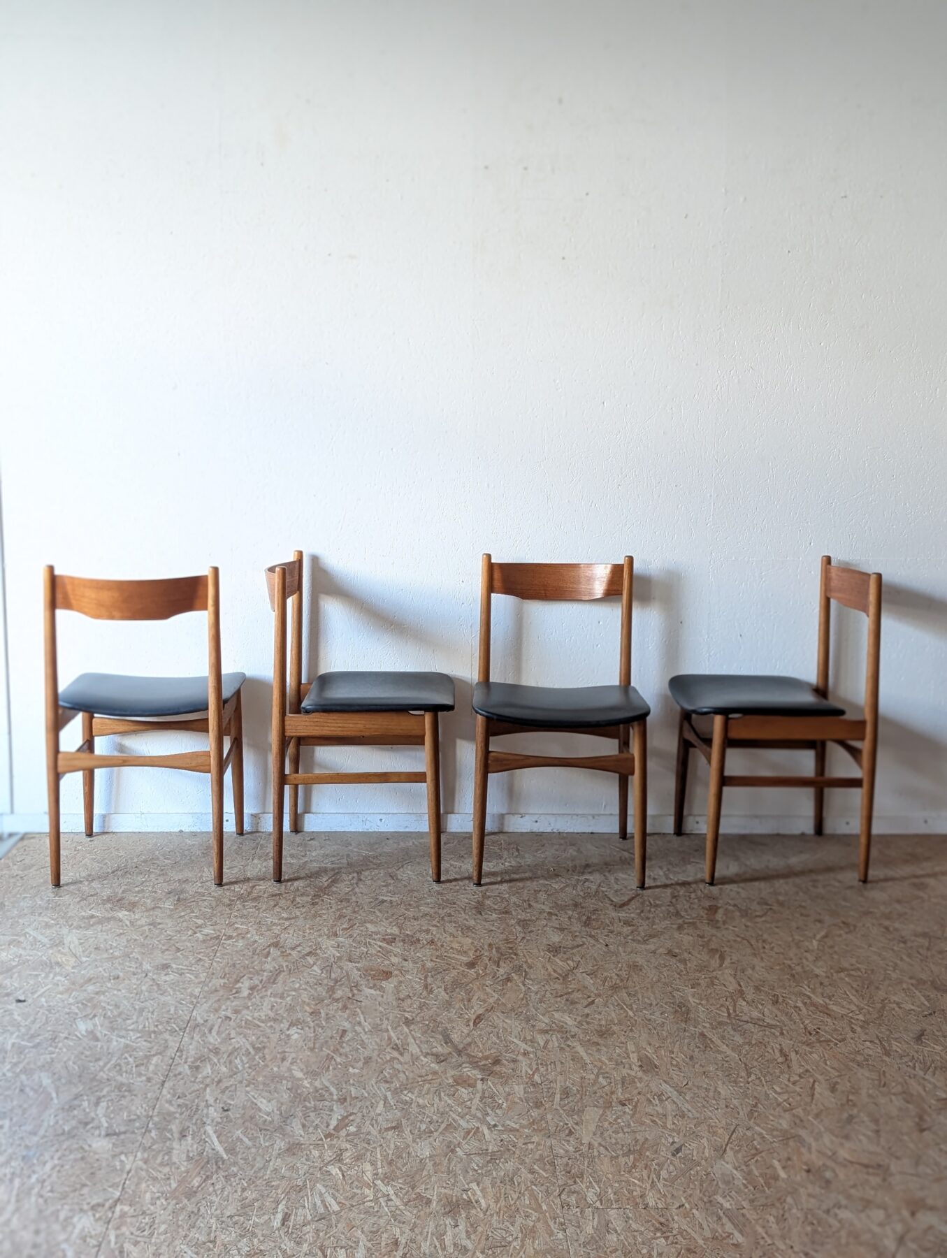 Suite de 4 chaises italiennes Gessep par Consorzio Sedie Friuli, des années 60 en teck et assises skaï noir.