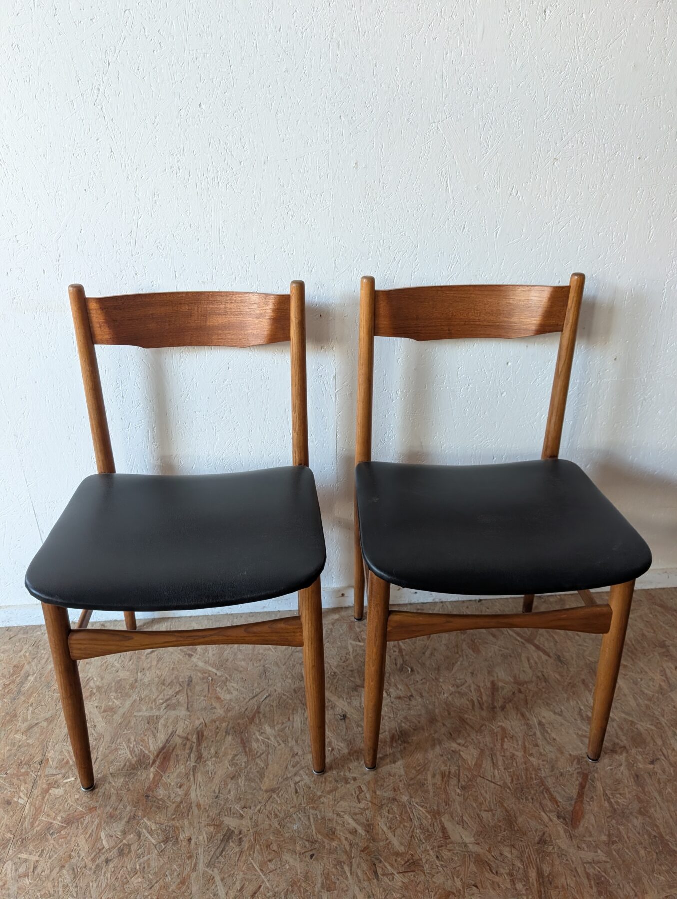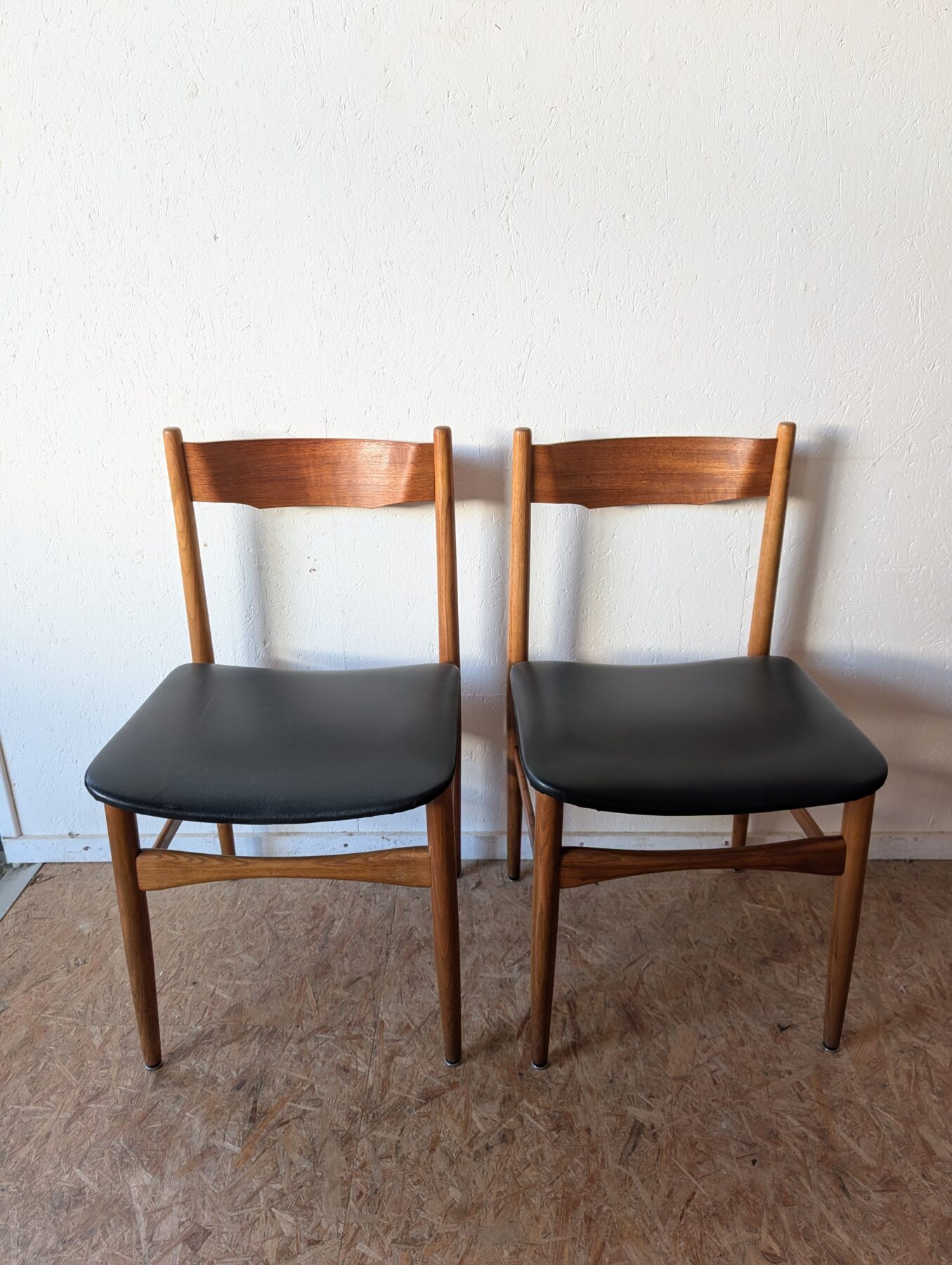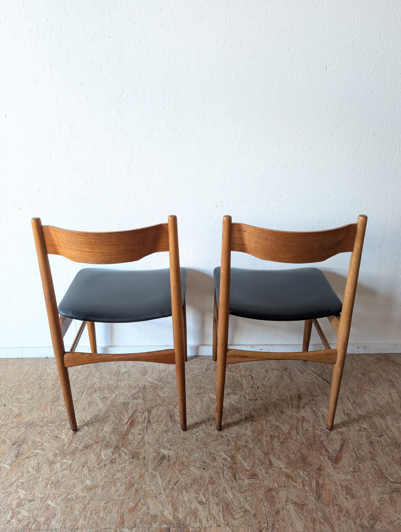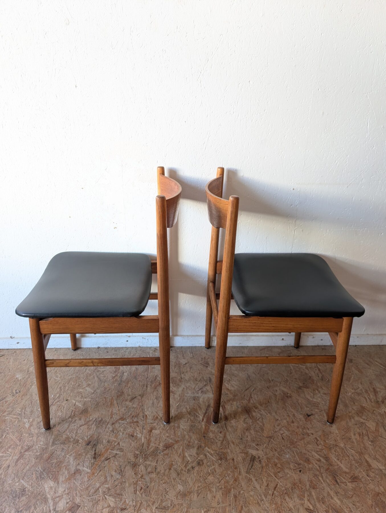 Suite de 4 chaises italiennes Gessep par Consorzio Sedie Friuli, des années 60 en teck et assises skaï noir.