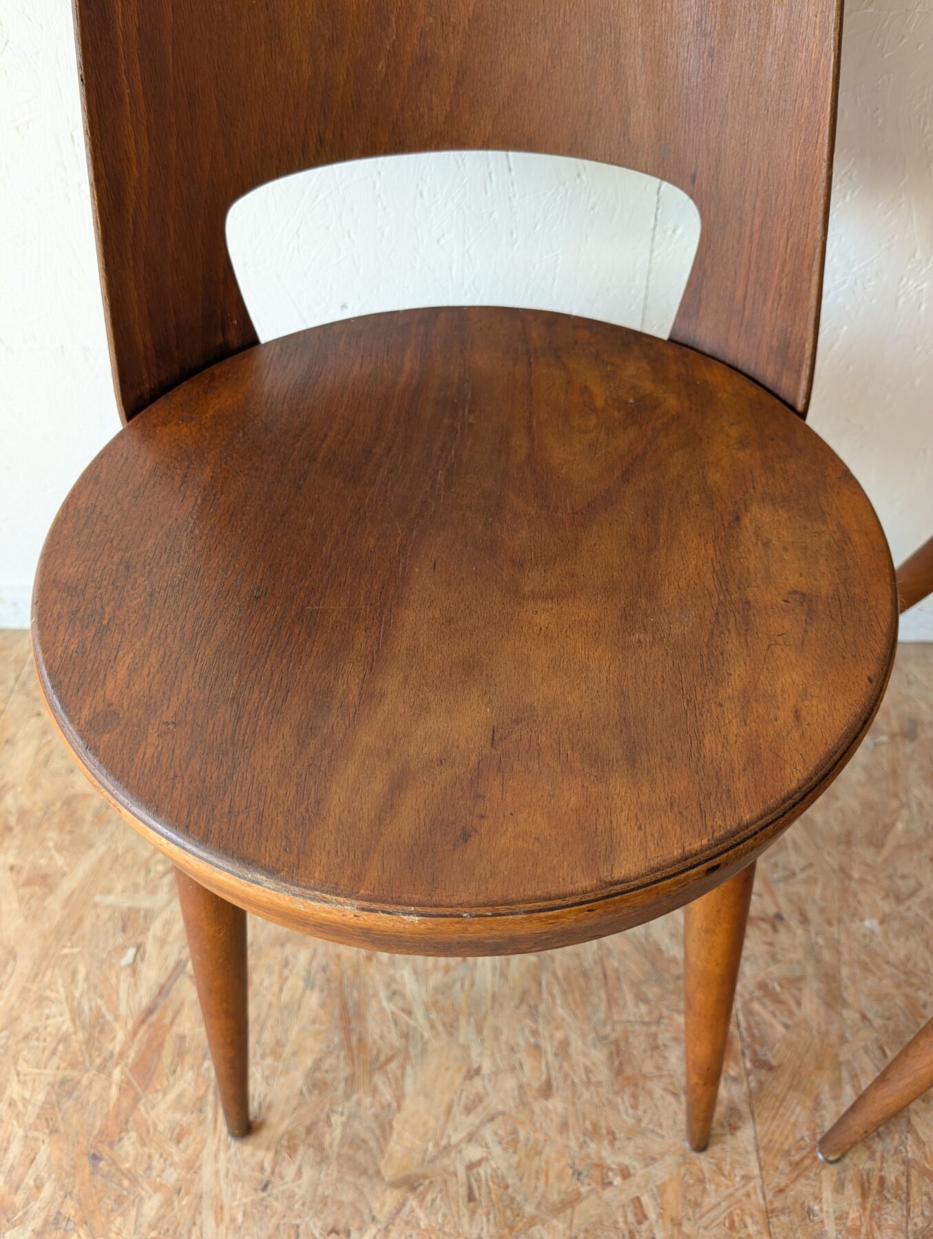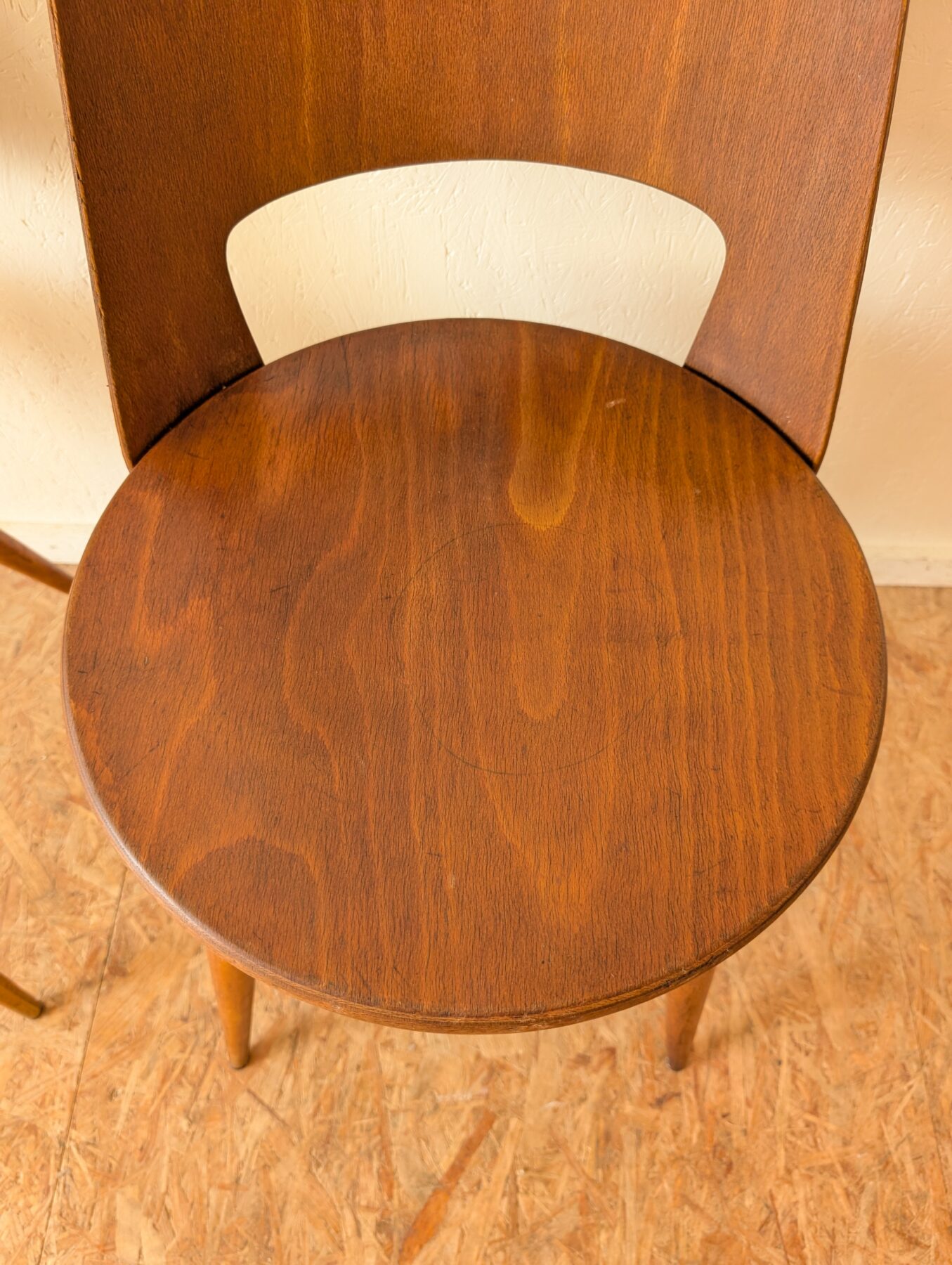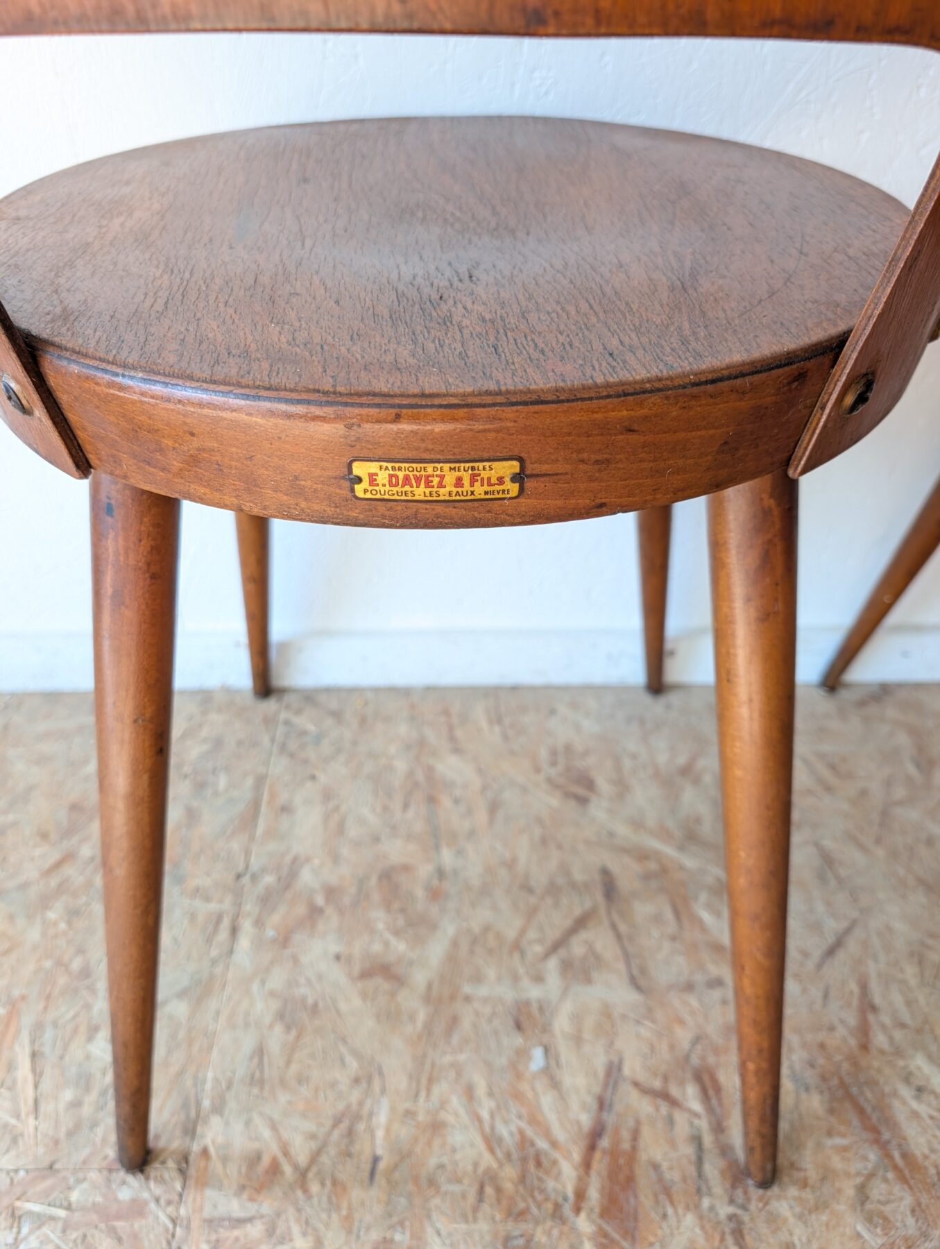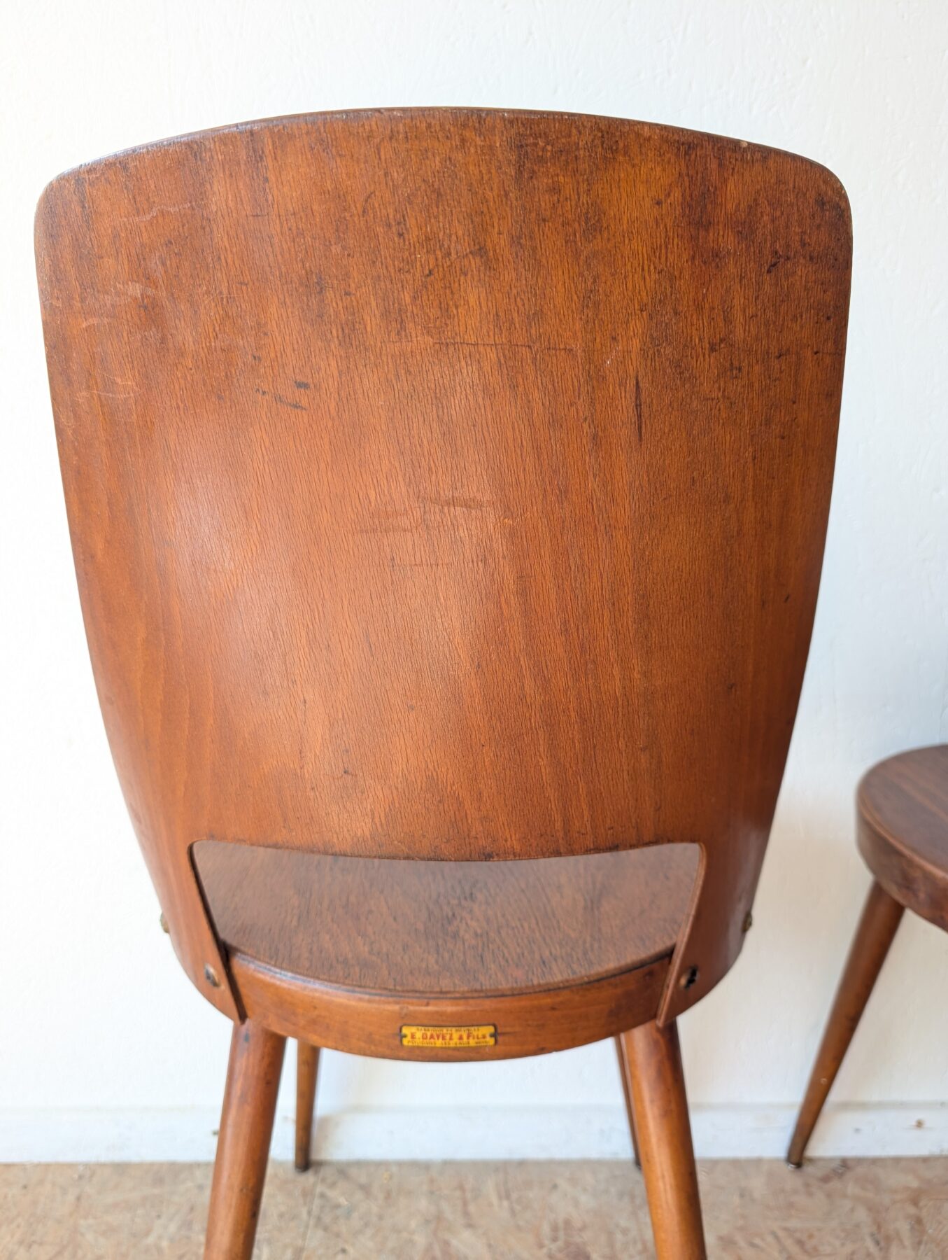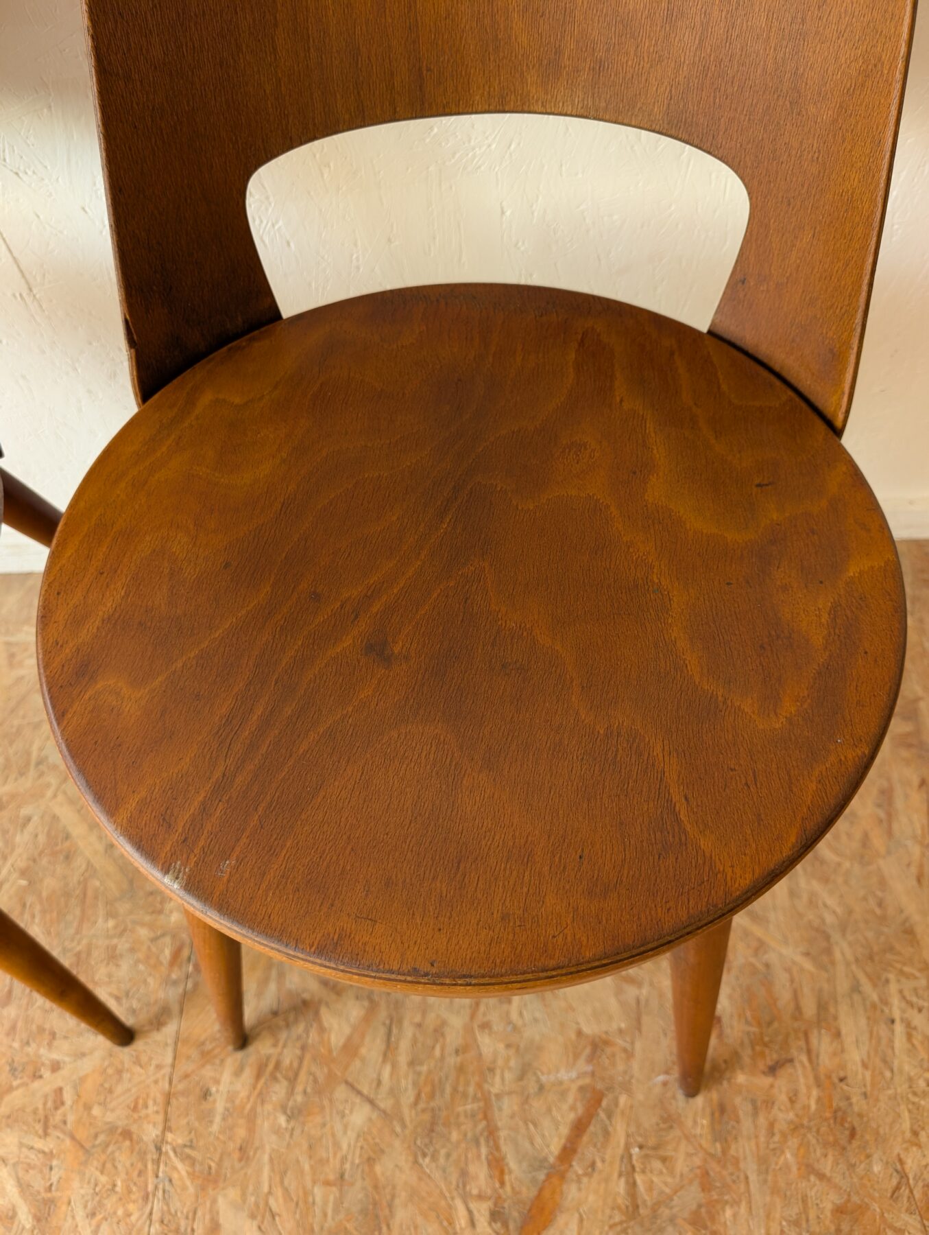Suite de 6 chaises hêtre des années 60 proches du modèle Mondor de Baumann. Fabrication française Davez & Fils (Nièvre).