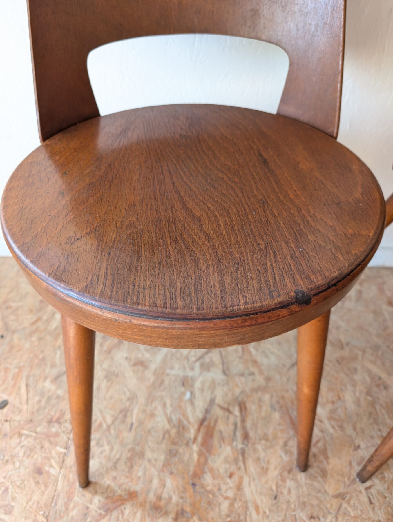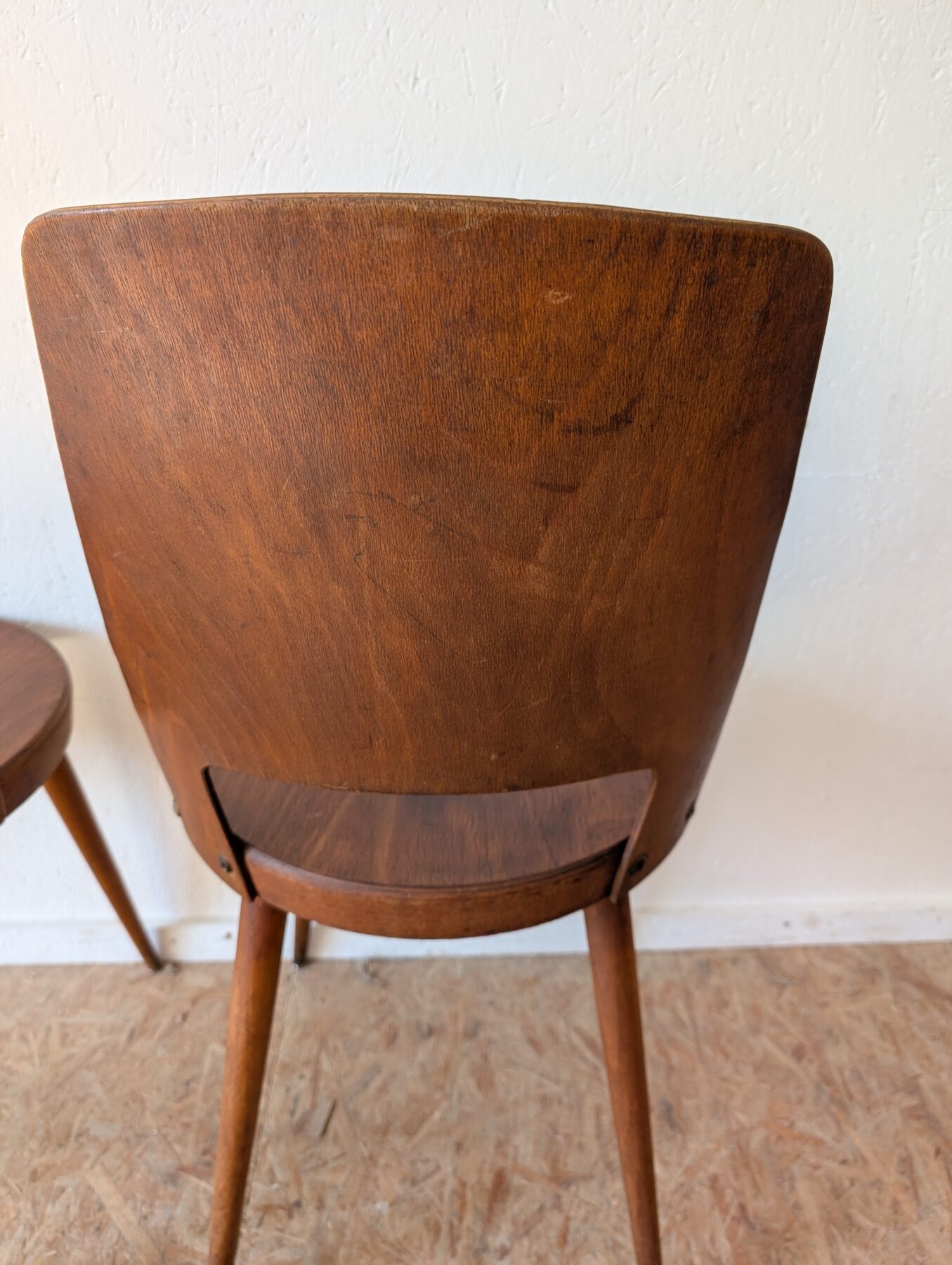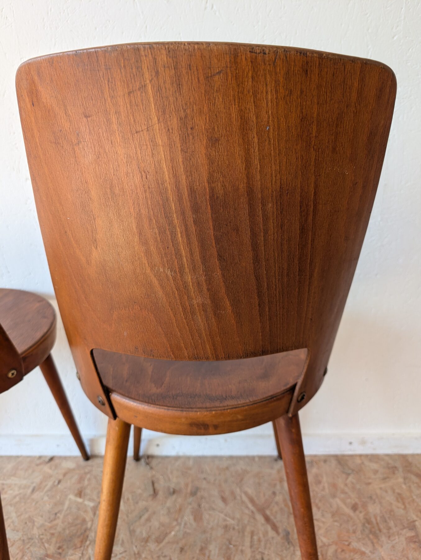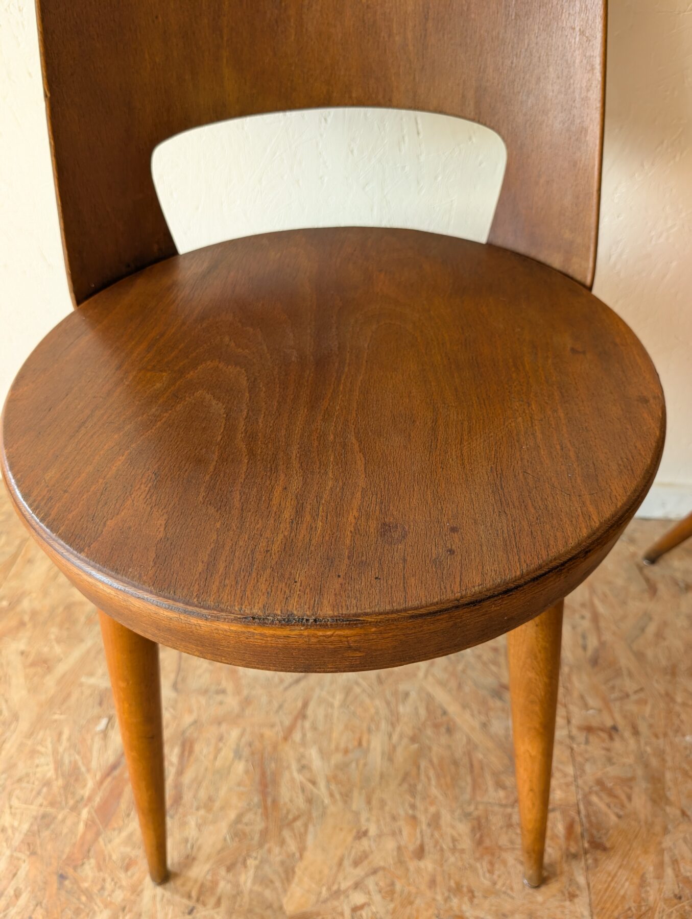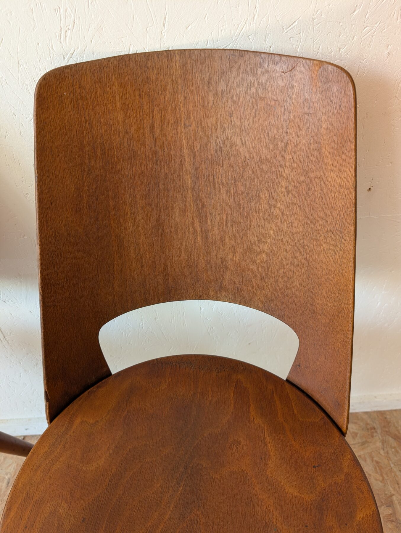 Suite de 6 chaises hêtre des années 60 proches du modèle Mondor de Baumann. Fabrication française Davez & Fils (Nièvre).