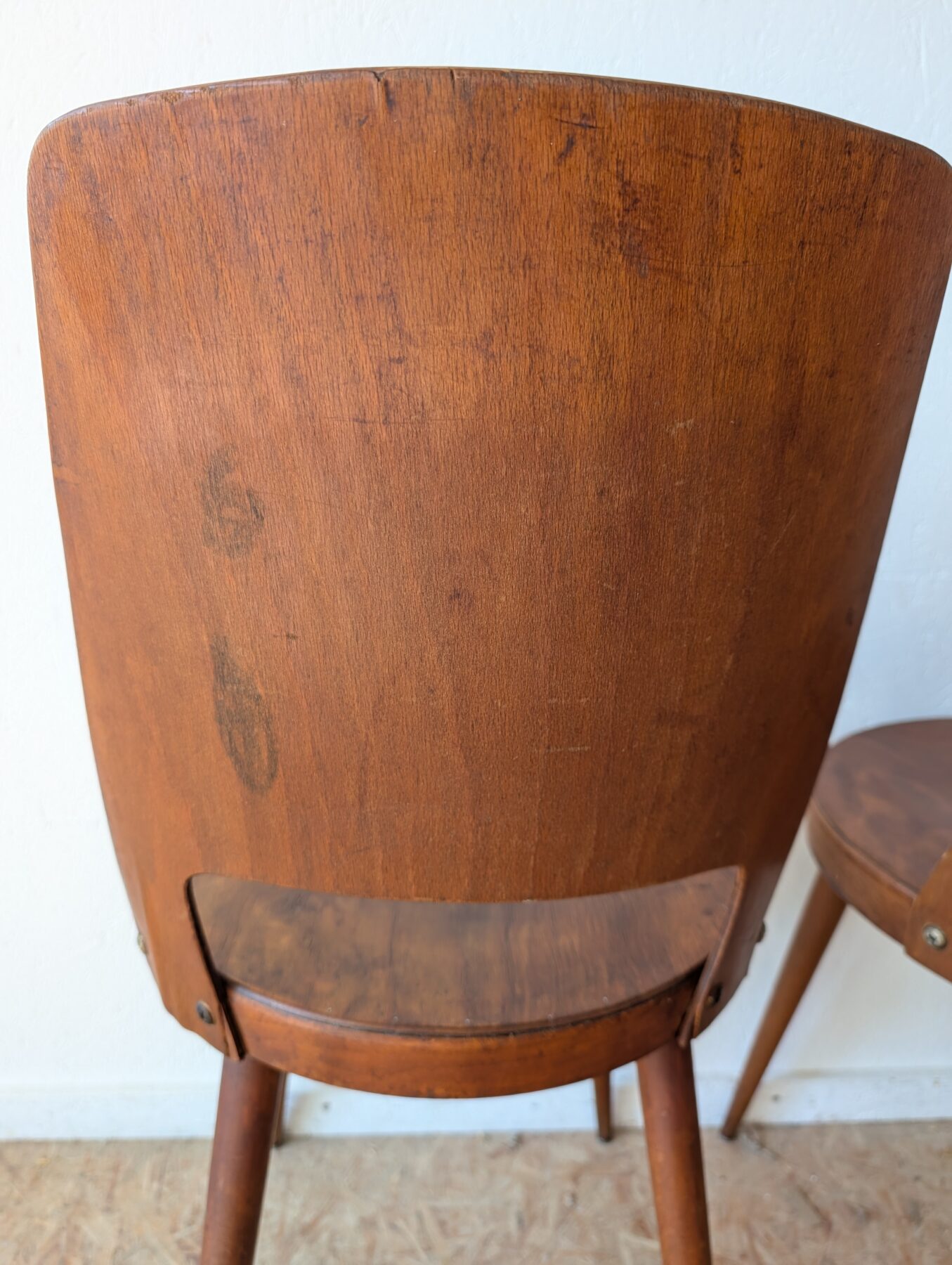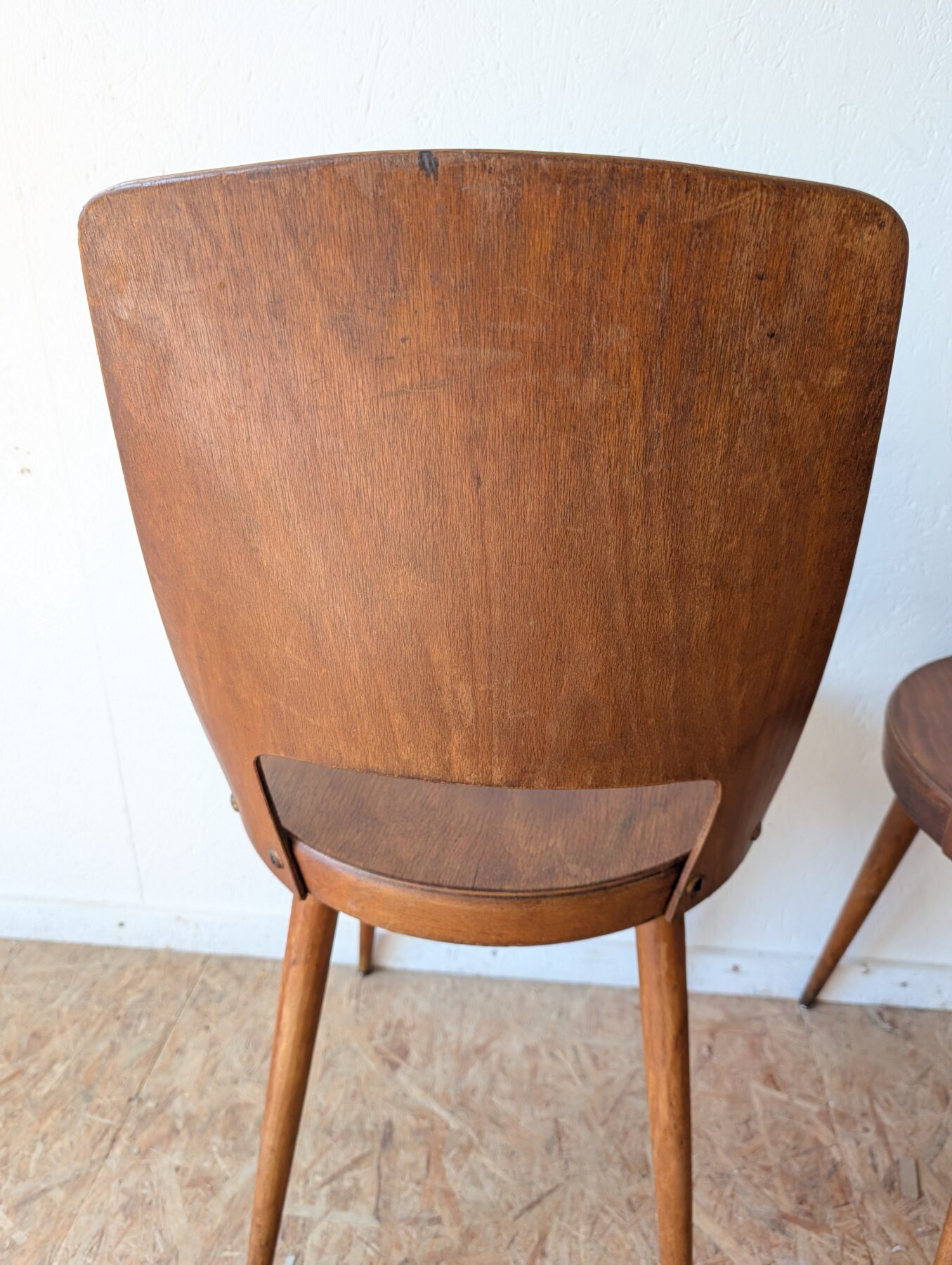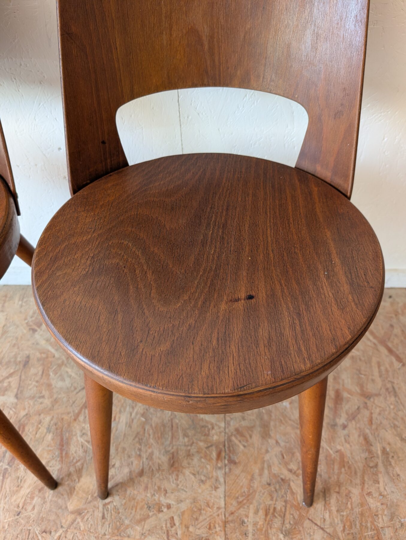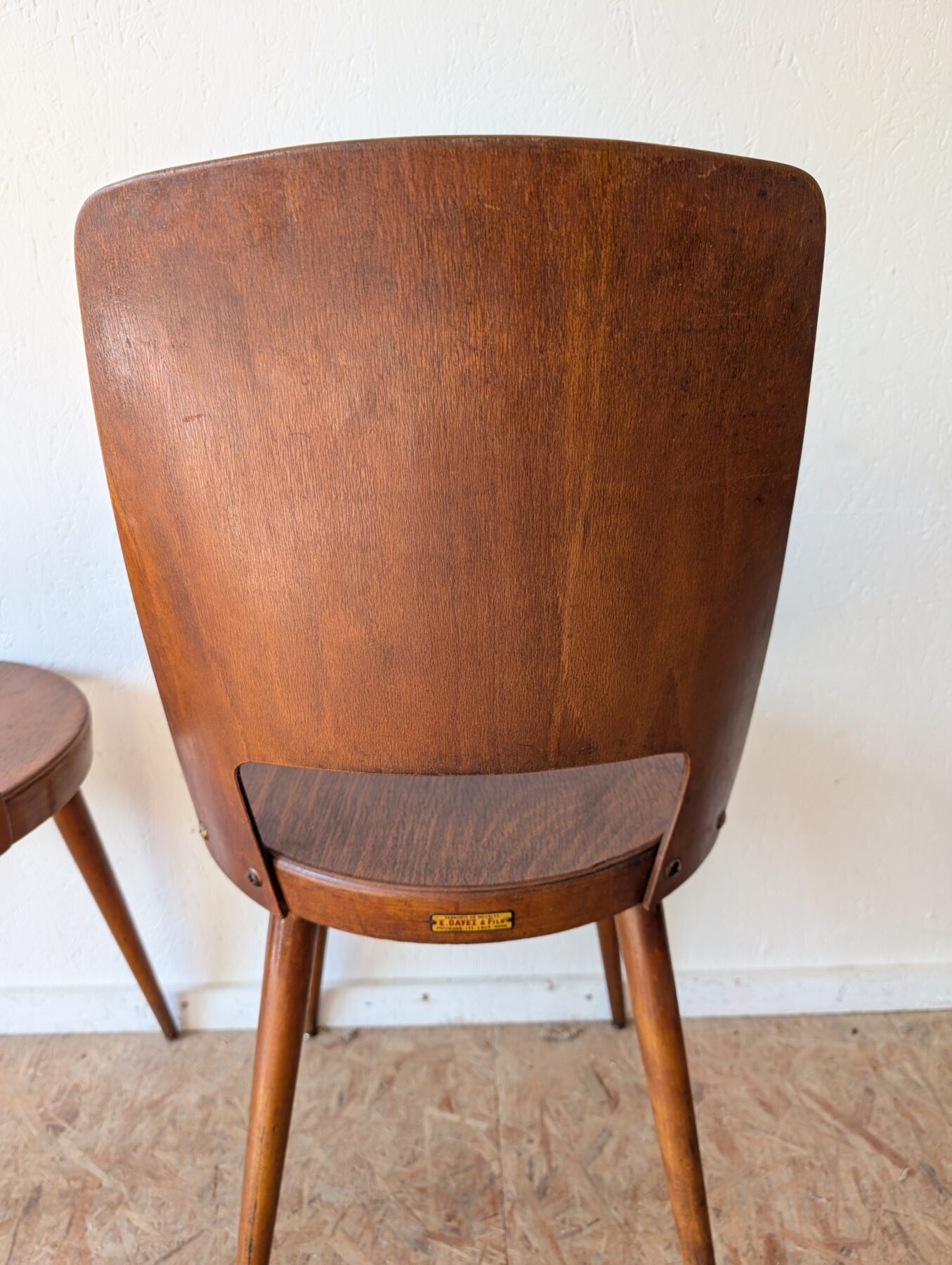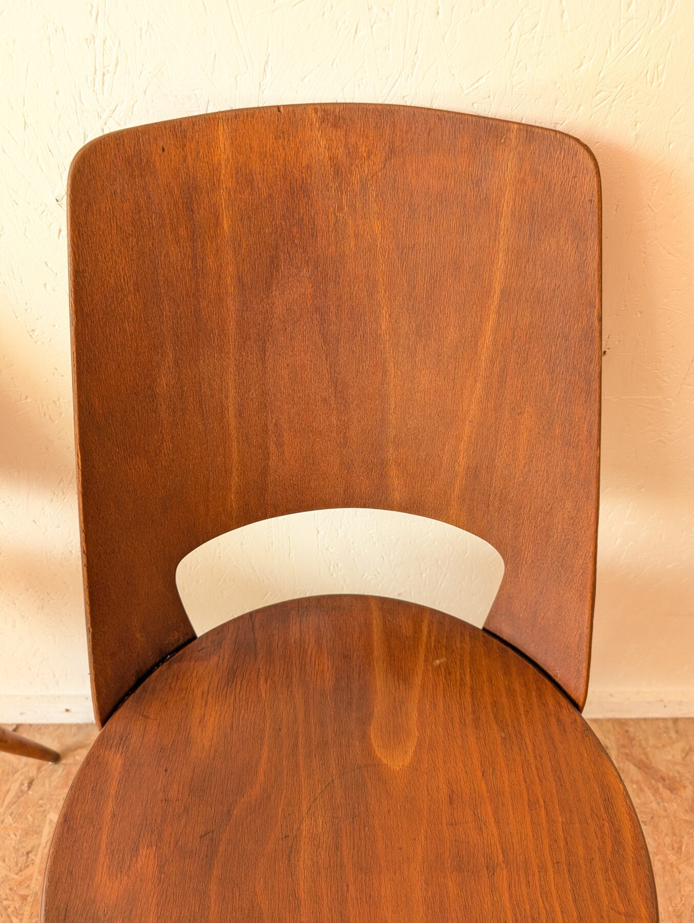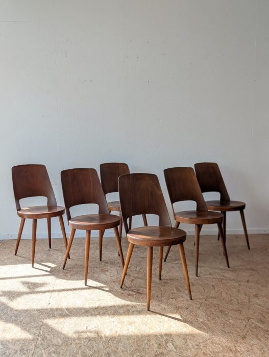 Suite de 6 chaises hêtre des années 60 proches du modèle Mondor de Baumann. Fabrication française Davez & Fils (Nièvre).