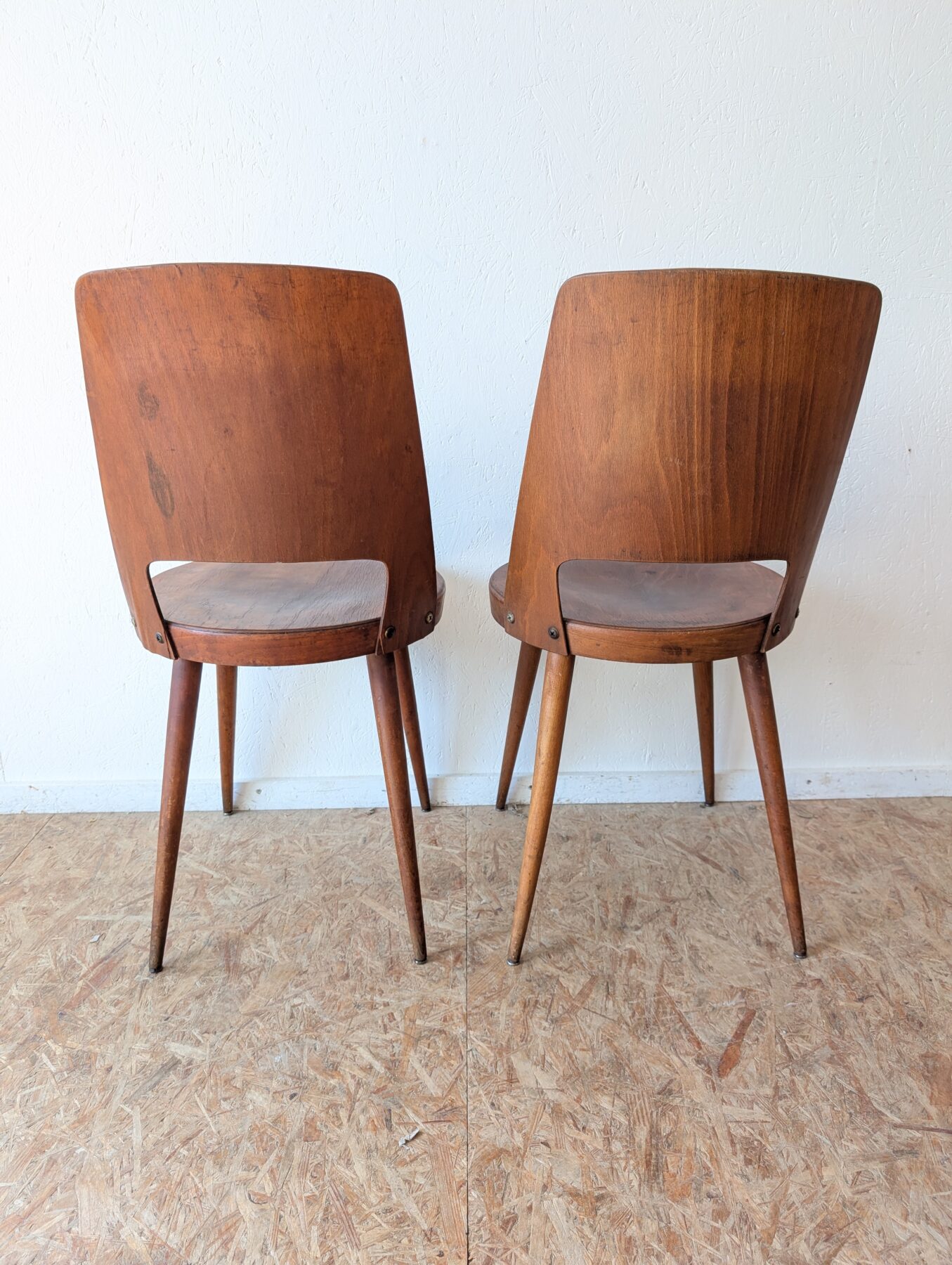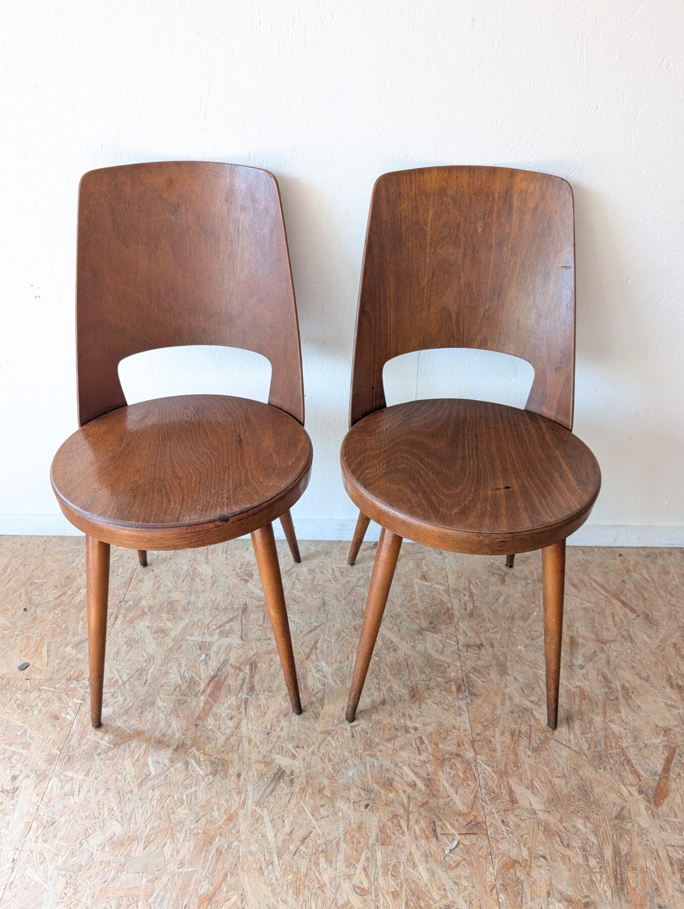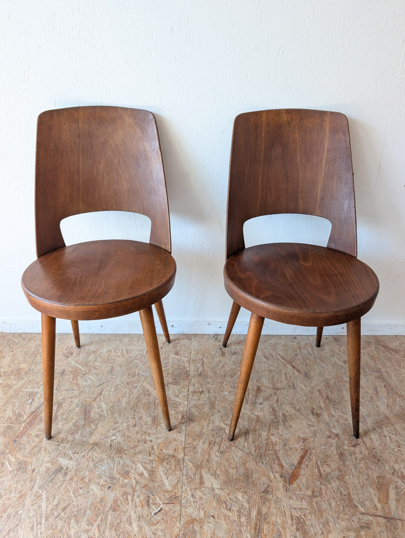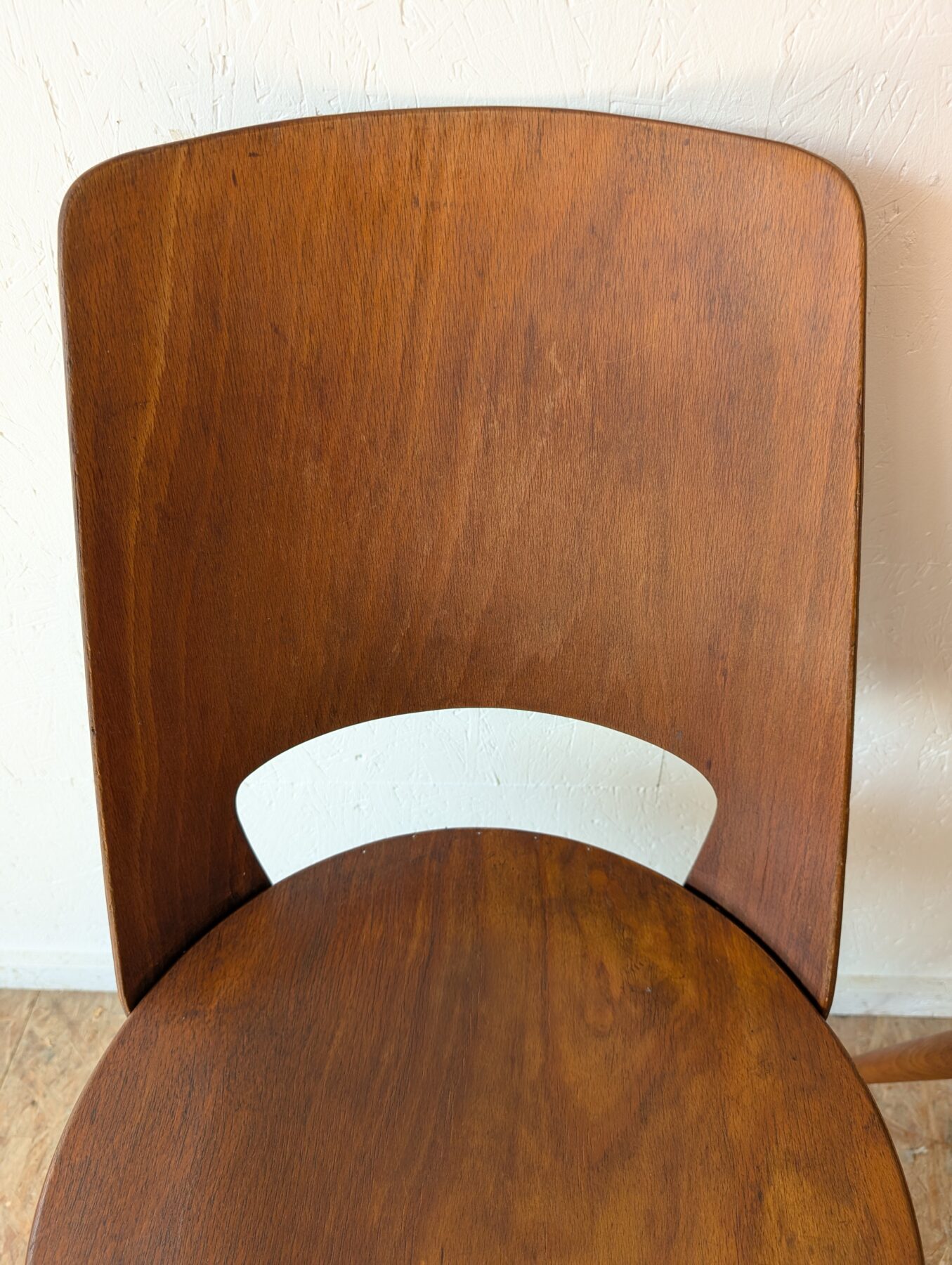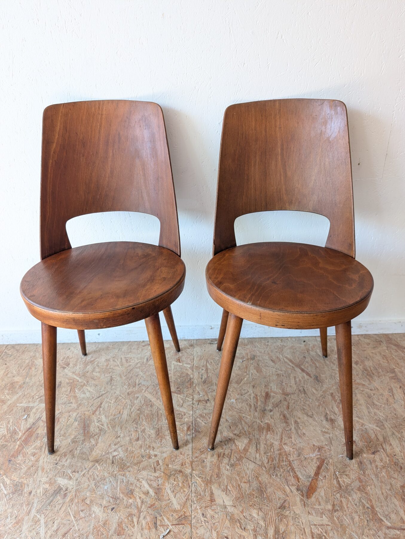 Suite de 6 chaises hêtre des années 60 proches du modèle Mondor de Baumann. Fabrication française Davez & Fils (Nièvre).