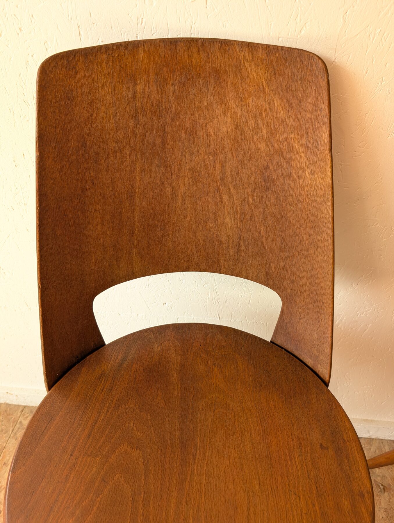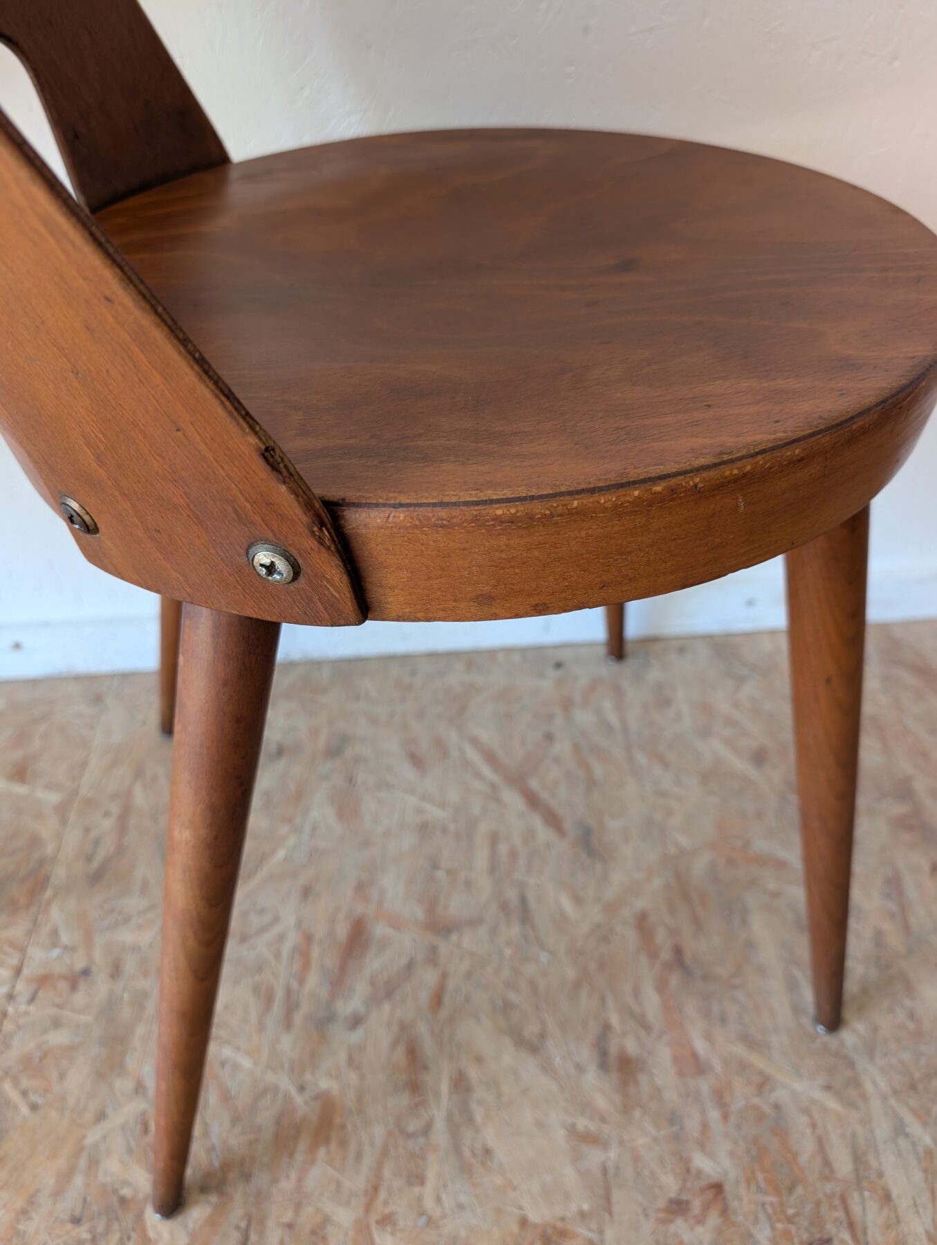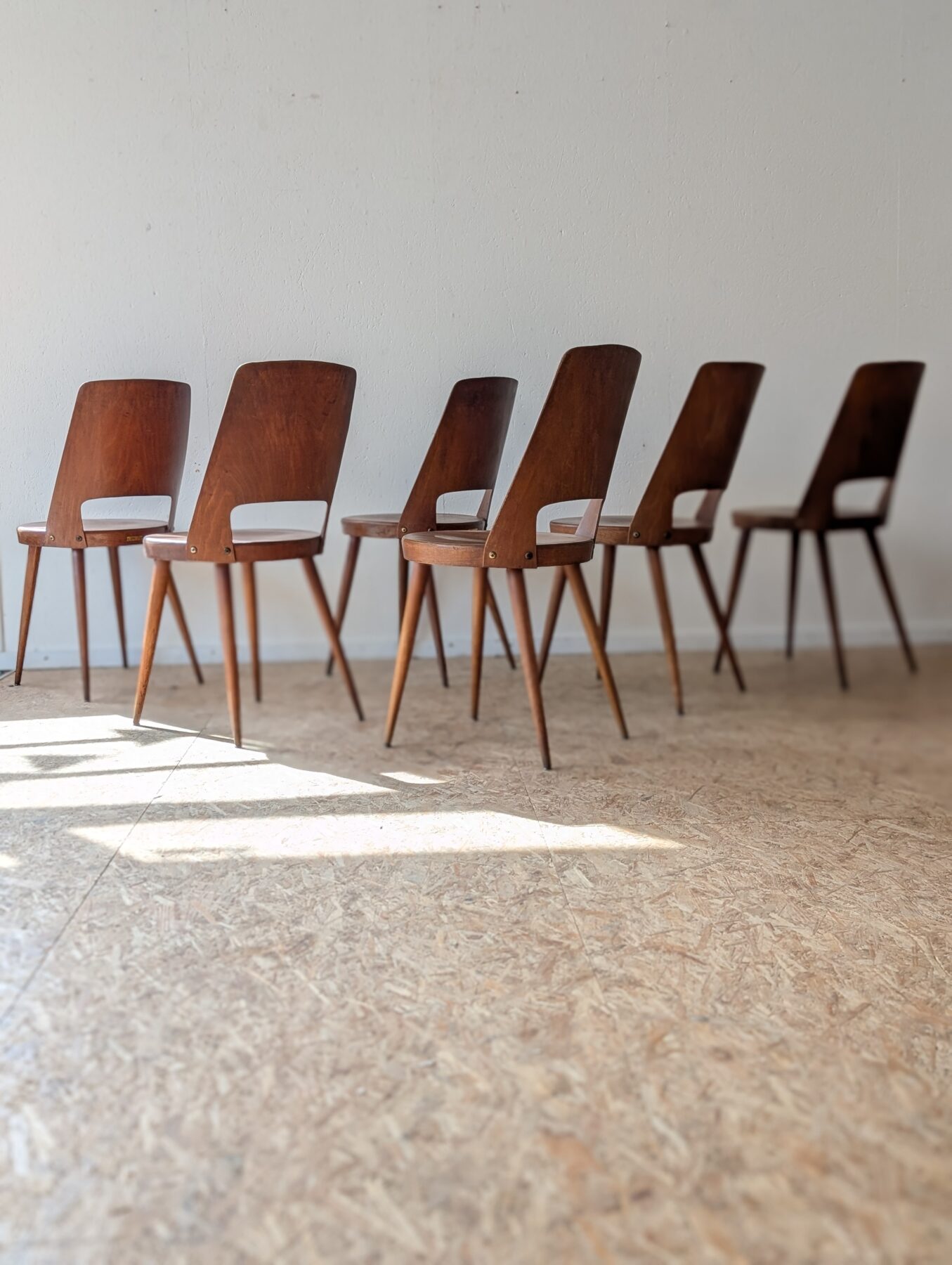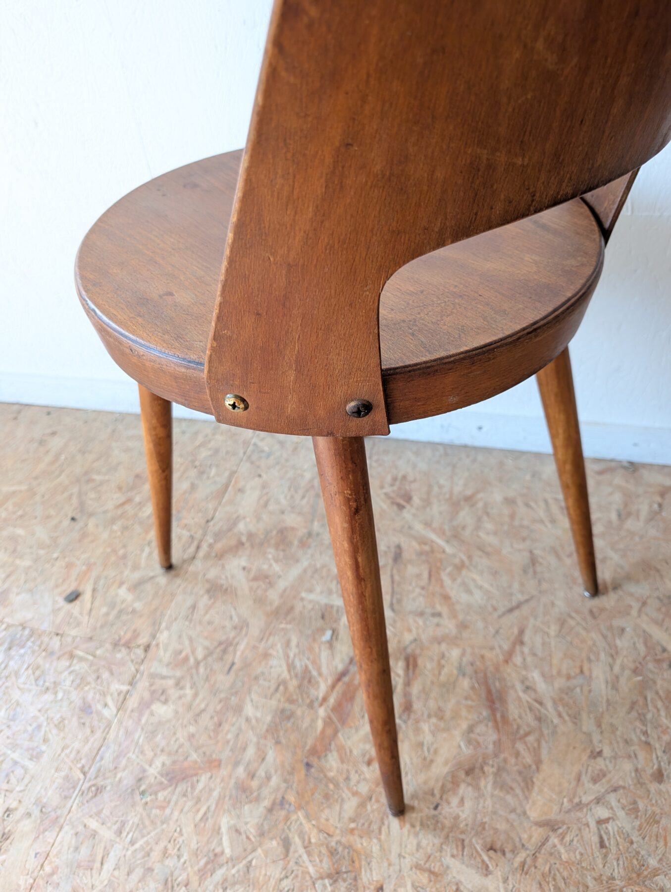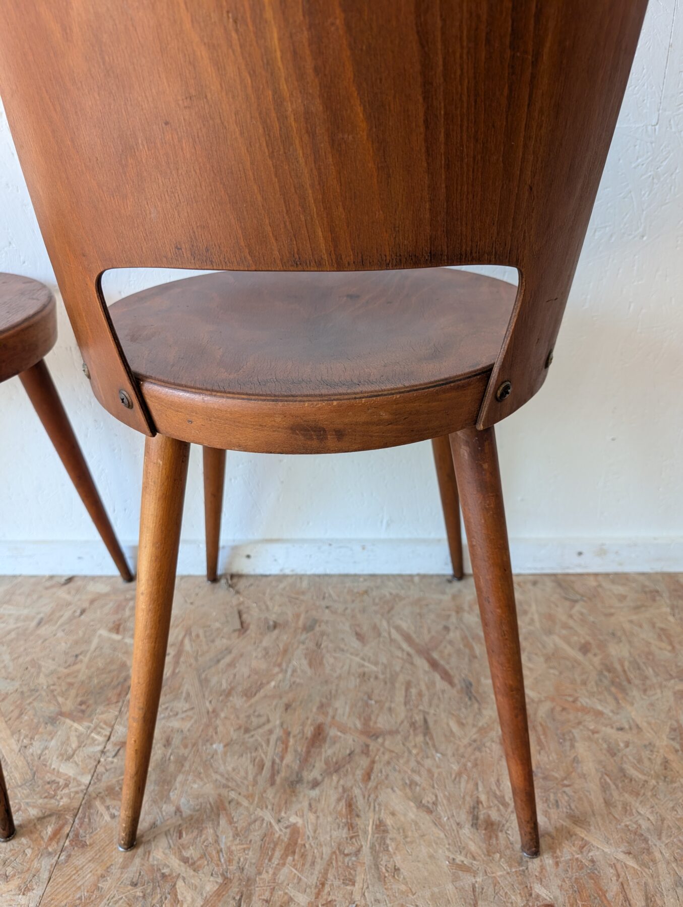 Suite de 6 chaises hêtre des années 60 proches du modèle Mondor de Baumann. Fabrication française Davez & Fils (Nièvre).