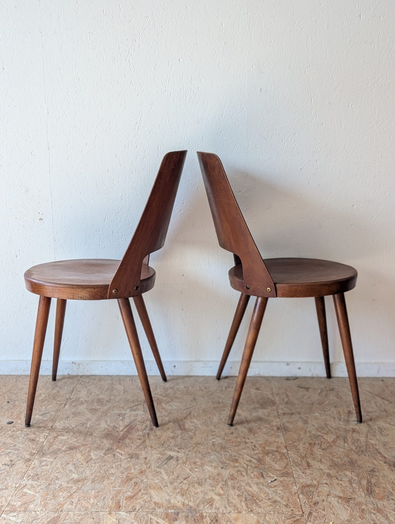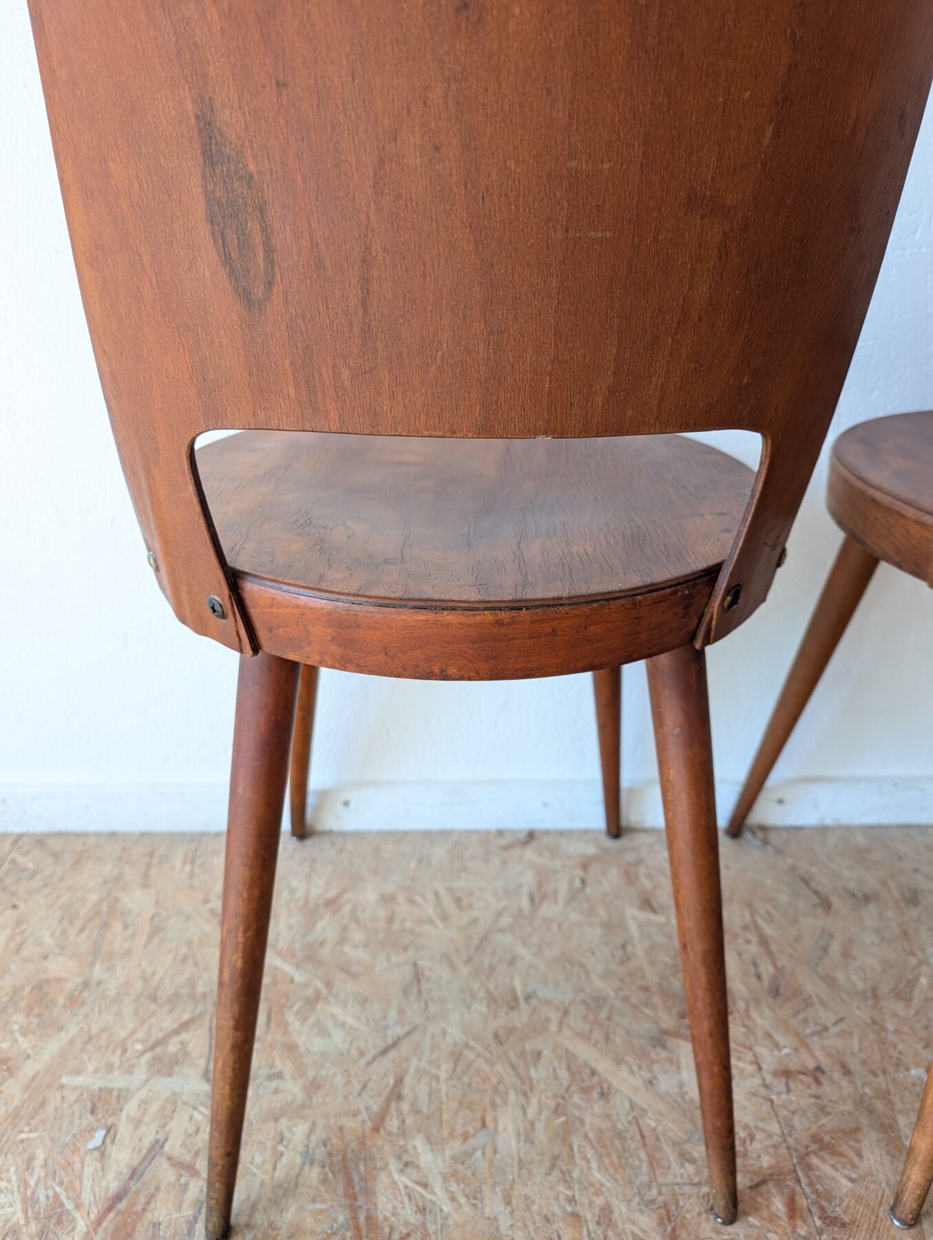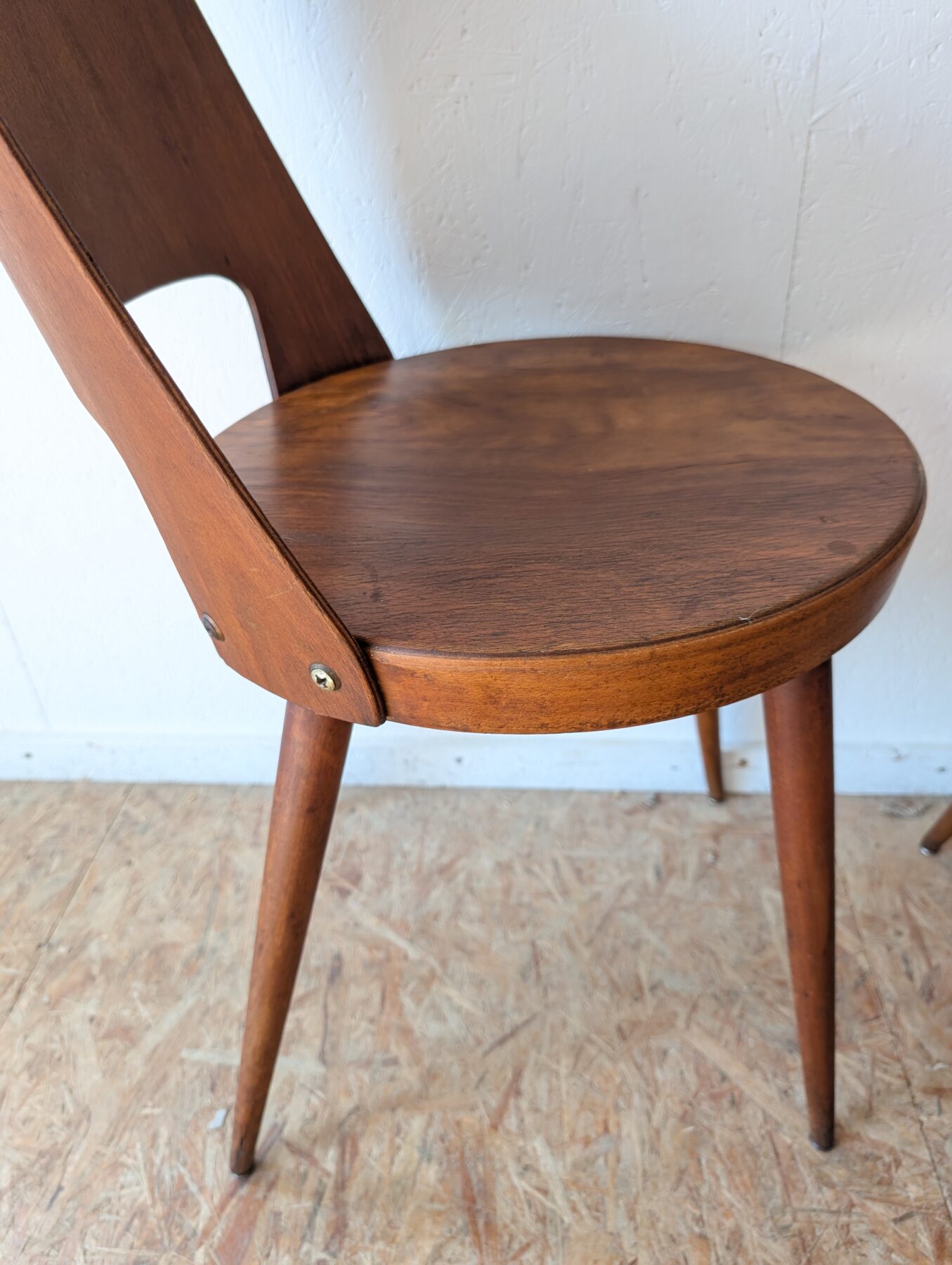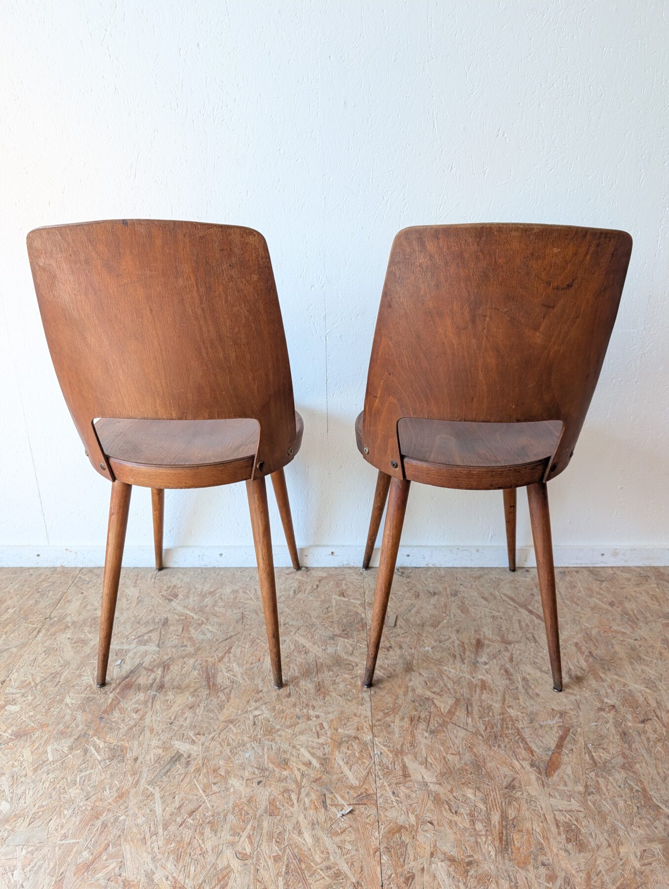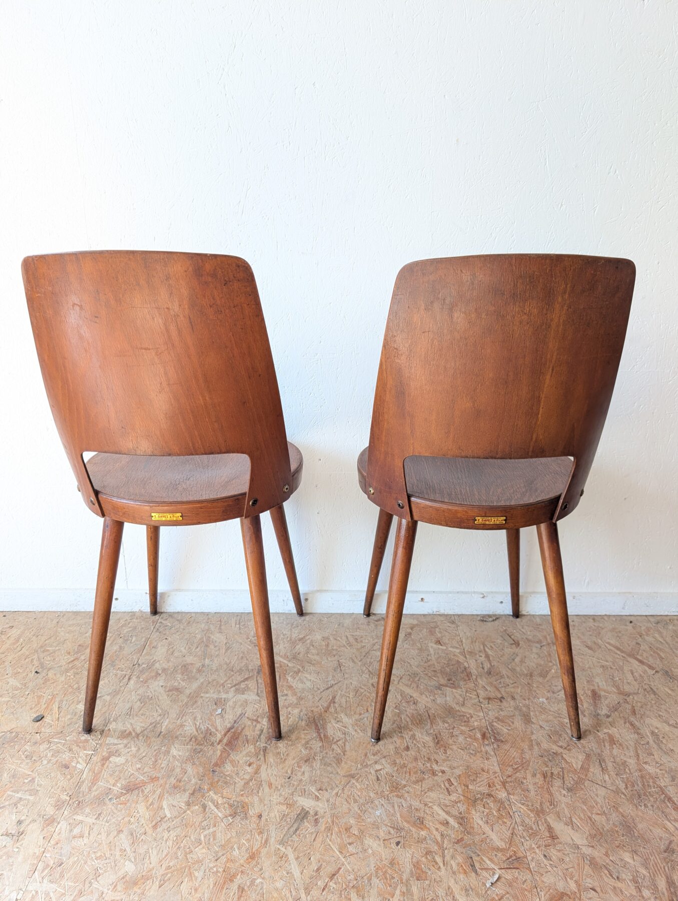 Suite de 6 chaises hêtre des années 60 proches du modèle Mondor de Baumann. Fabrication française Davez & Fils (Nièvre).