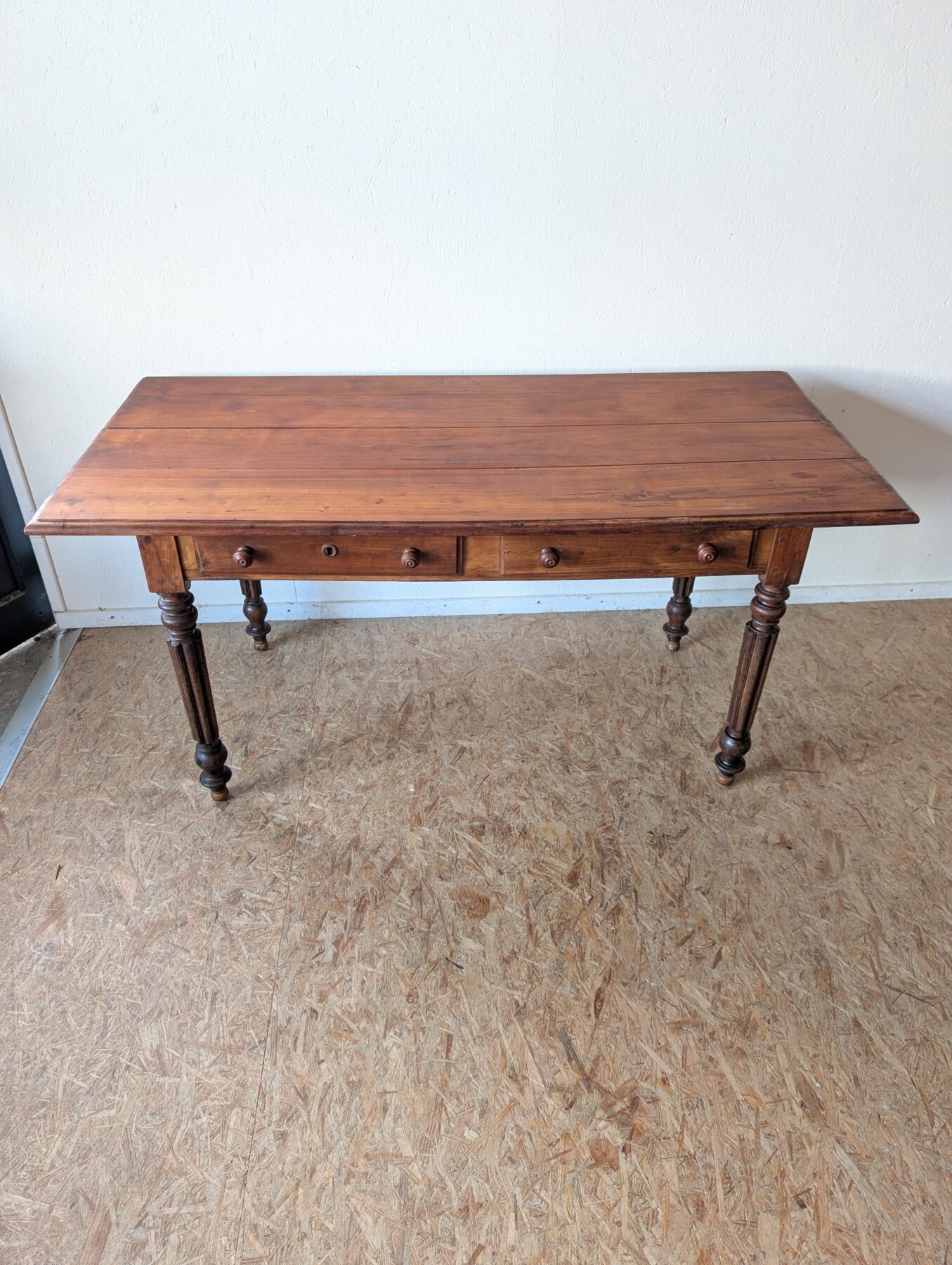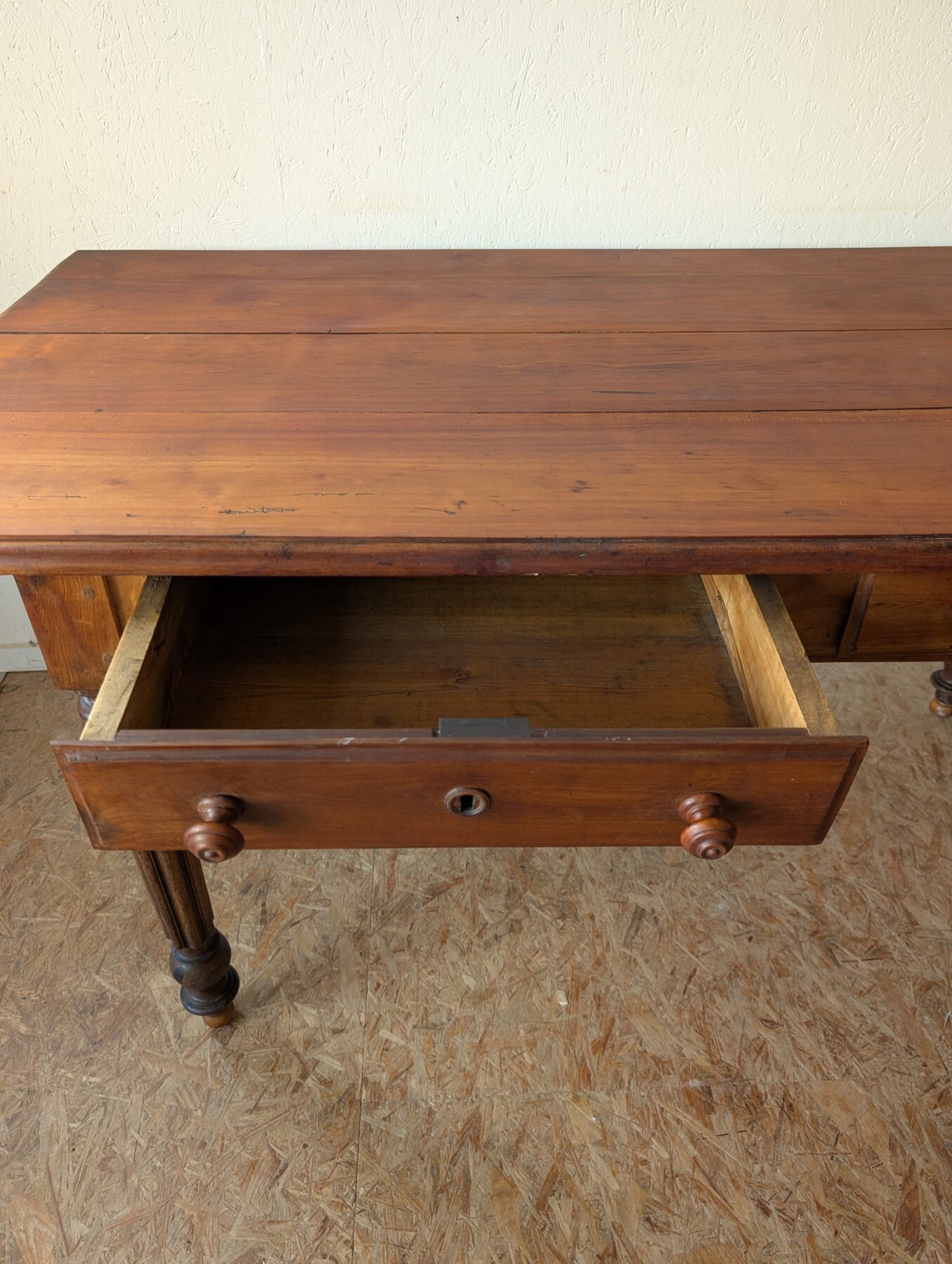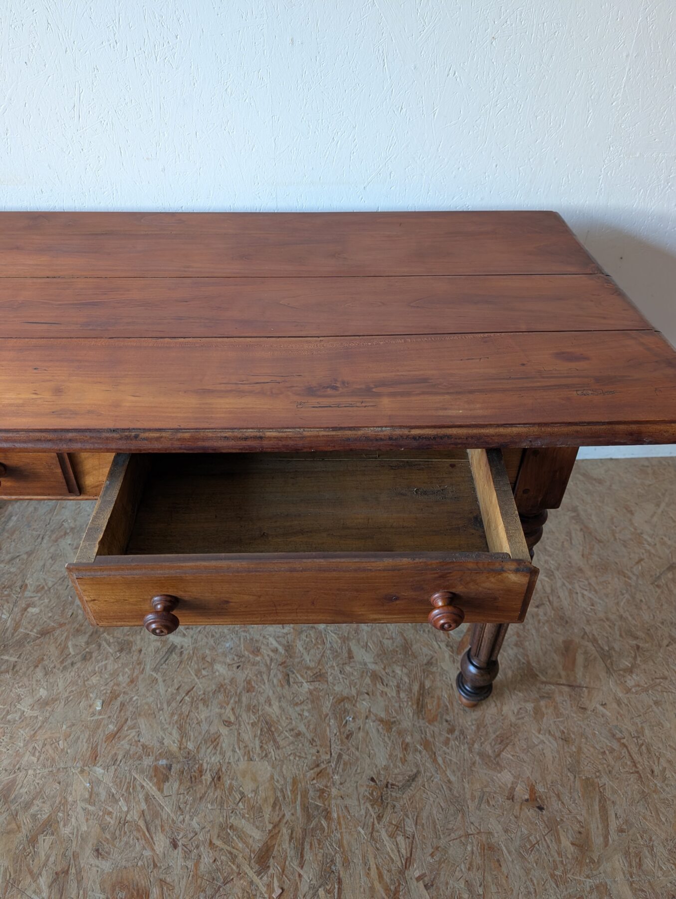 Table de ferme ancienne en cerisier massif avec 2 tiroirs pouvant servir aussi de bureau.