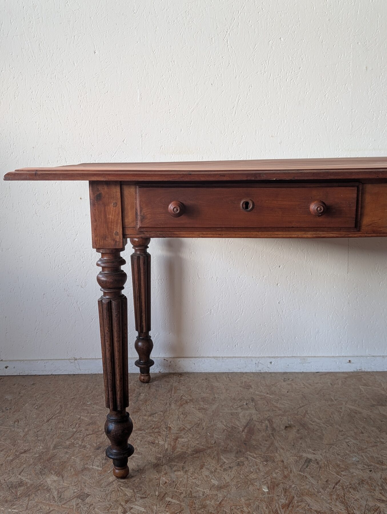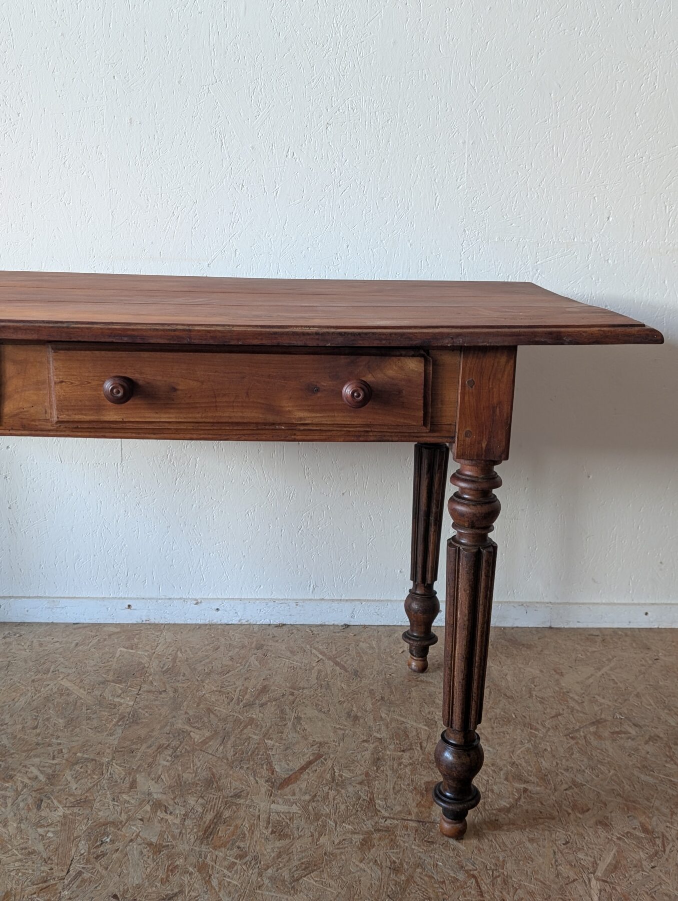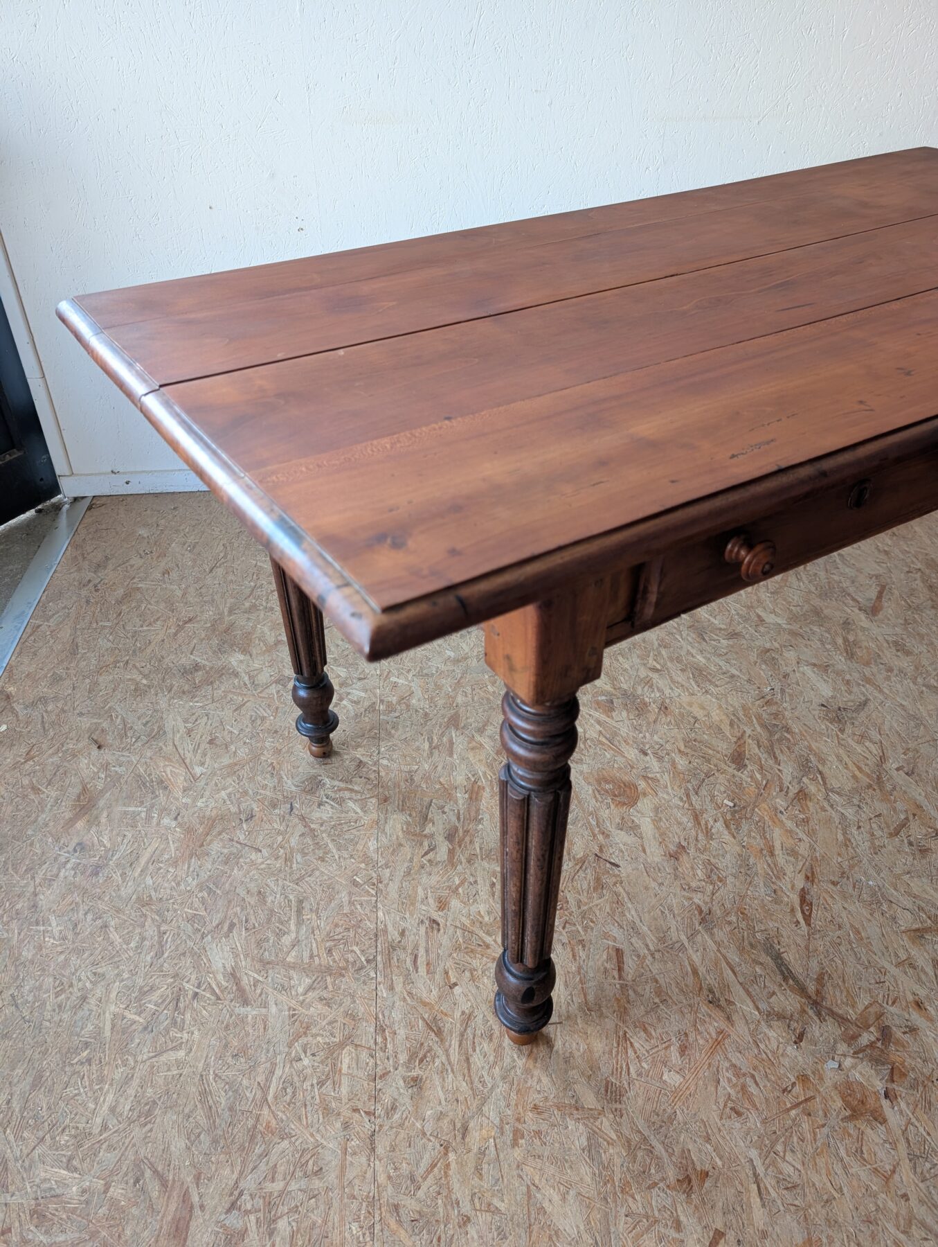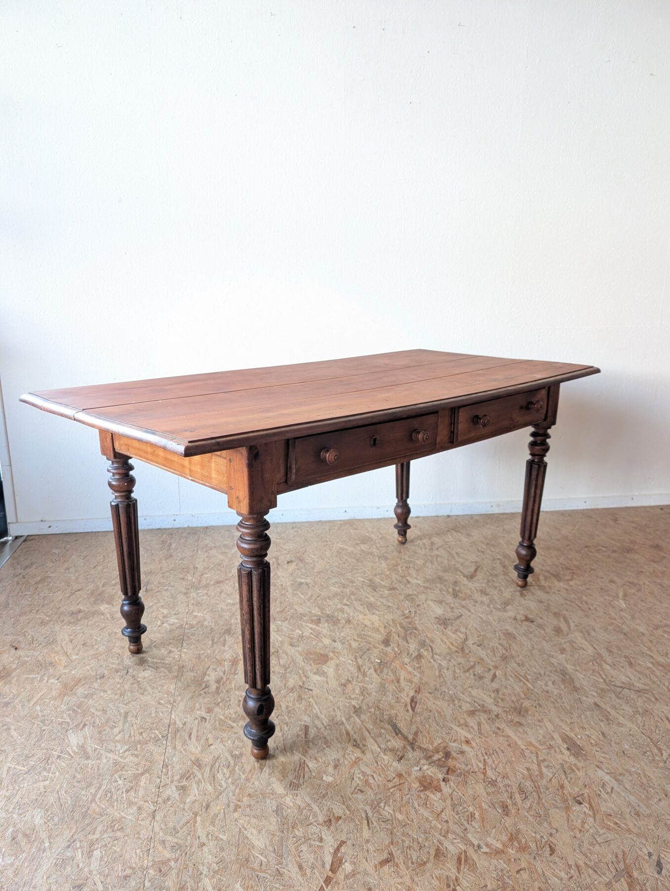 Table de ferme ancienne en cerisier massif avec 2 tiroirs pouvant servir aussi de bureau.