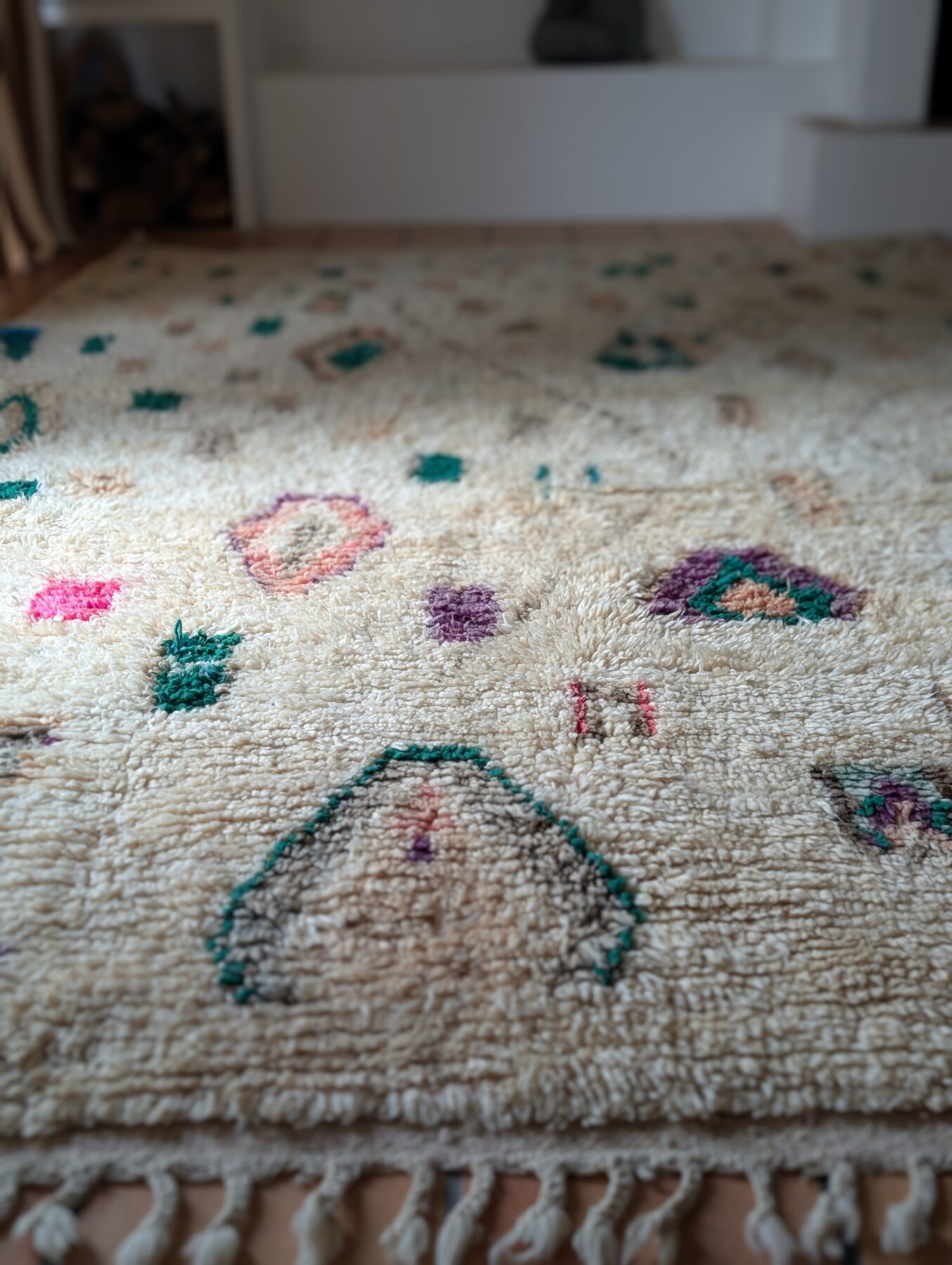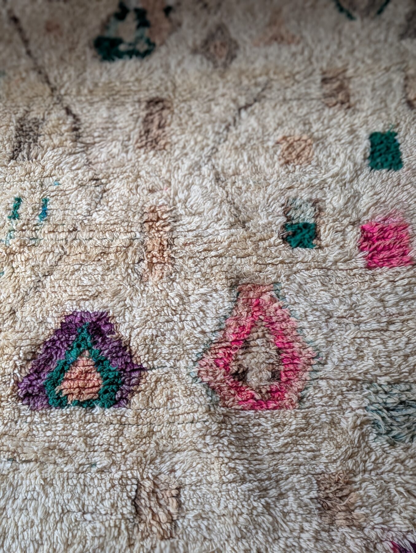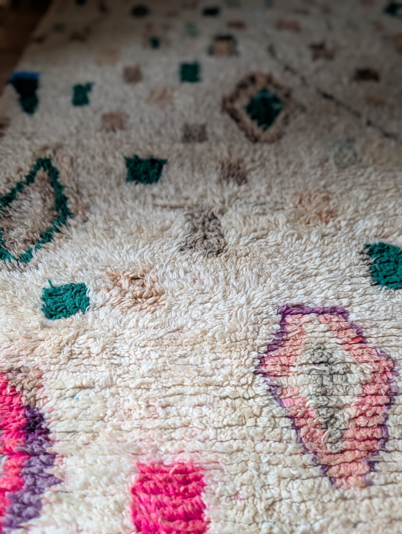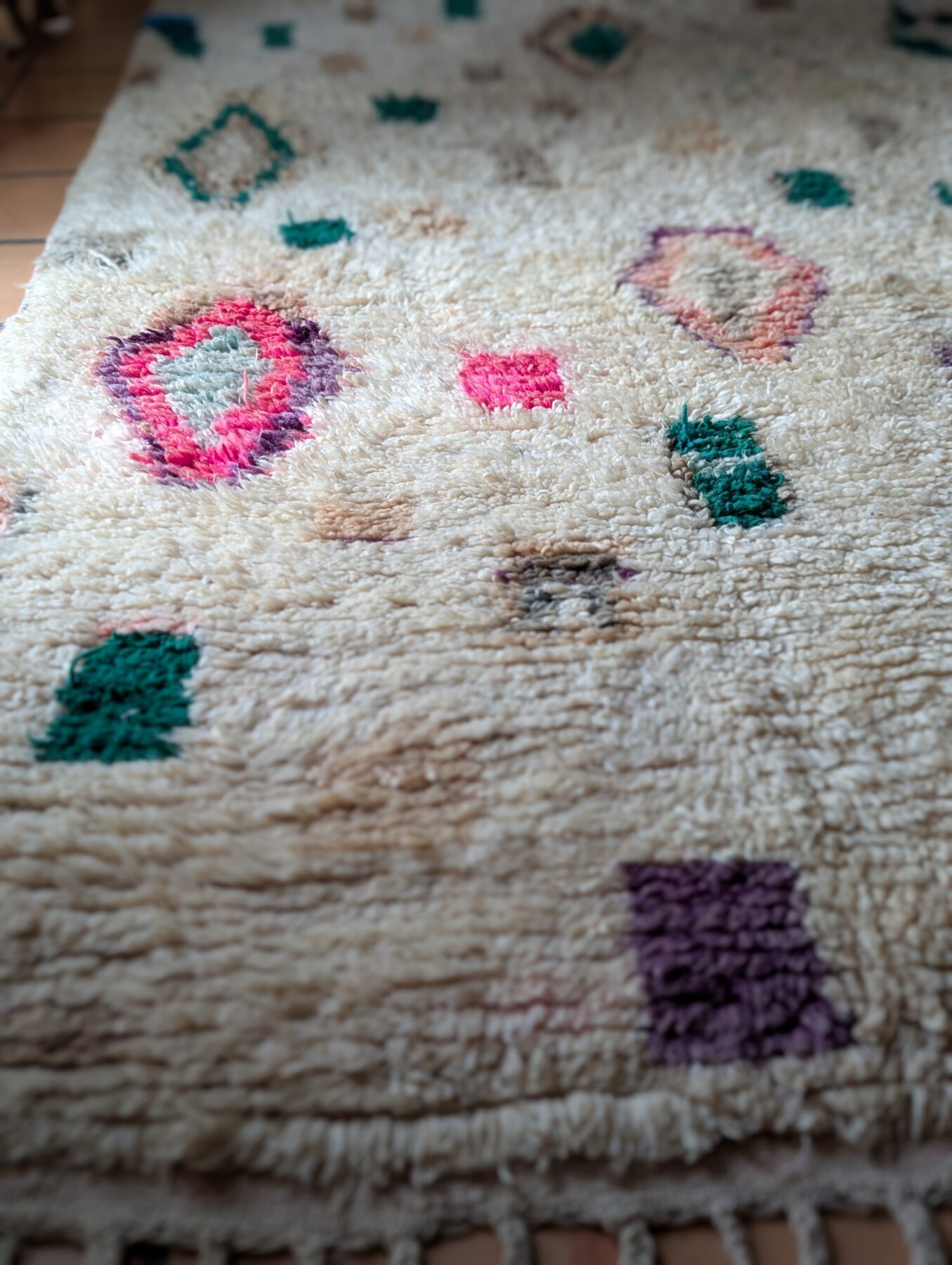 Tapis berbère Azilal, laine de mouton. Fabriqué à la main , fil à fil, sur des métiers à tisser dans le moyen Atlas.
