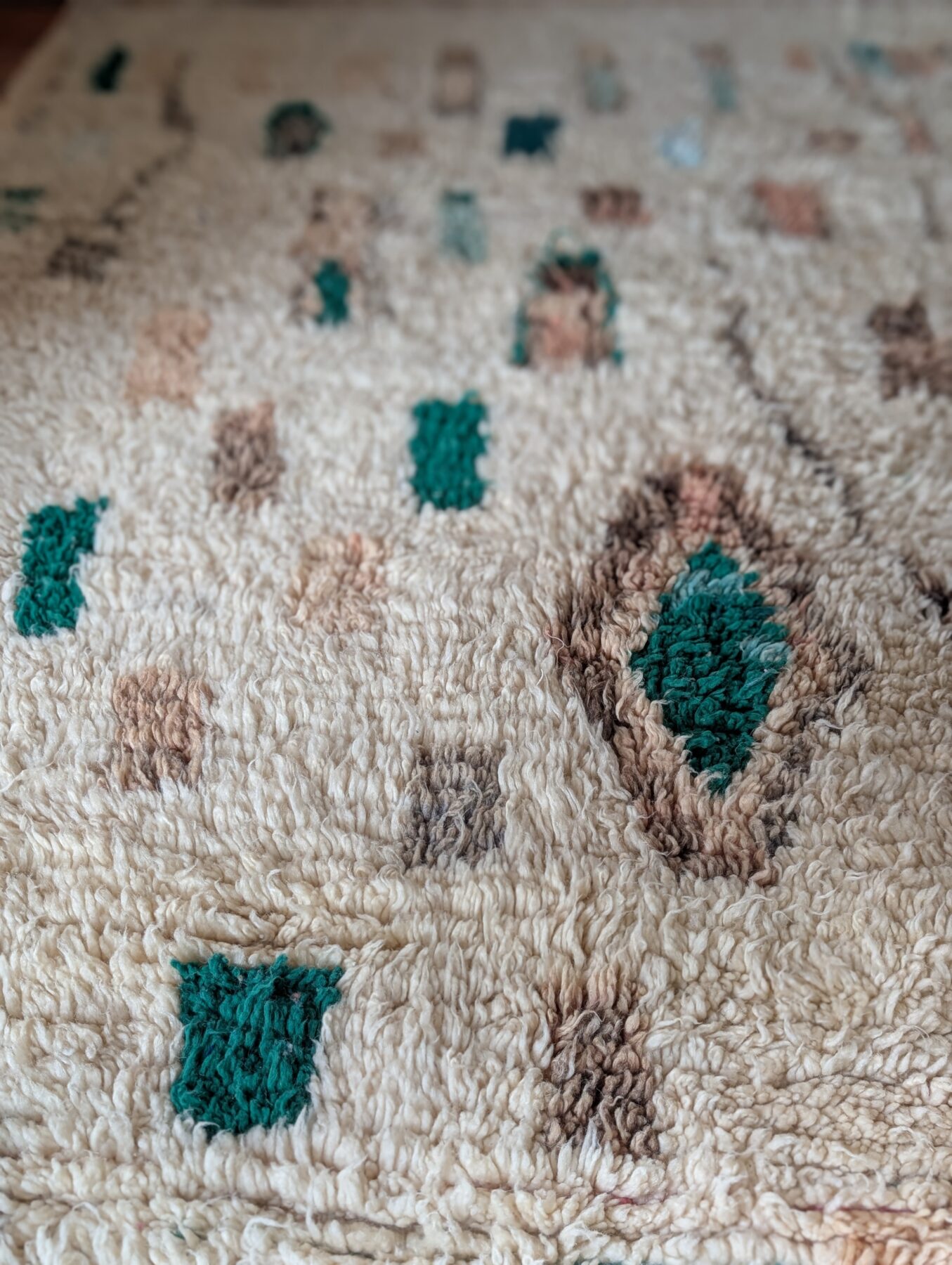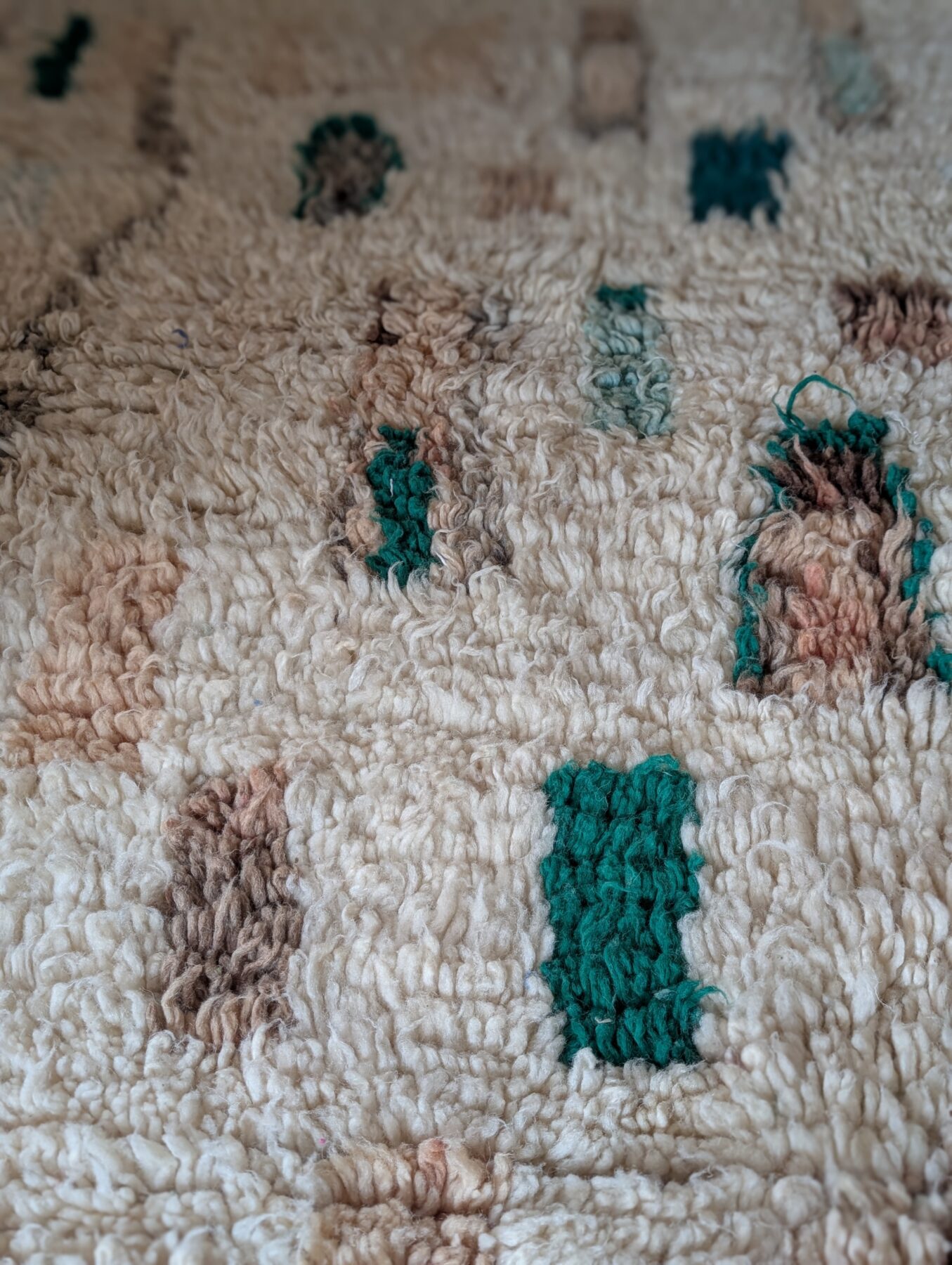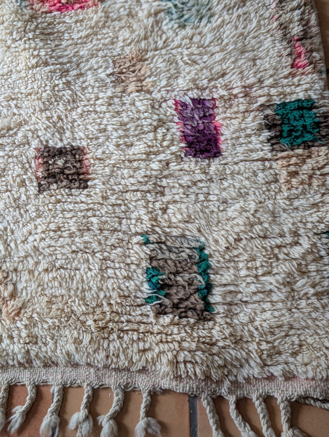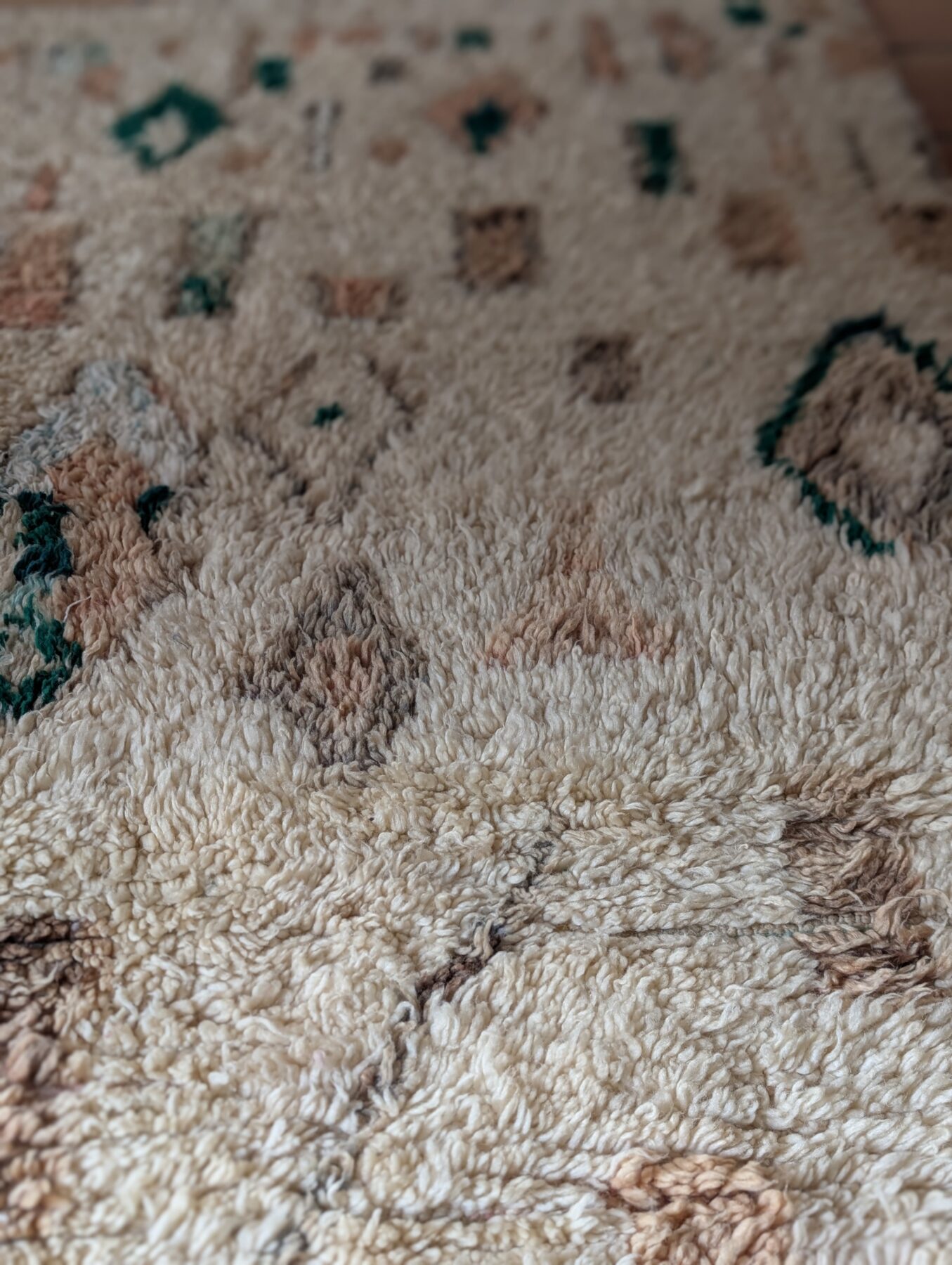 Tapis berbère Azilal, laine de mouton. Fabriqué à la main , fil à fil, sur des métiers à tisser dans le moyen Atlas.