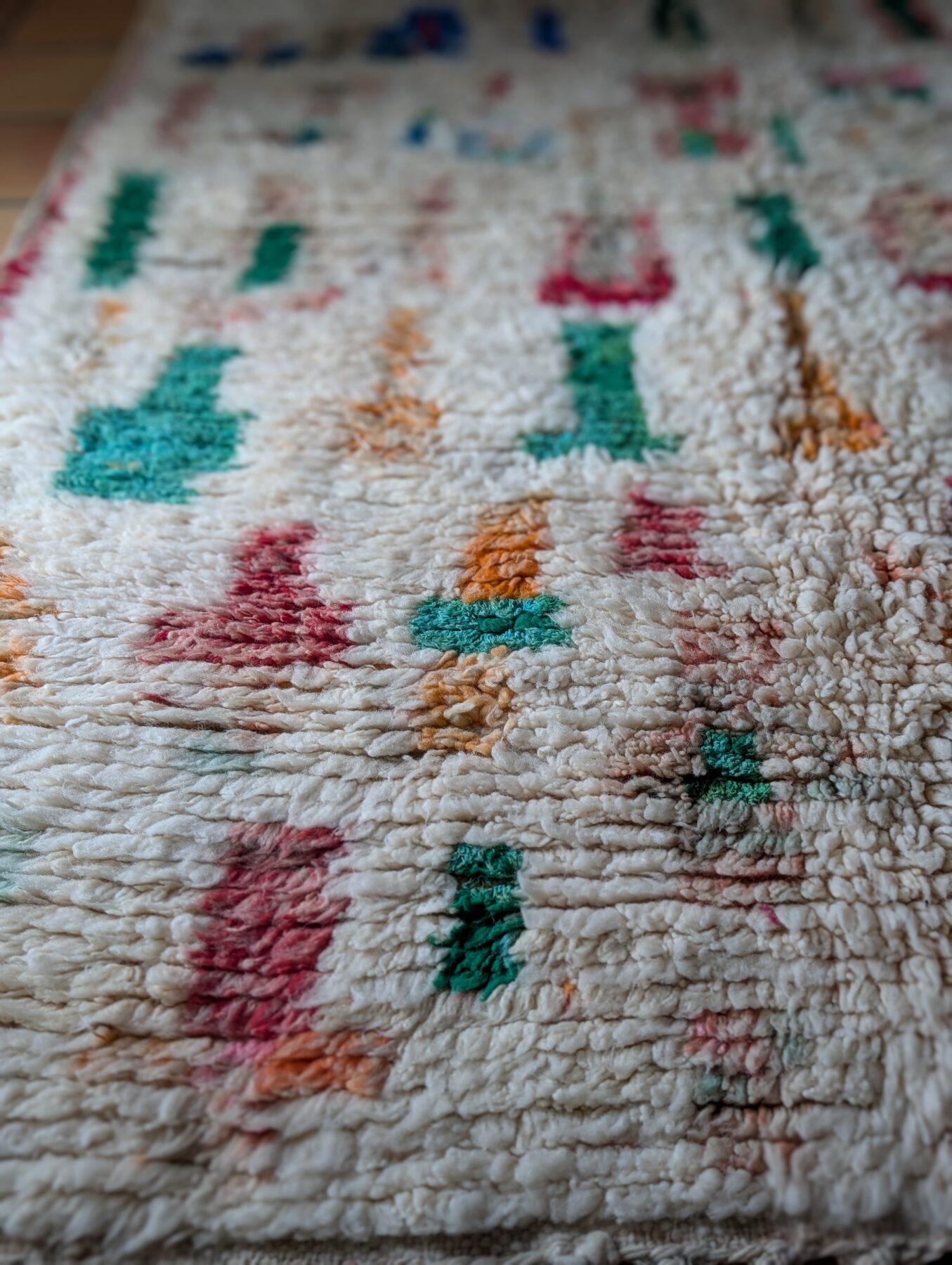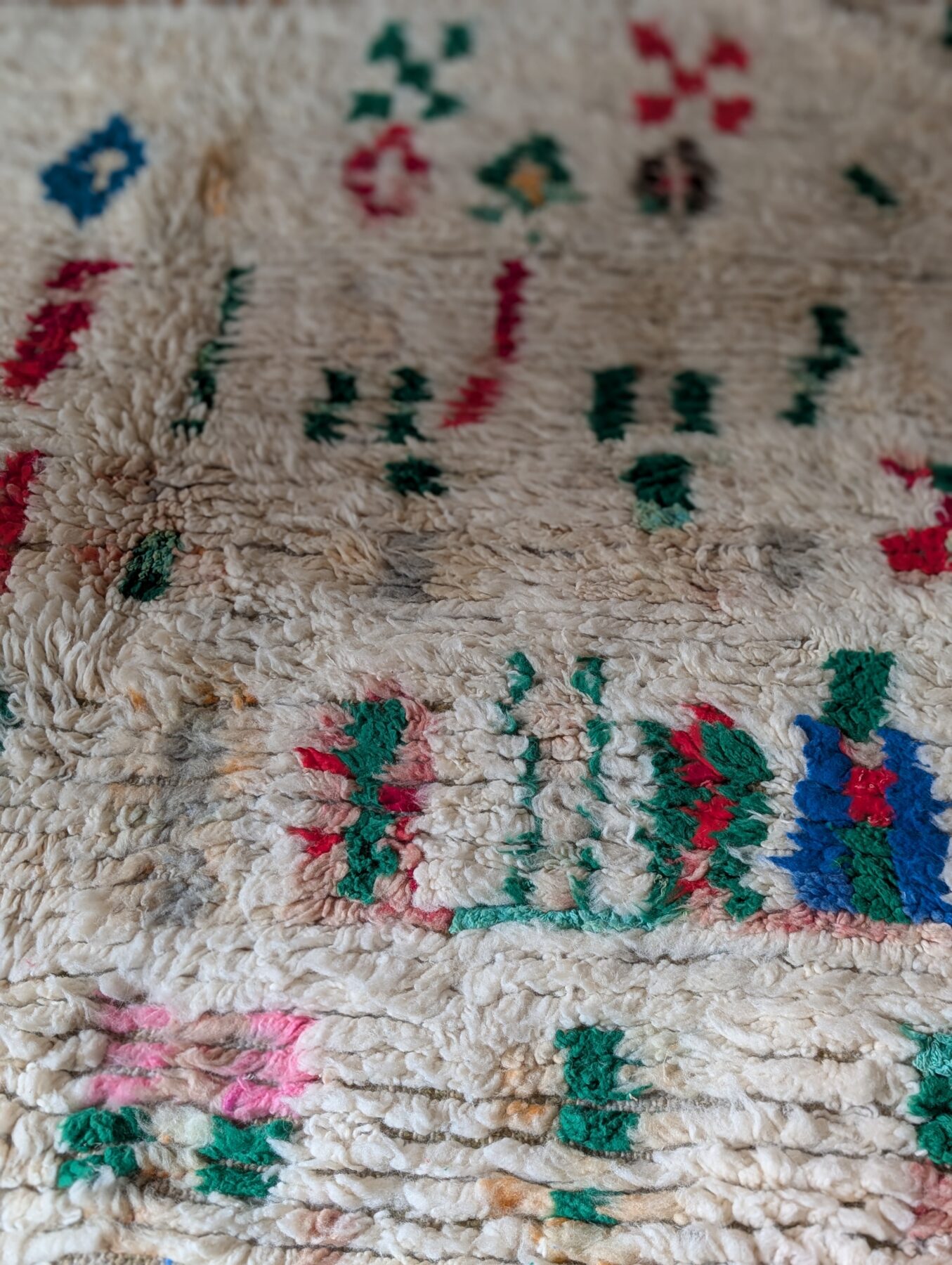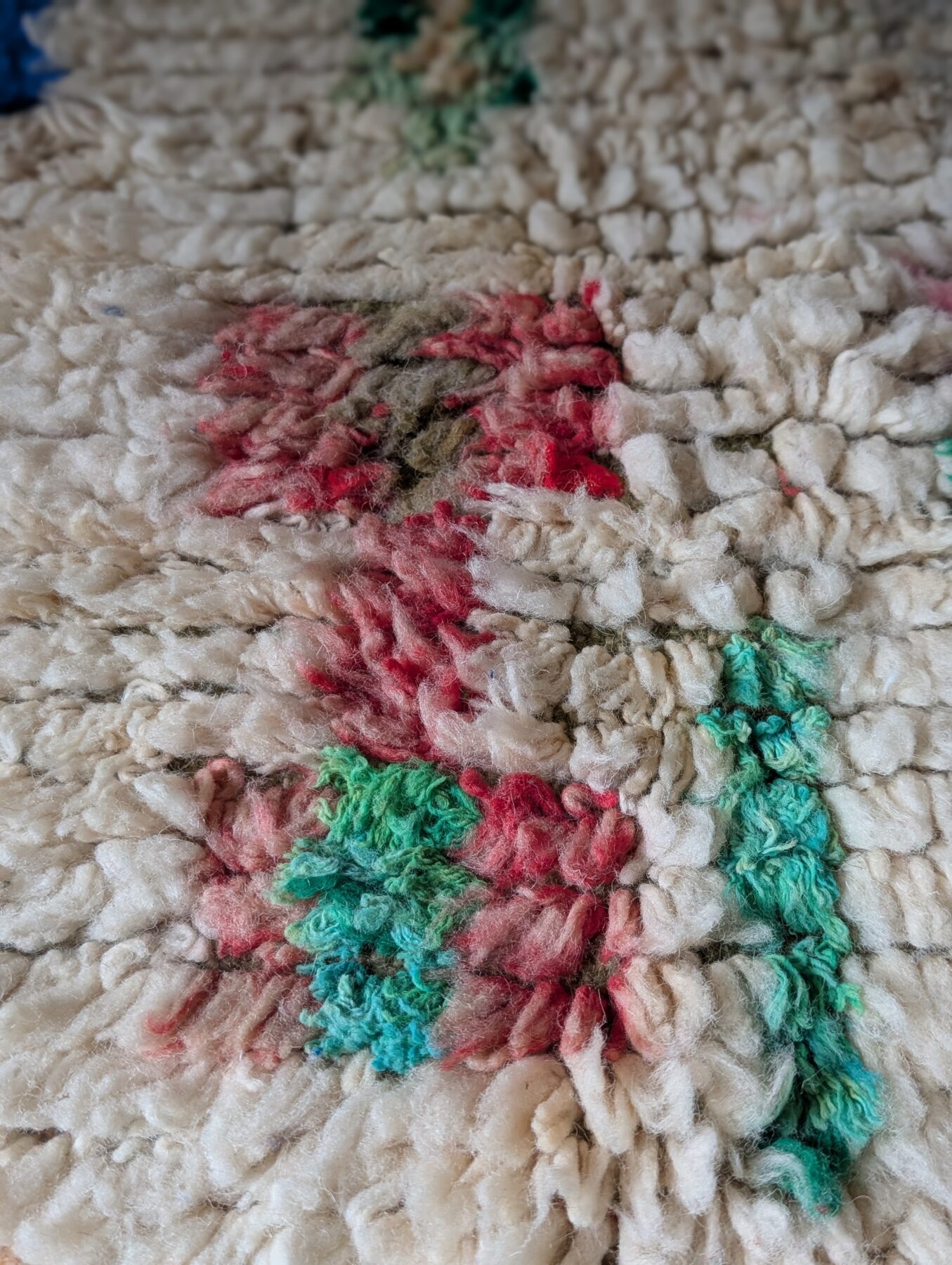 Tapis berbère Boujad, laine de mouton. Fabriqué à la main , fil à fil, sur des métiers à tisser dans le moyen Atlas.