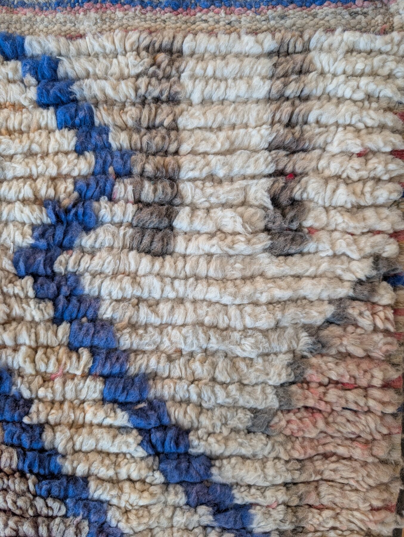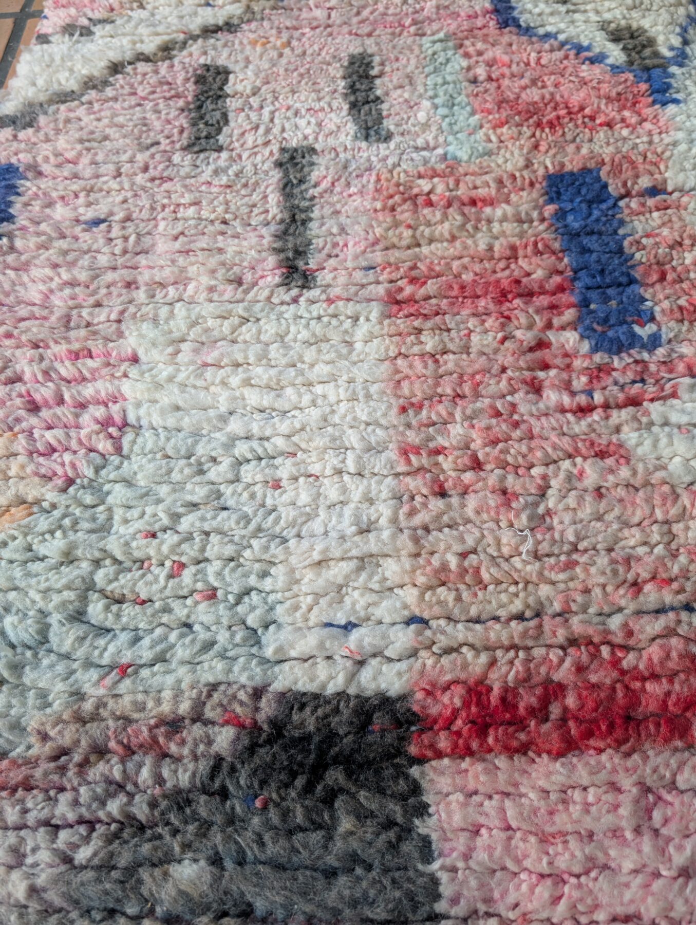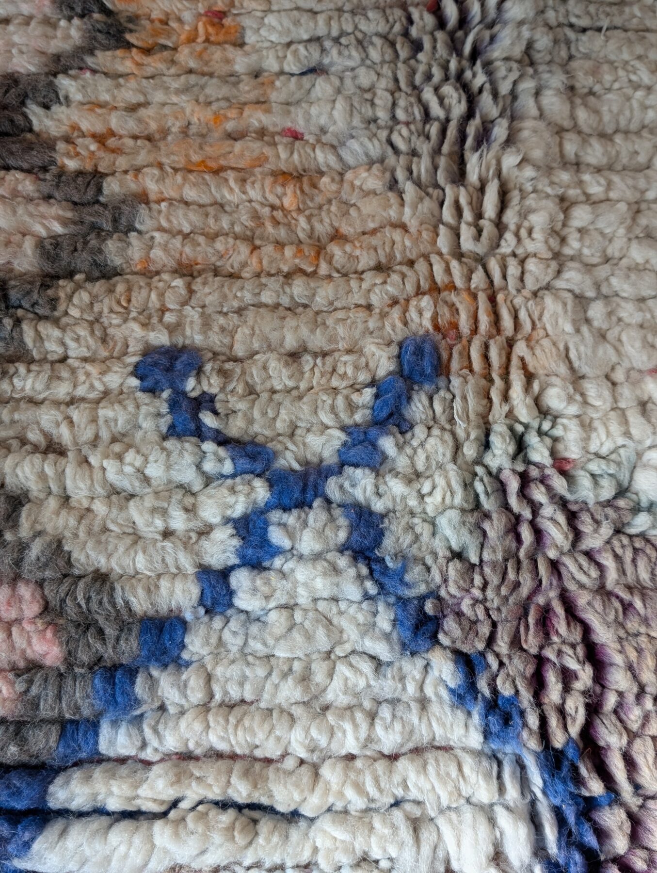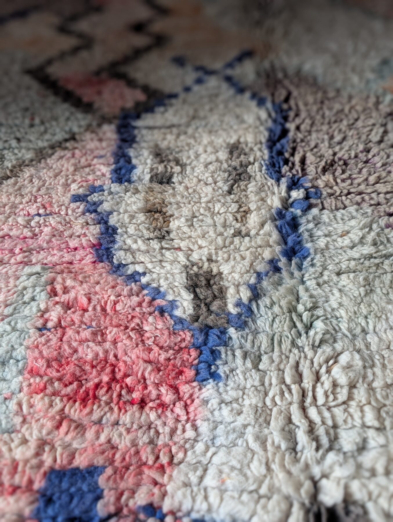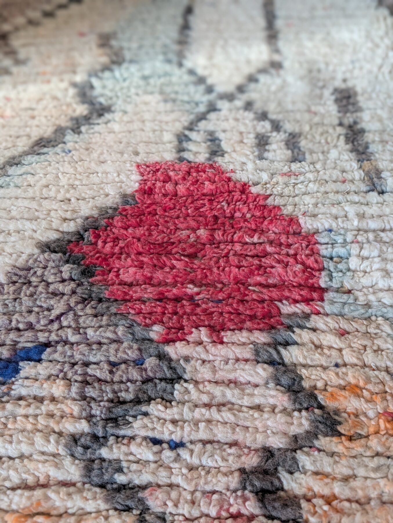 Tapis berbère Boujad à motifs colorés, laine de mouton. Fabriqué à la main , fil à fil, sur des métiers à tisser dans le moyen Atlas.